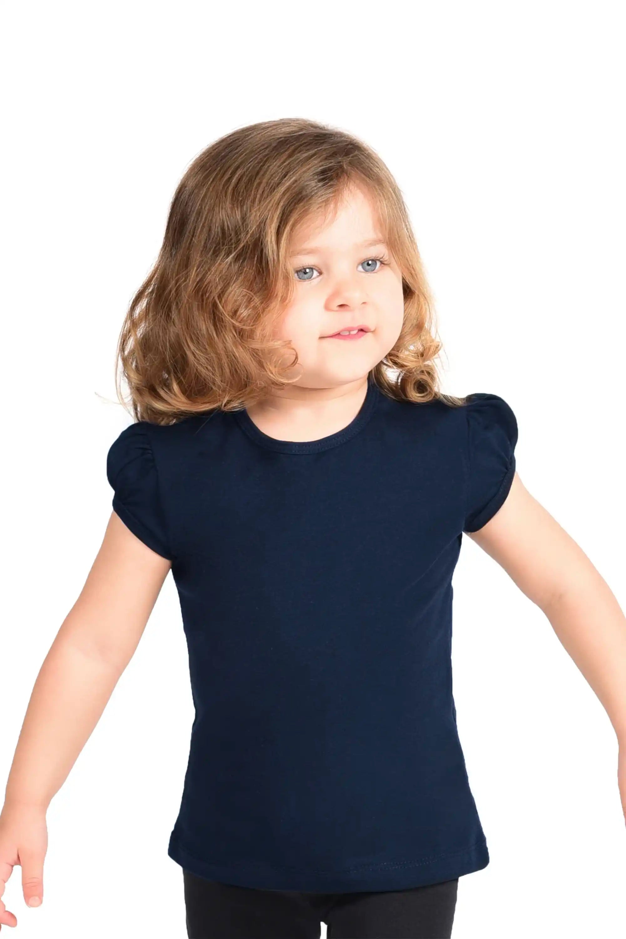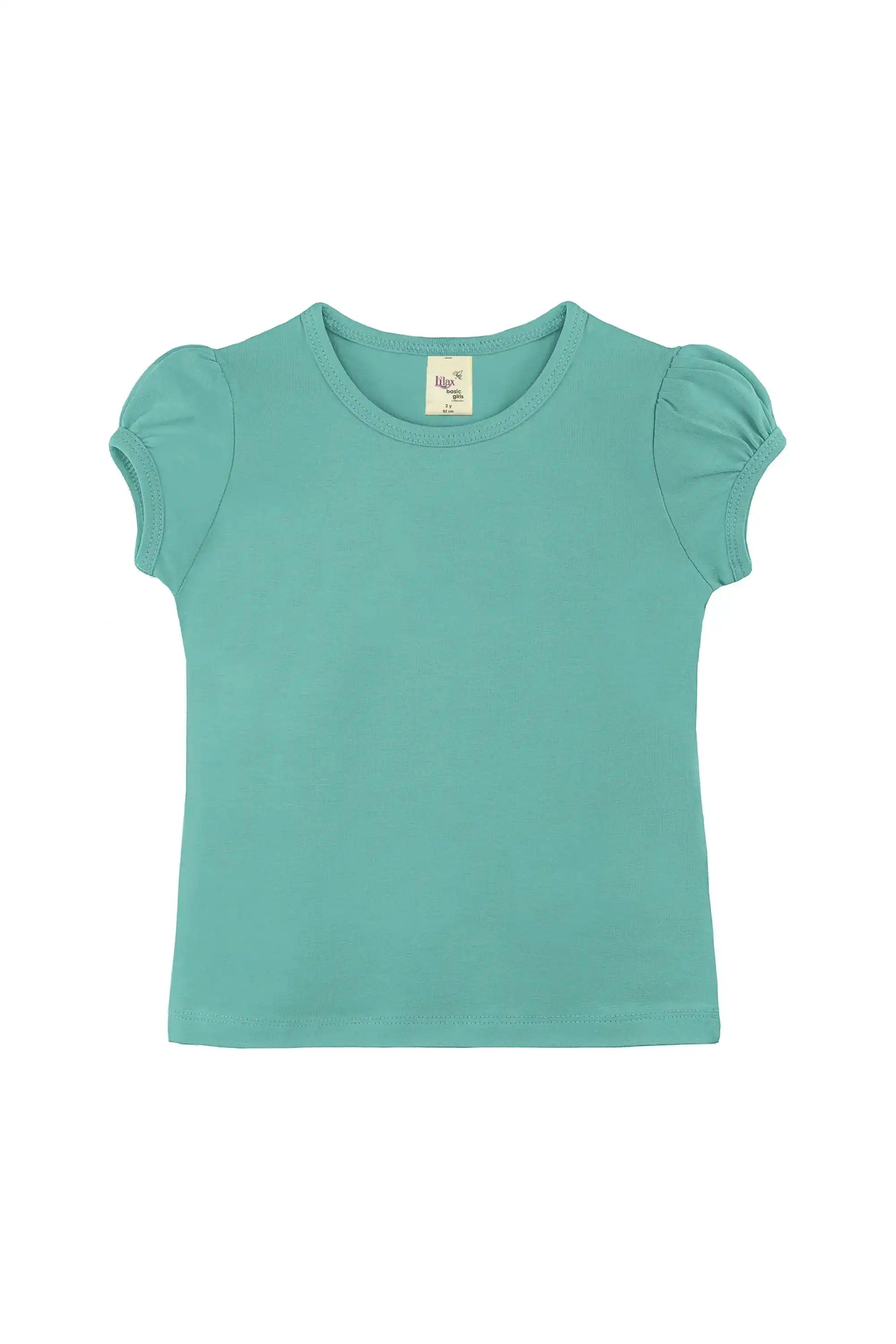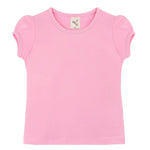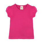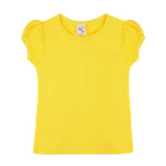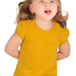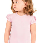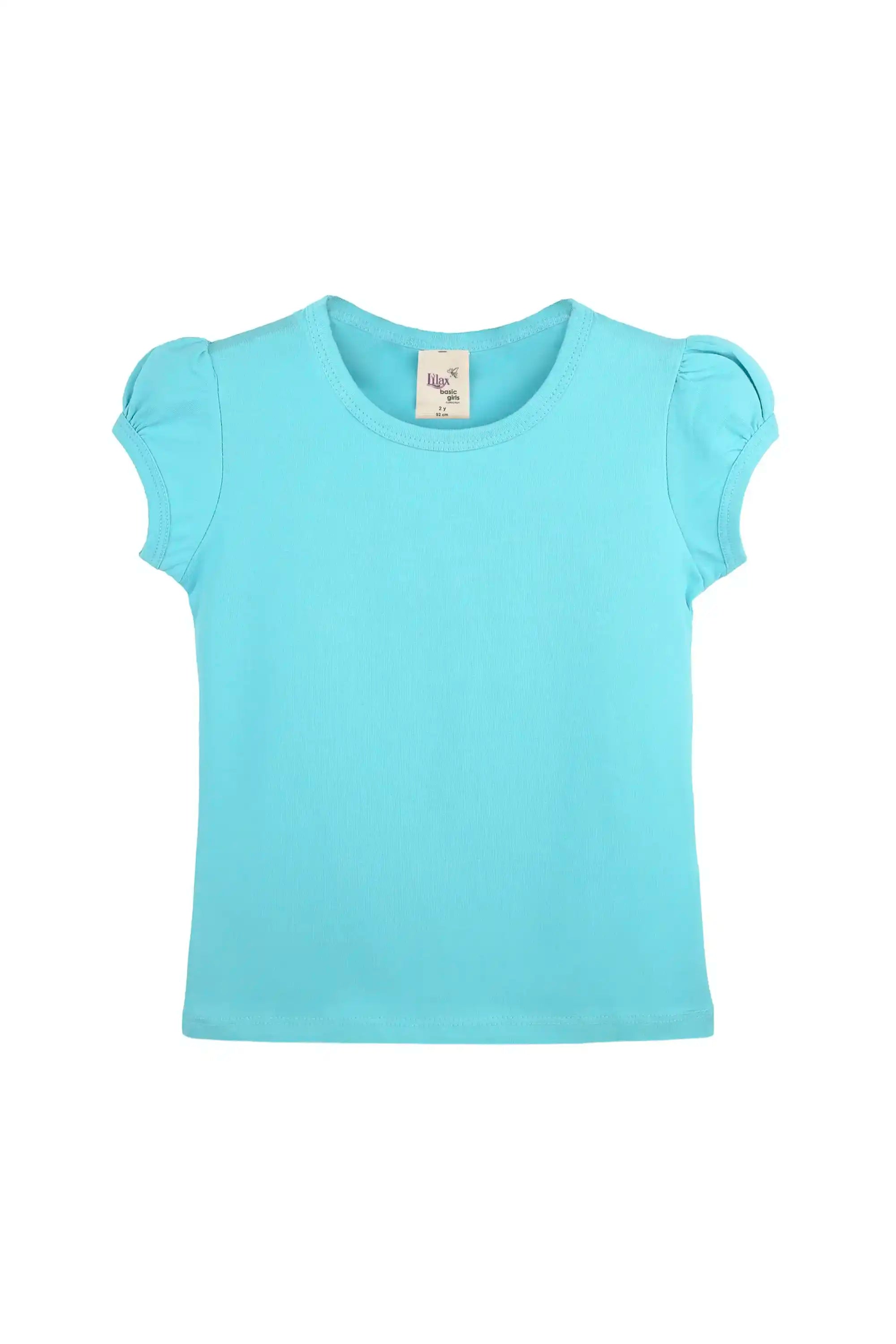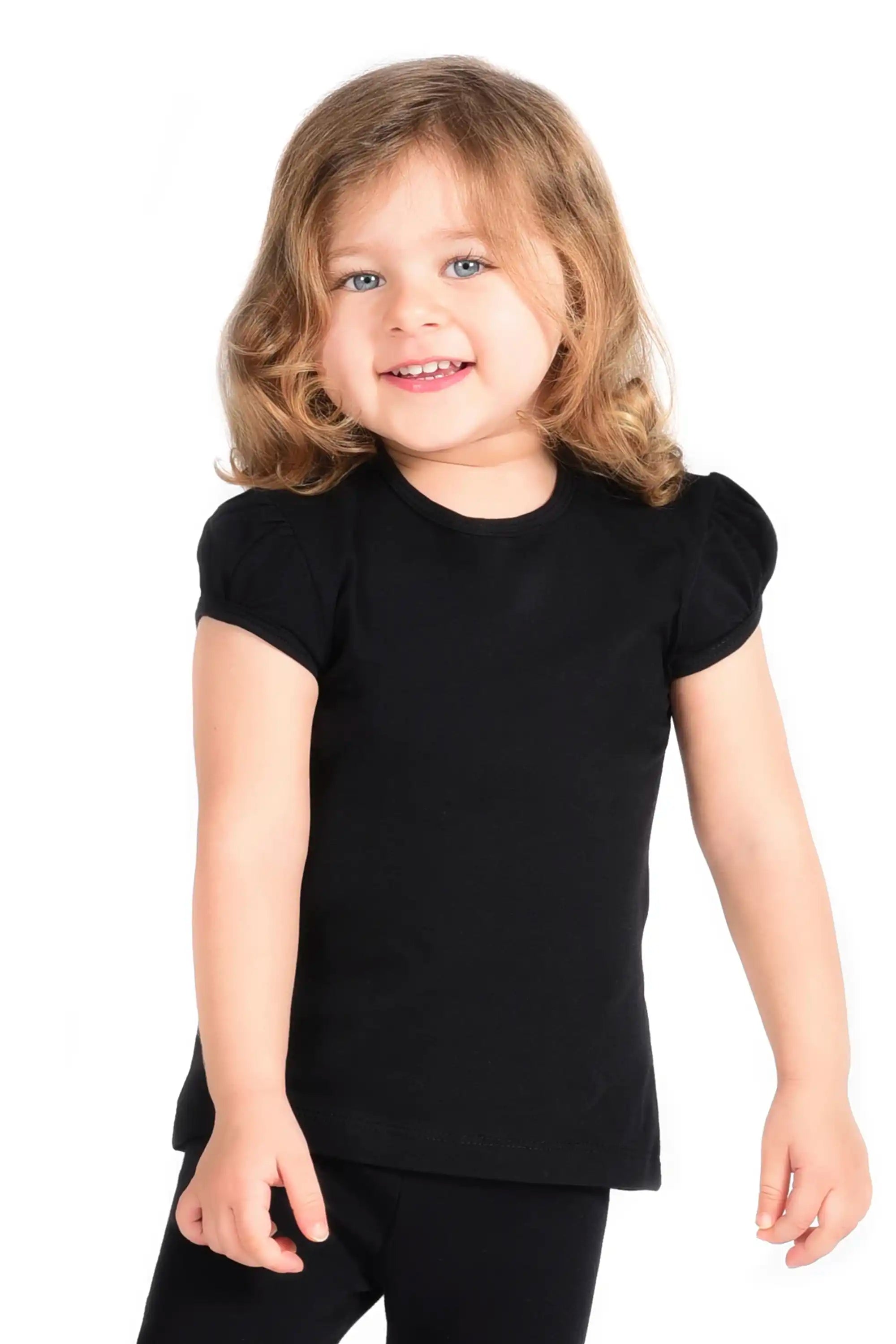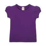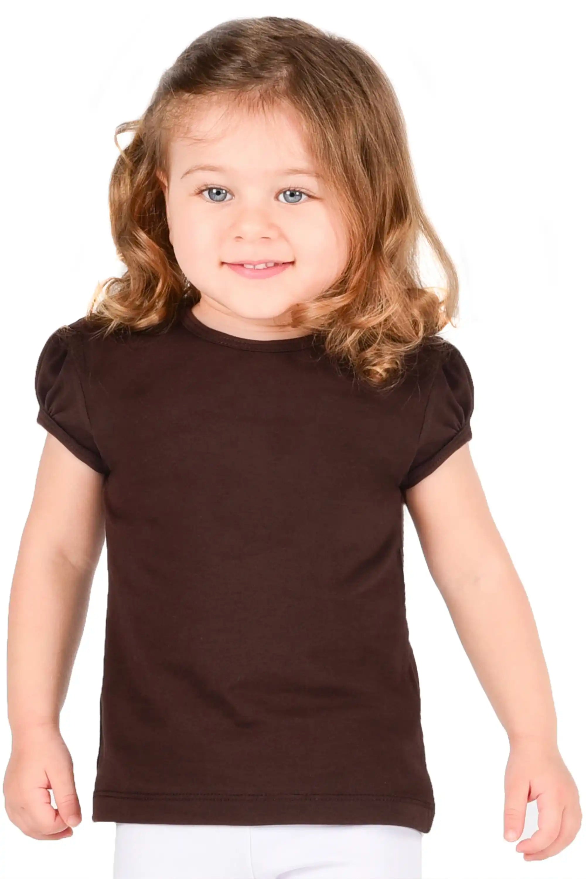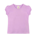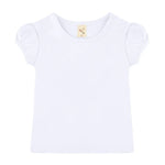 Girls' Basic Short Puff Sleeve Round Neck Cotton T-Shirt