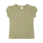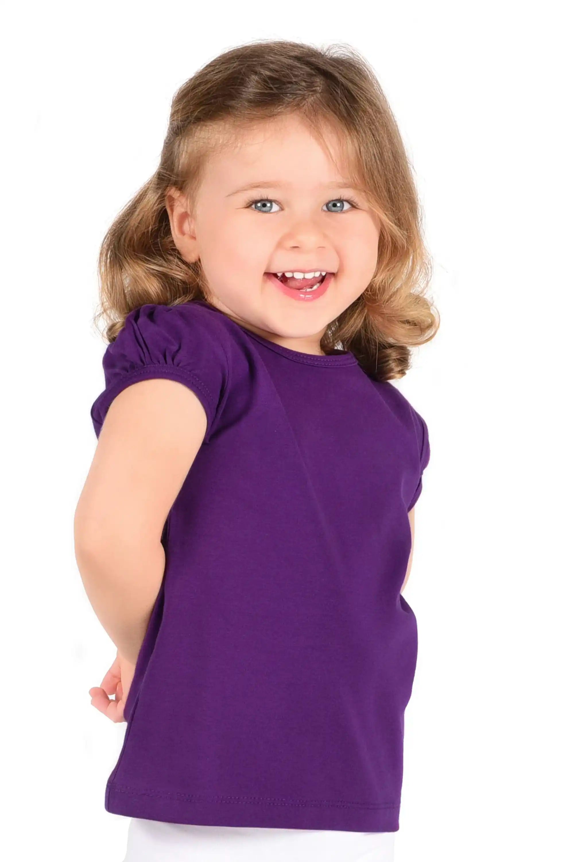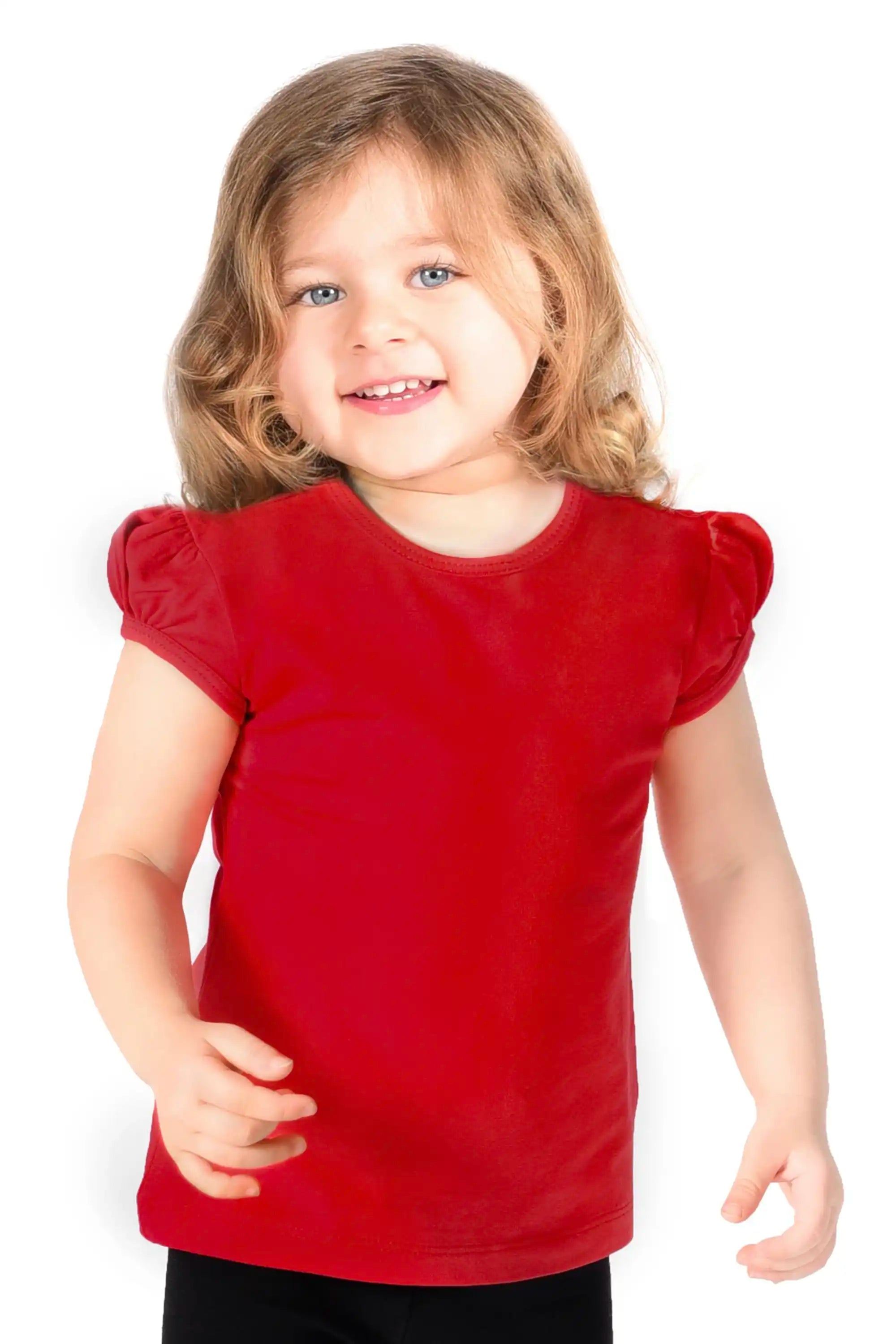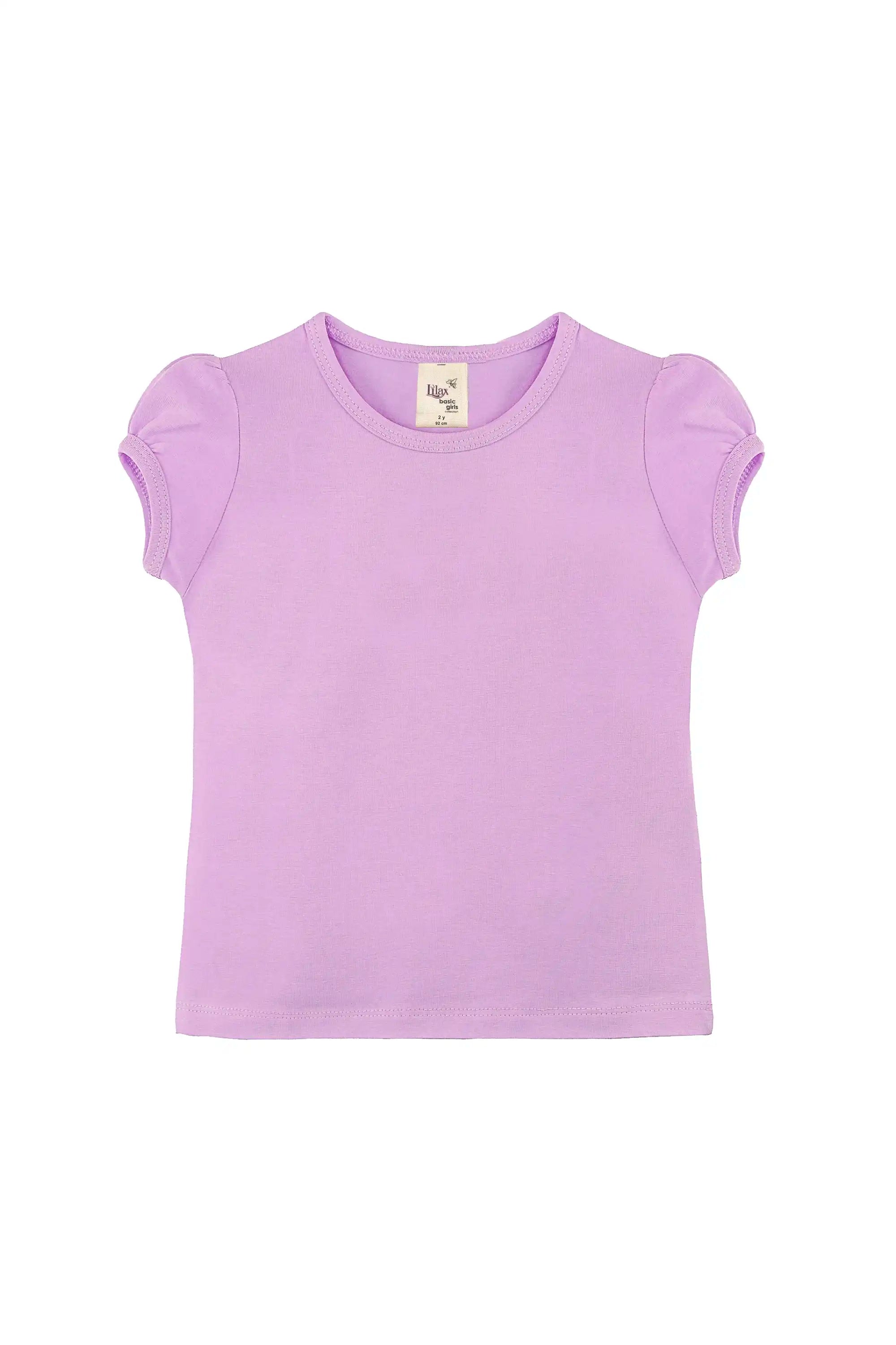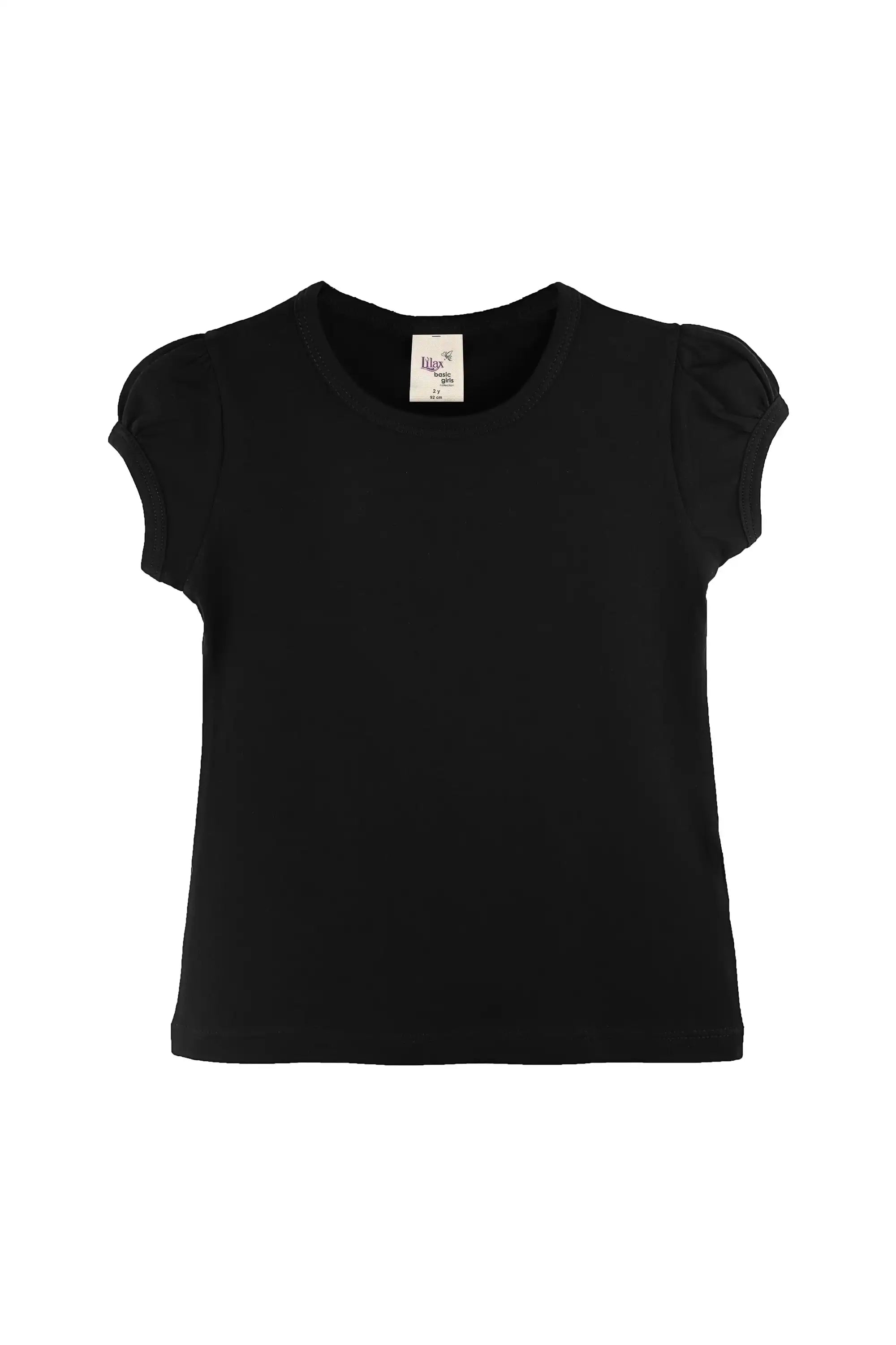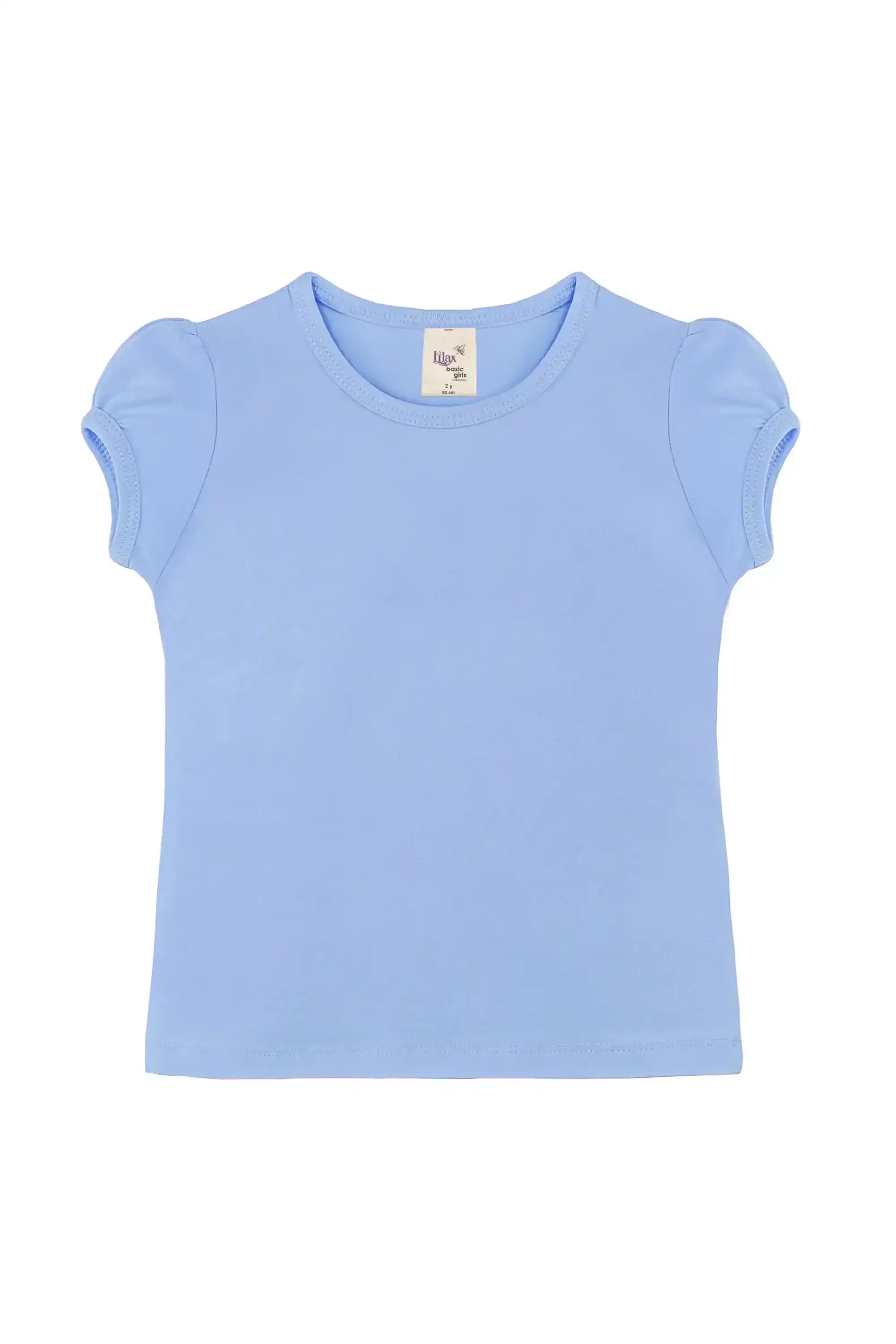 Girls' Basic Short Puff Sleeve Round Neck Cotton T-Shirt