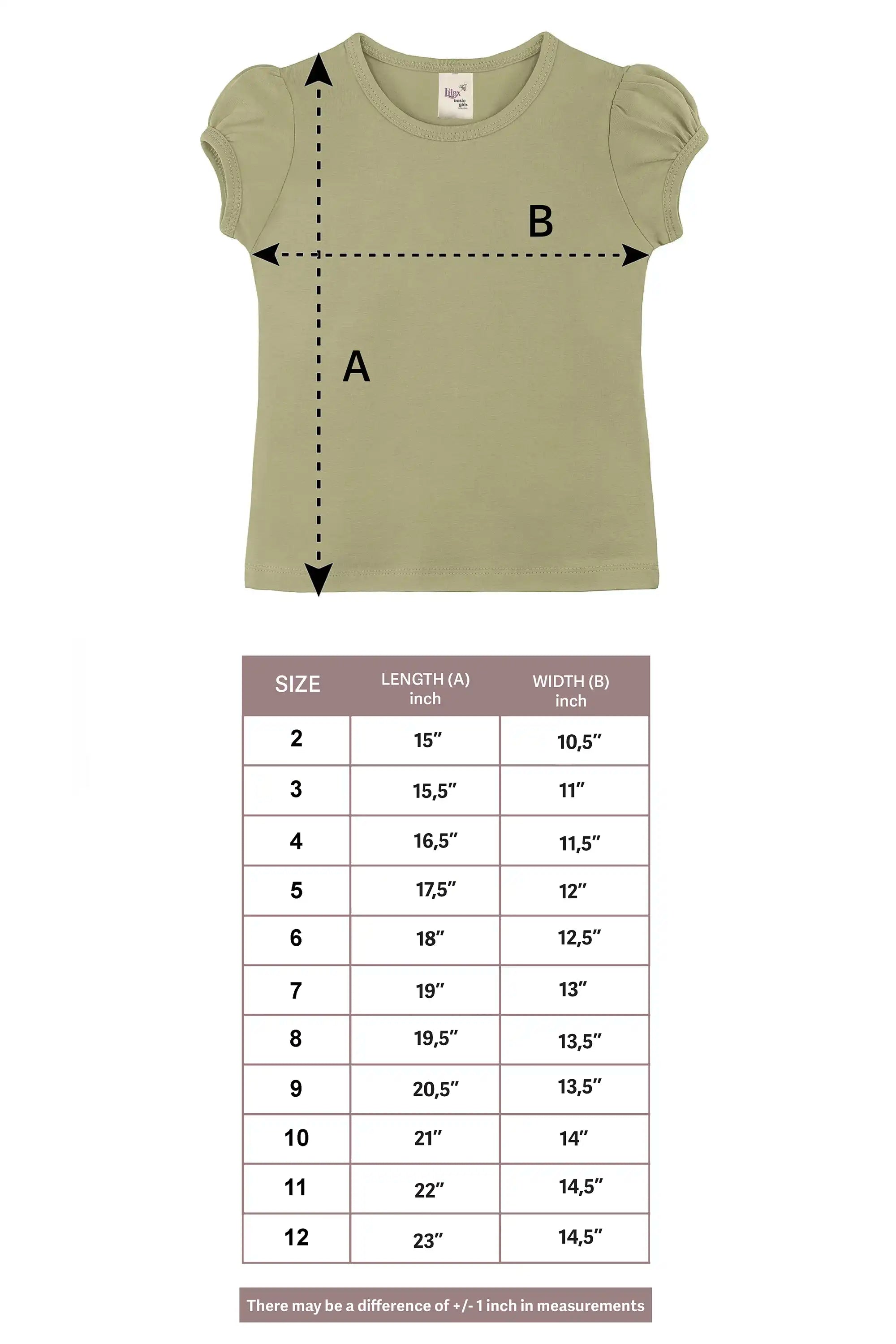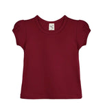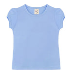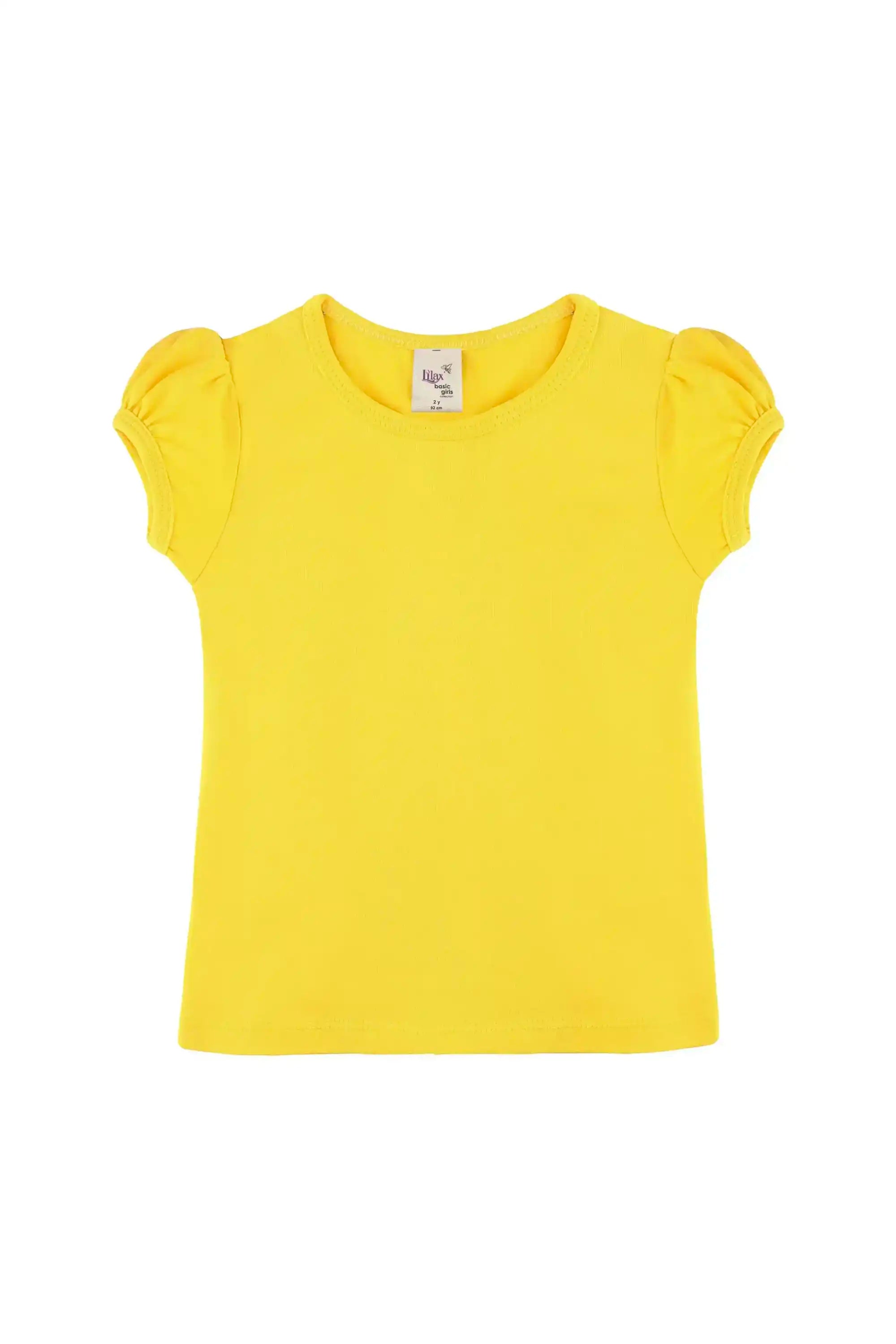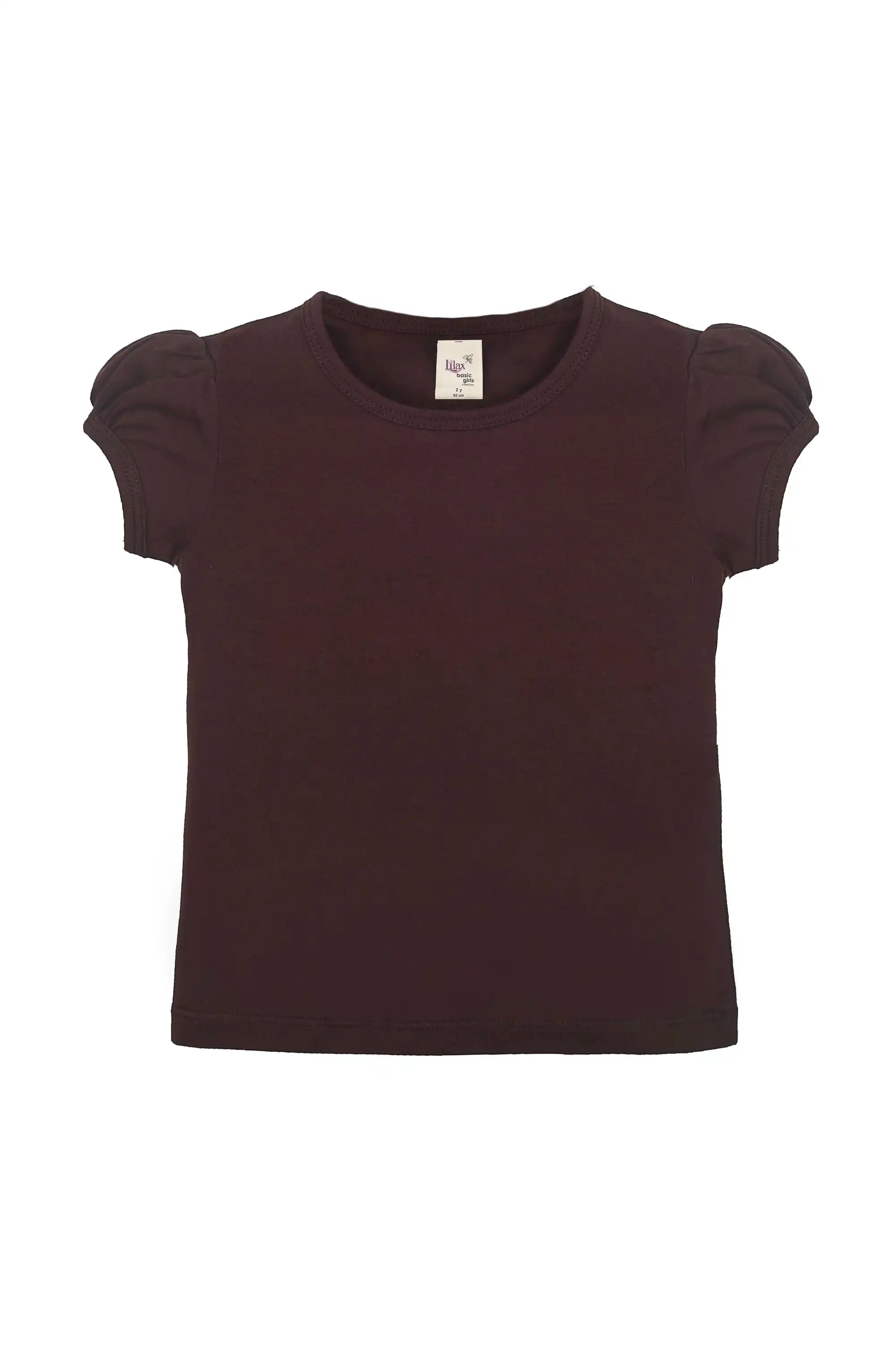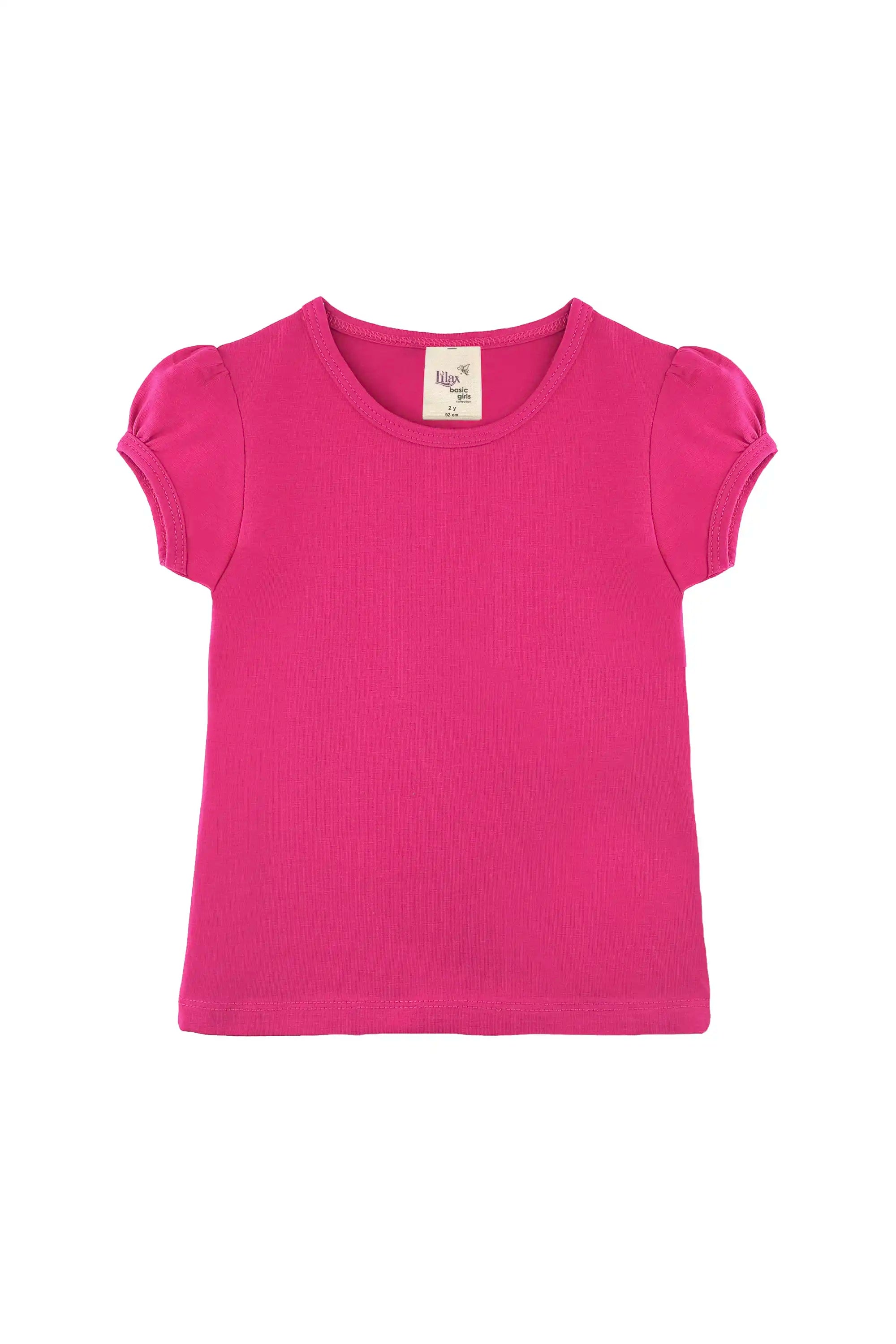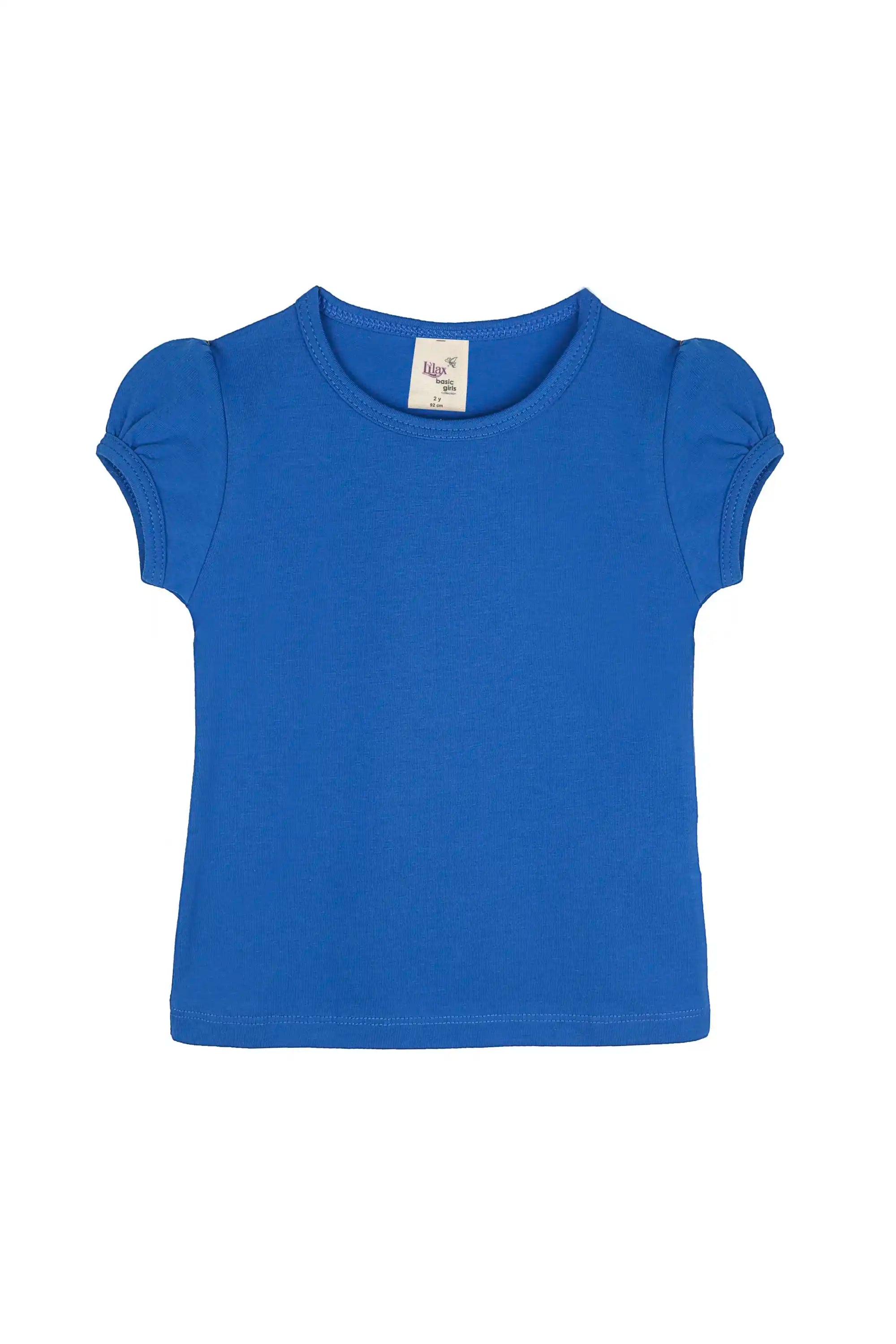 Girls' Basic Short Puff Sleeve Round Neck Cotton T-Shirt