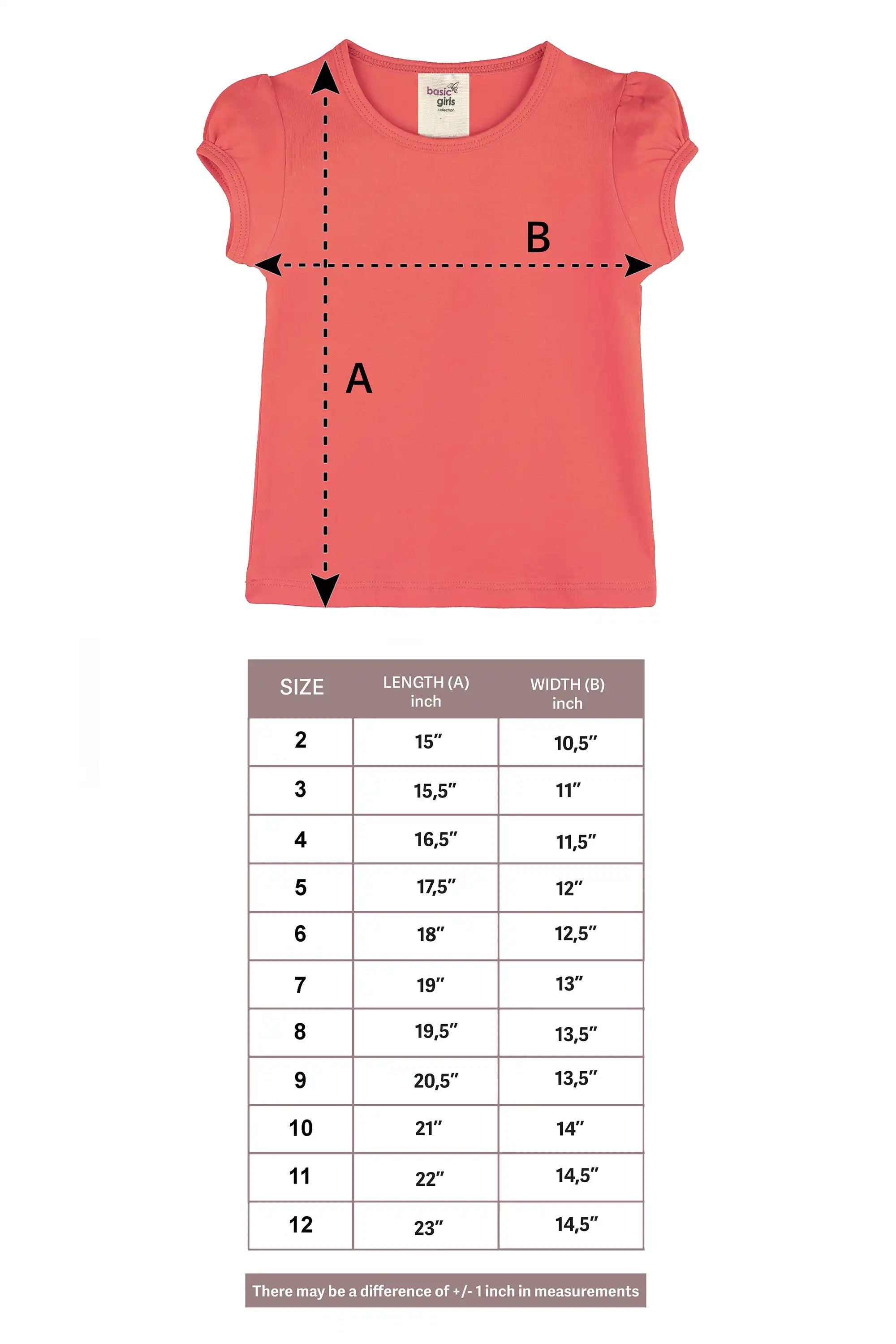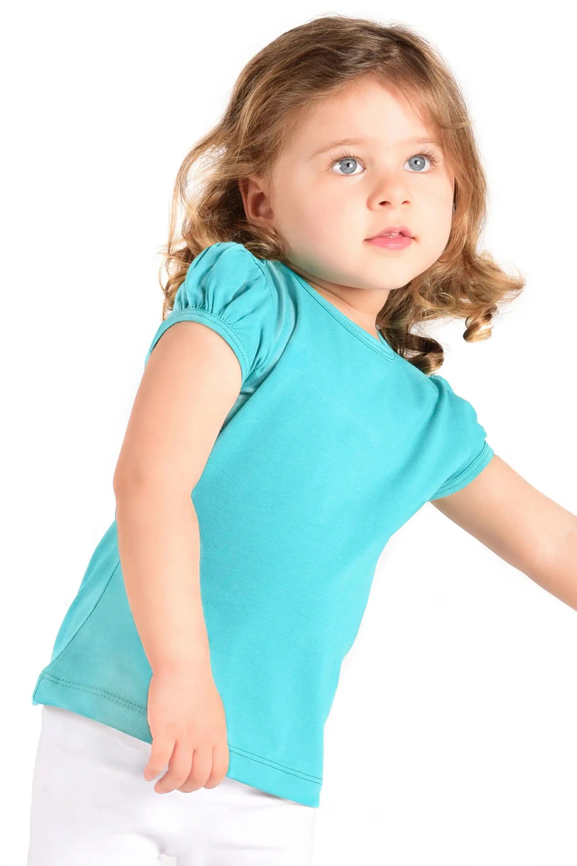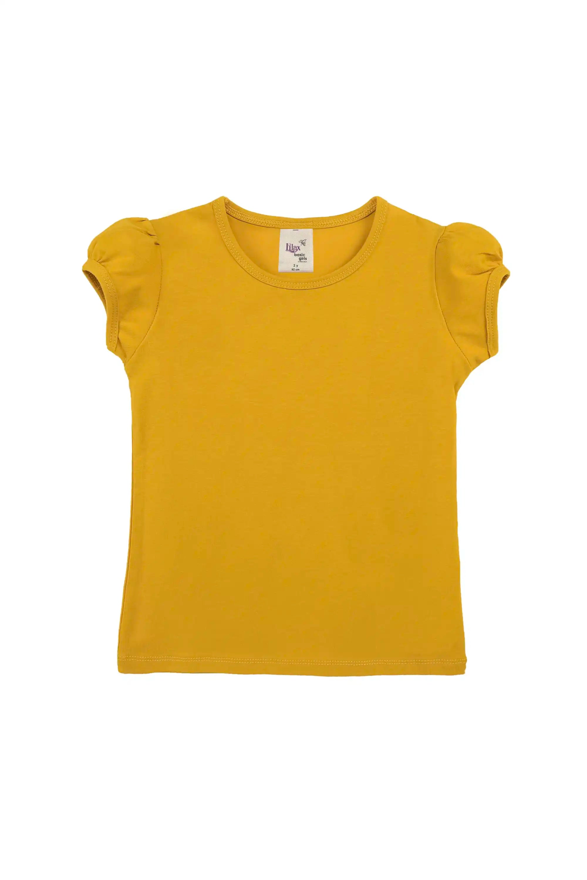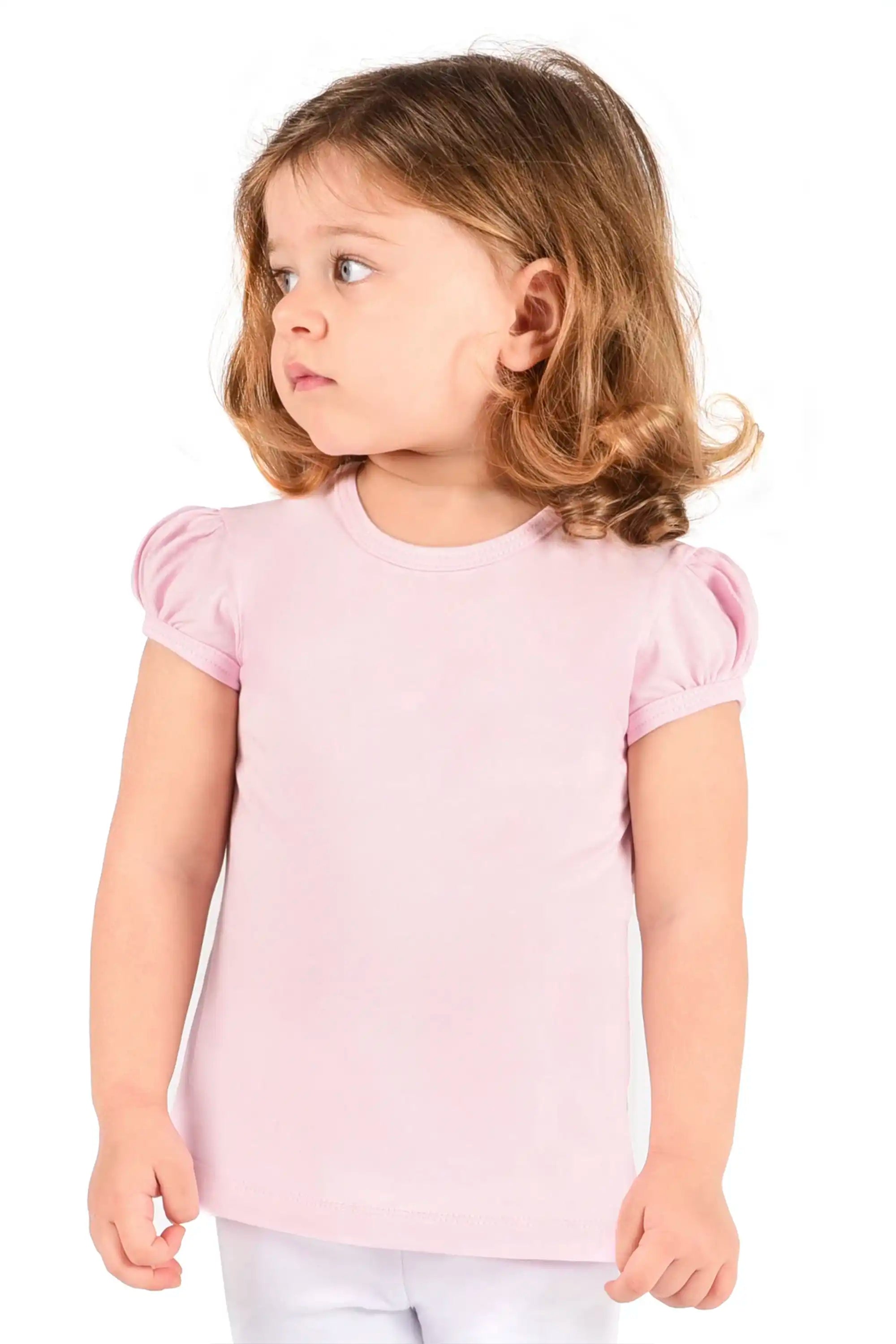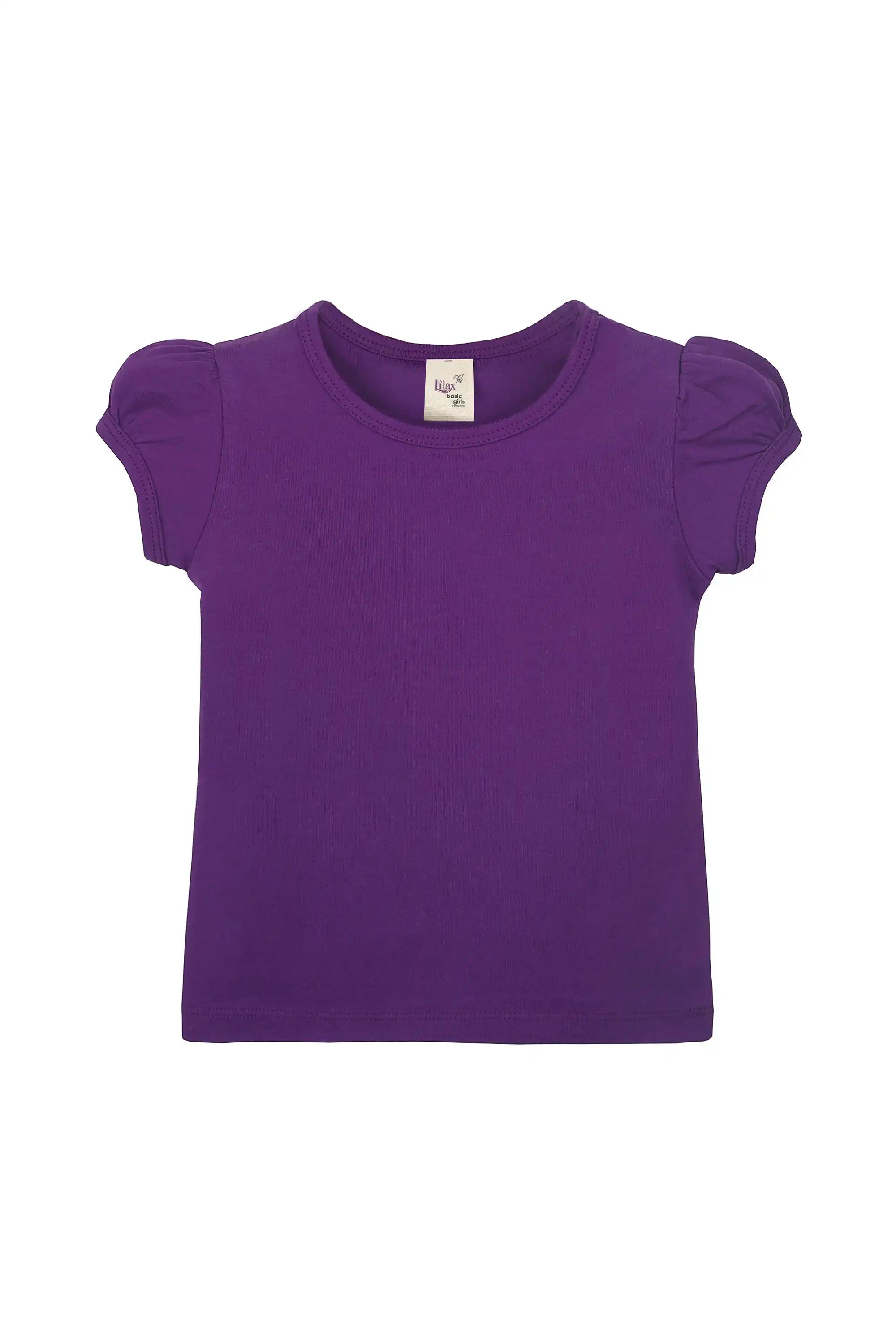 Girls' Basic Short Puff Sleeve Round Neck Cotton T-Shirt