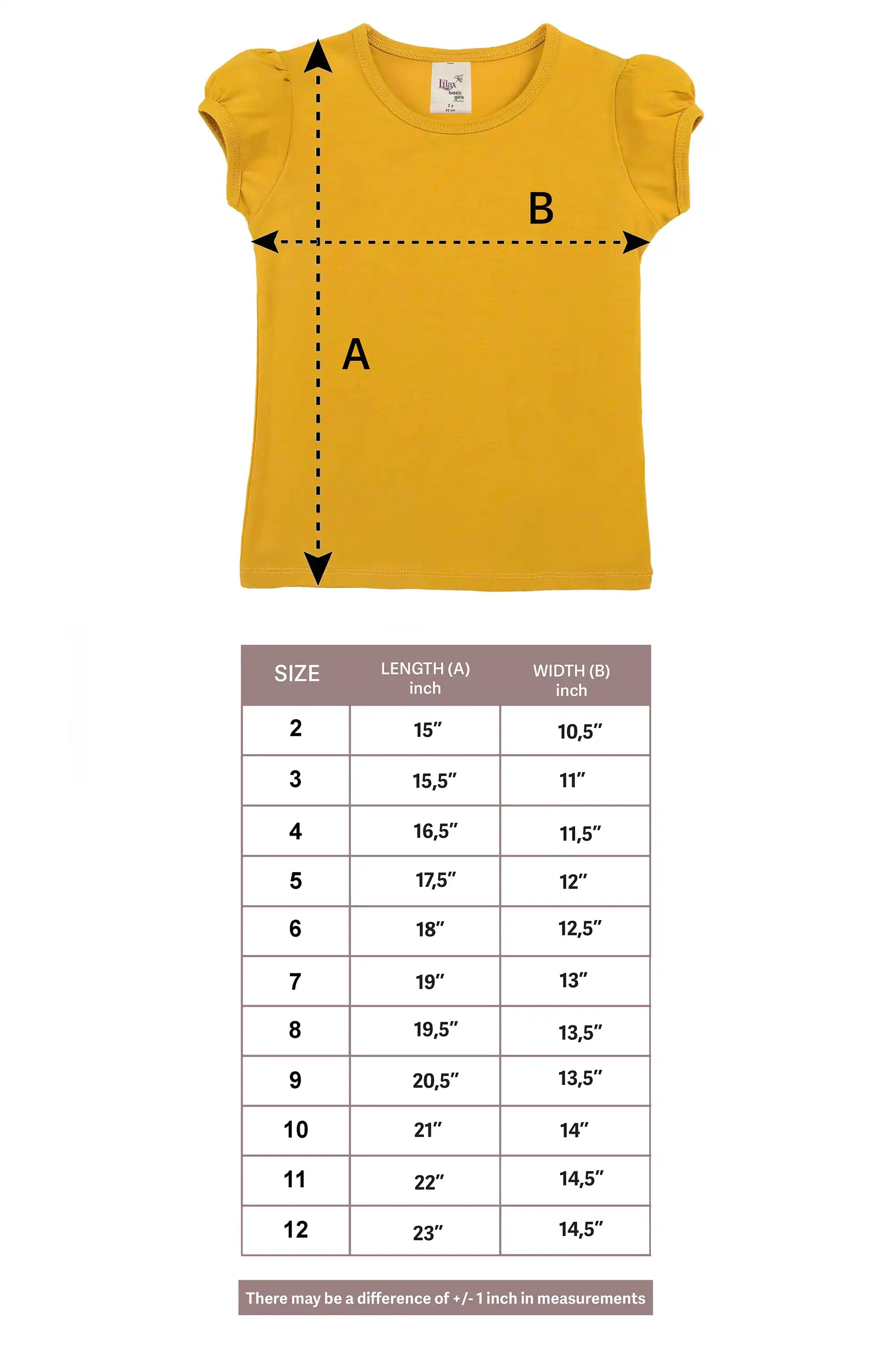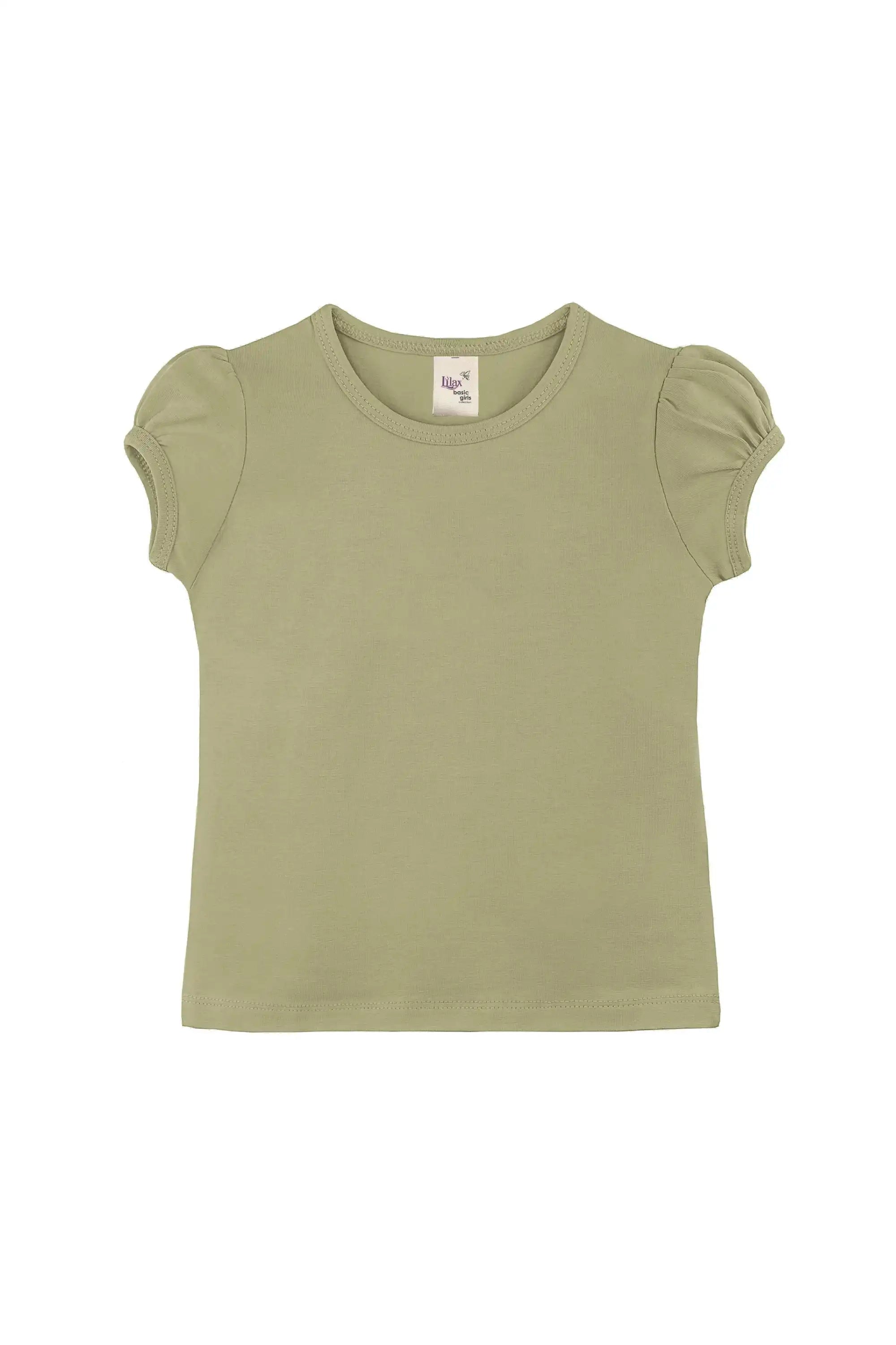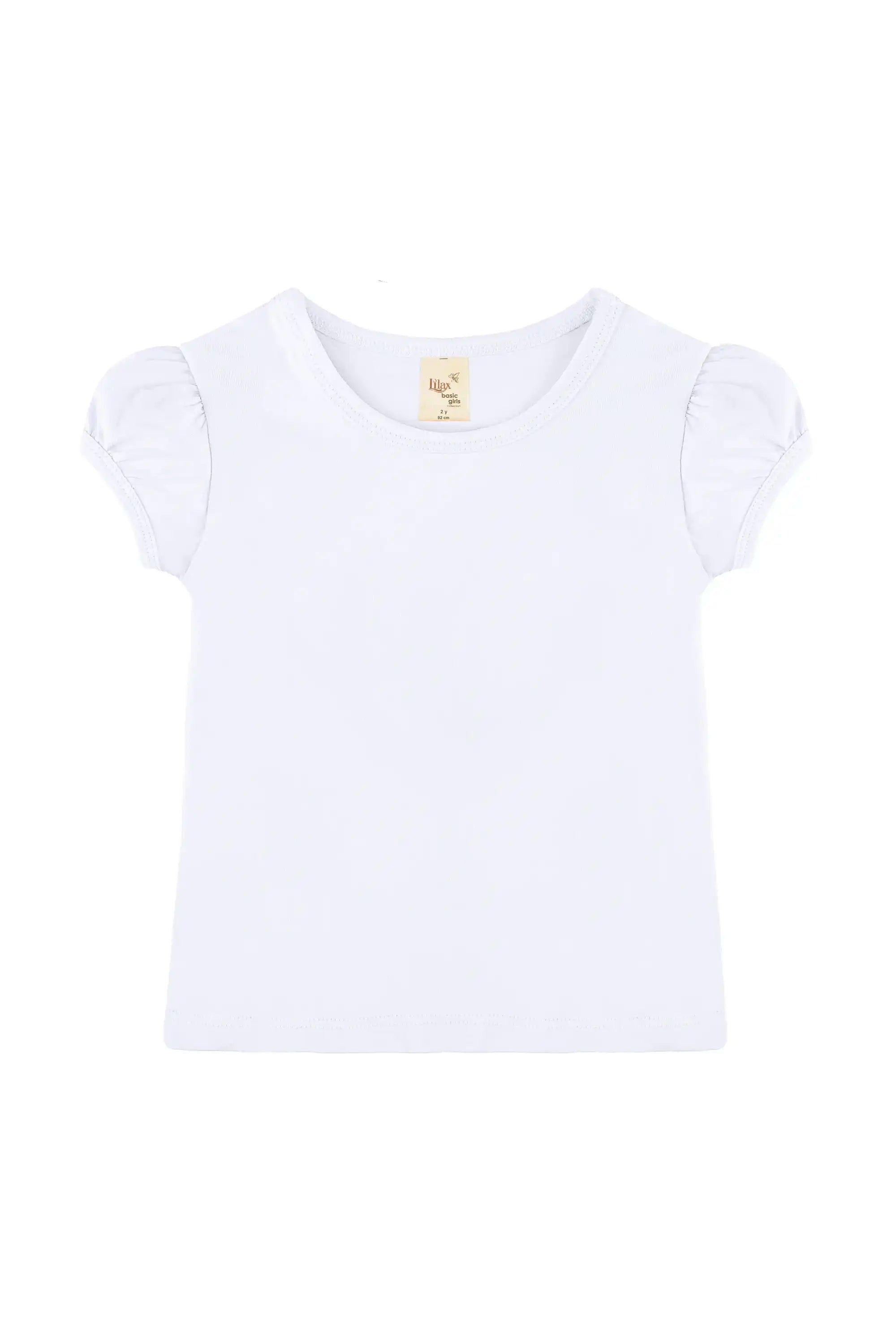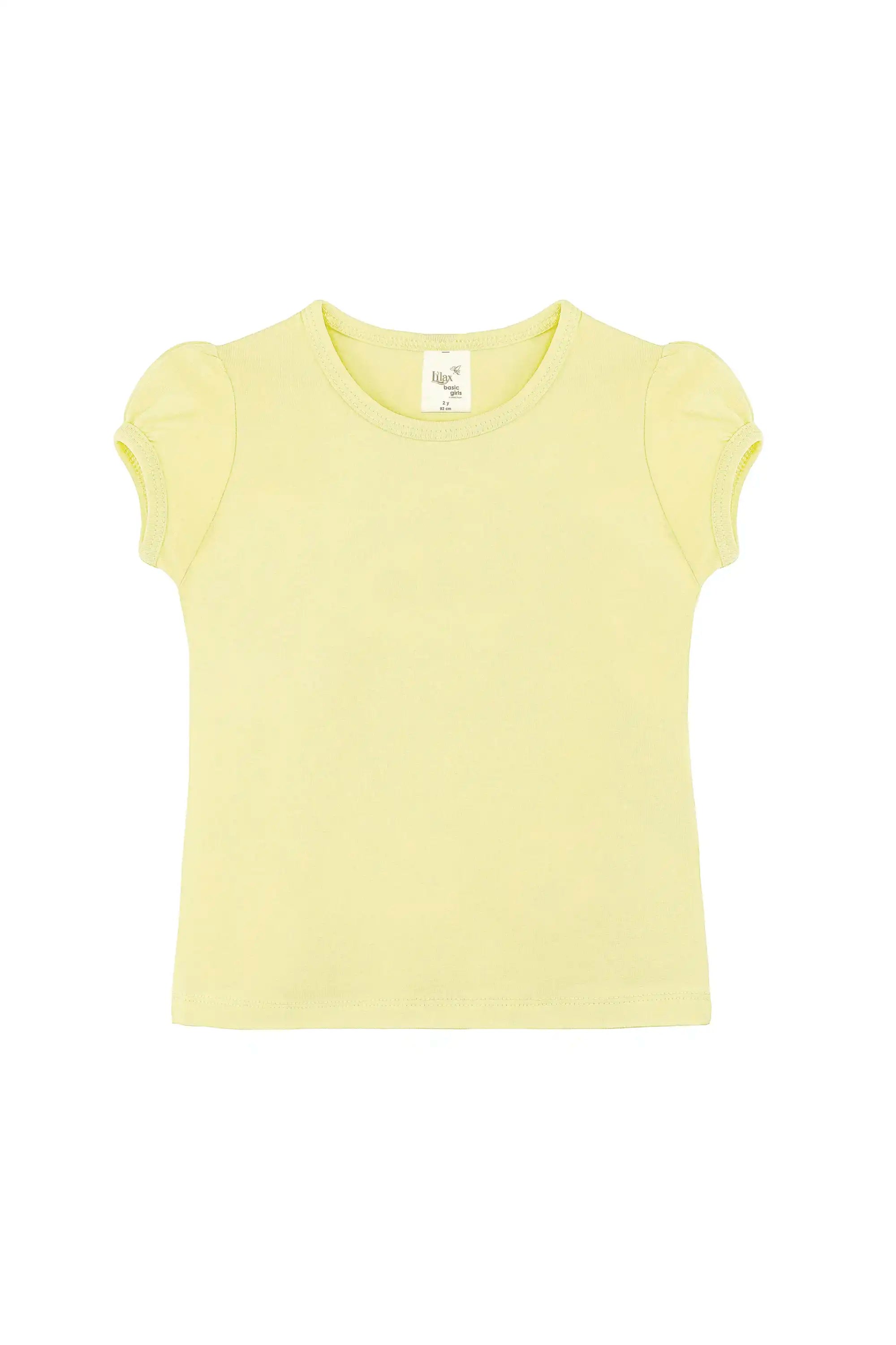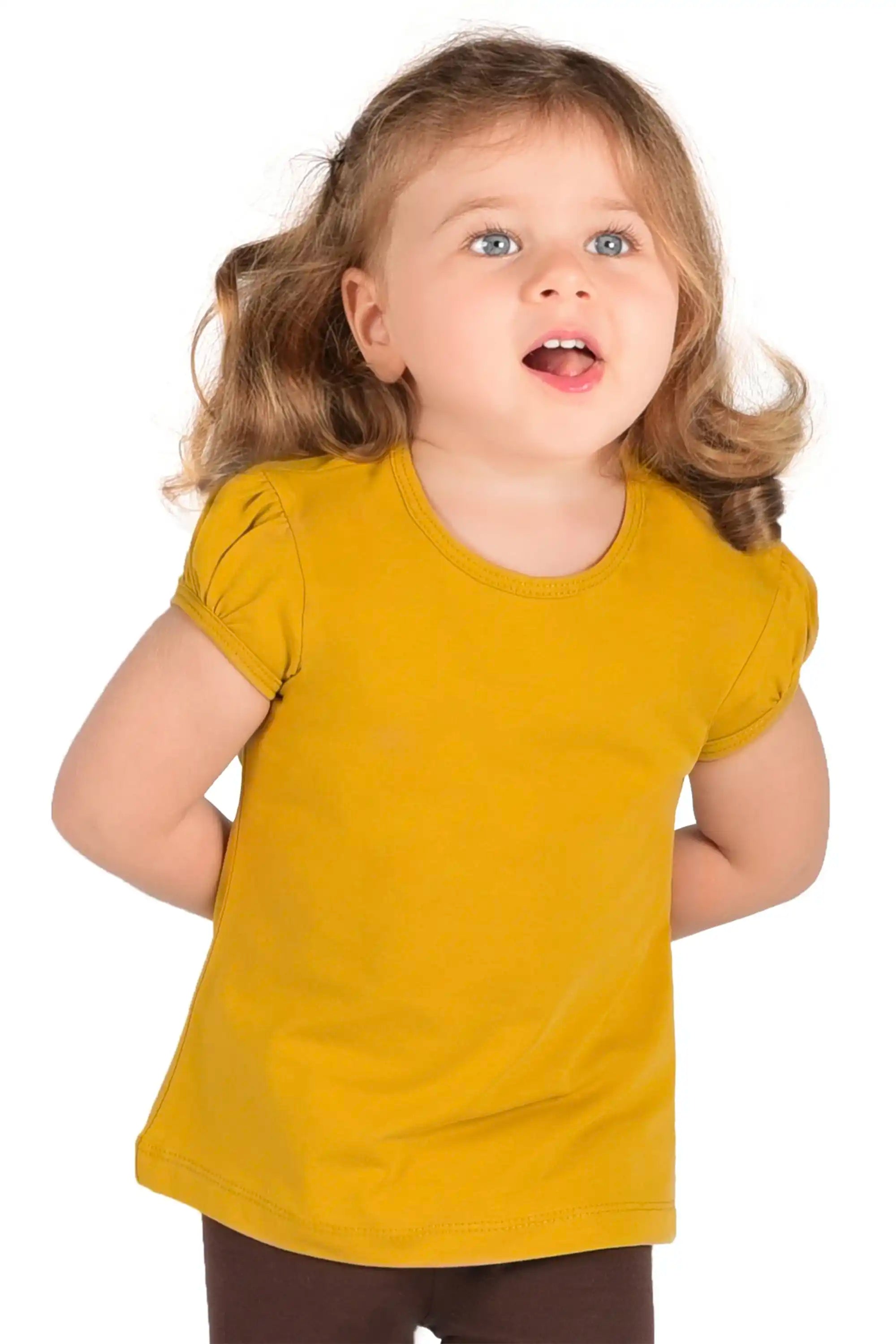 Girls' Basic Short Puff Sleeve Round Neck Cotton T-Shirt