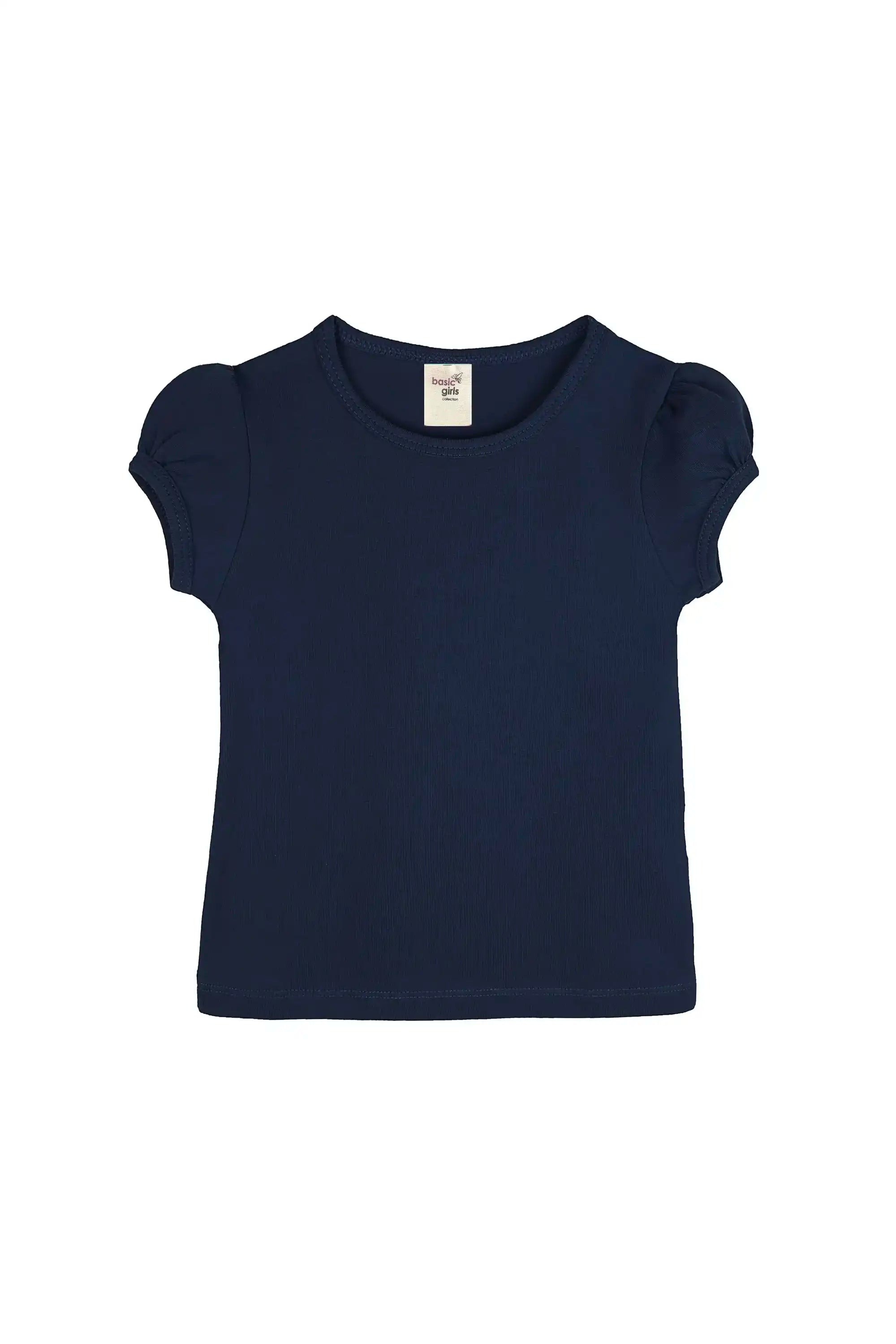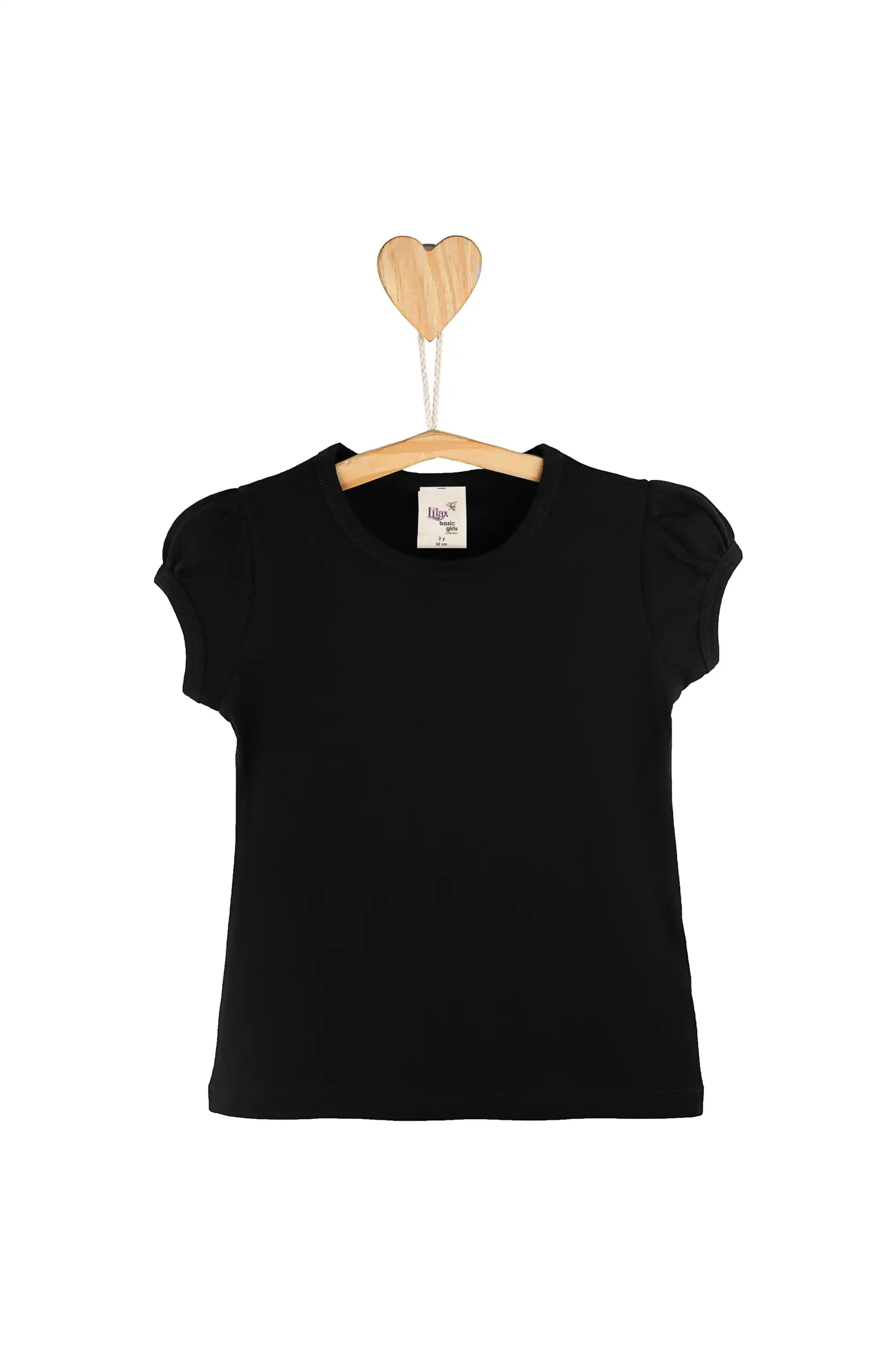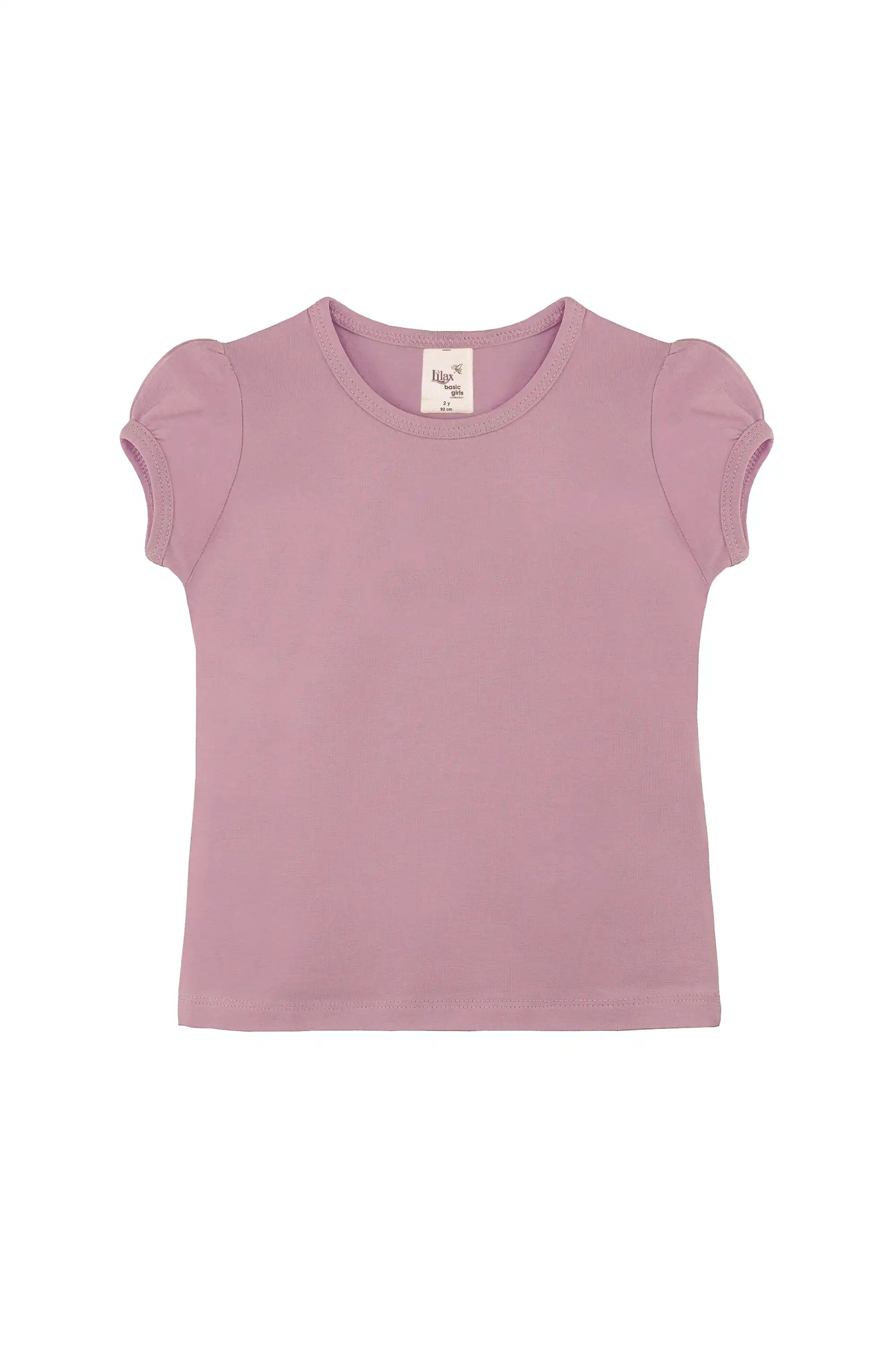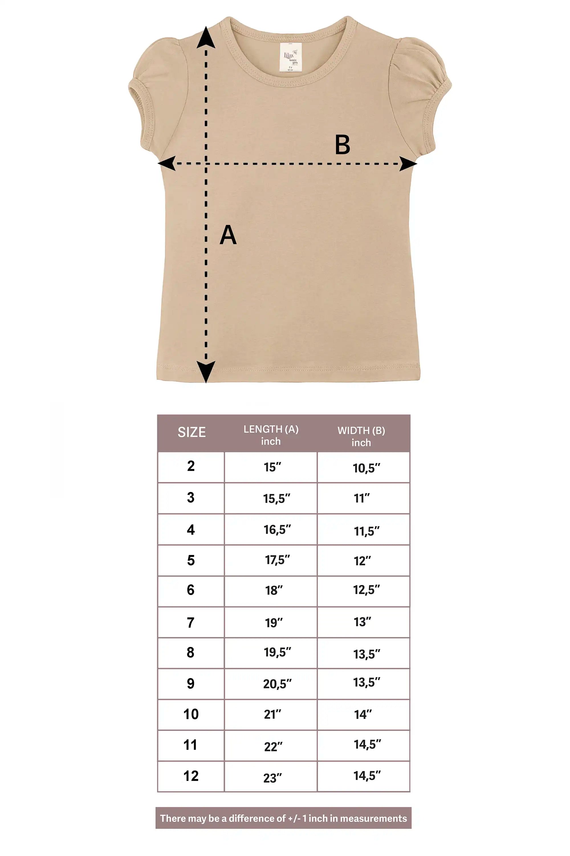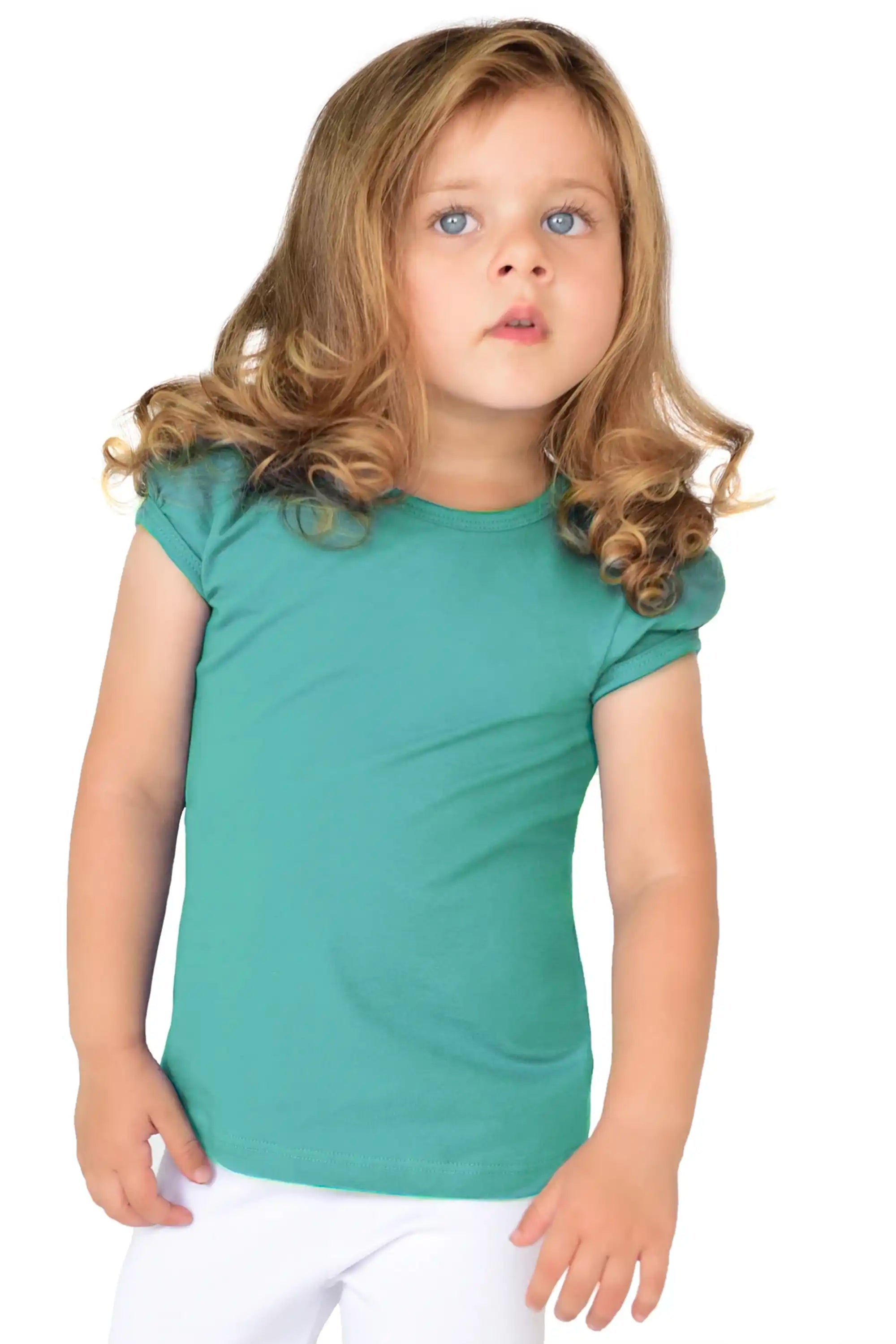 Girls' Basic Short Puff Sleeve Round Neck Cotton T-Shirt