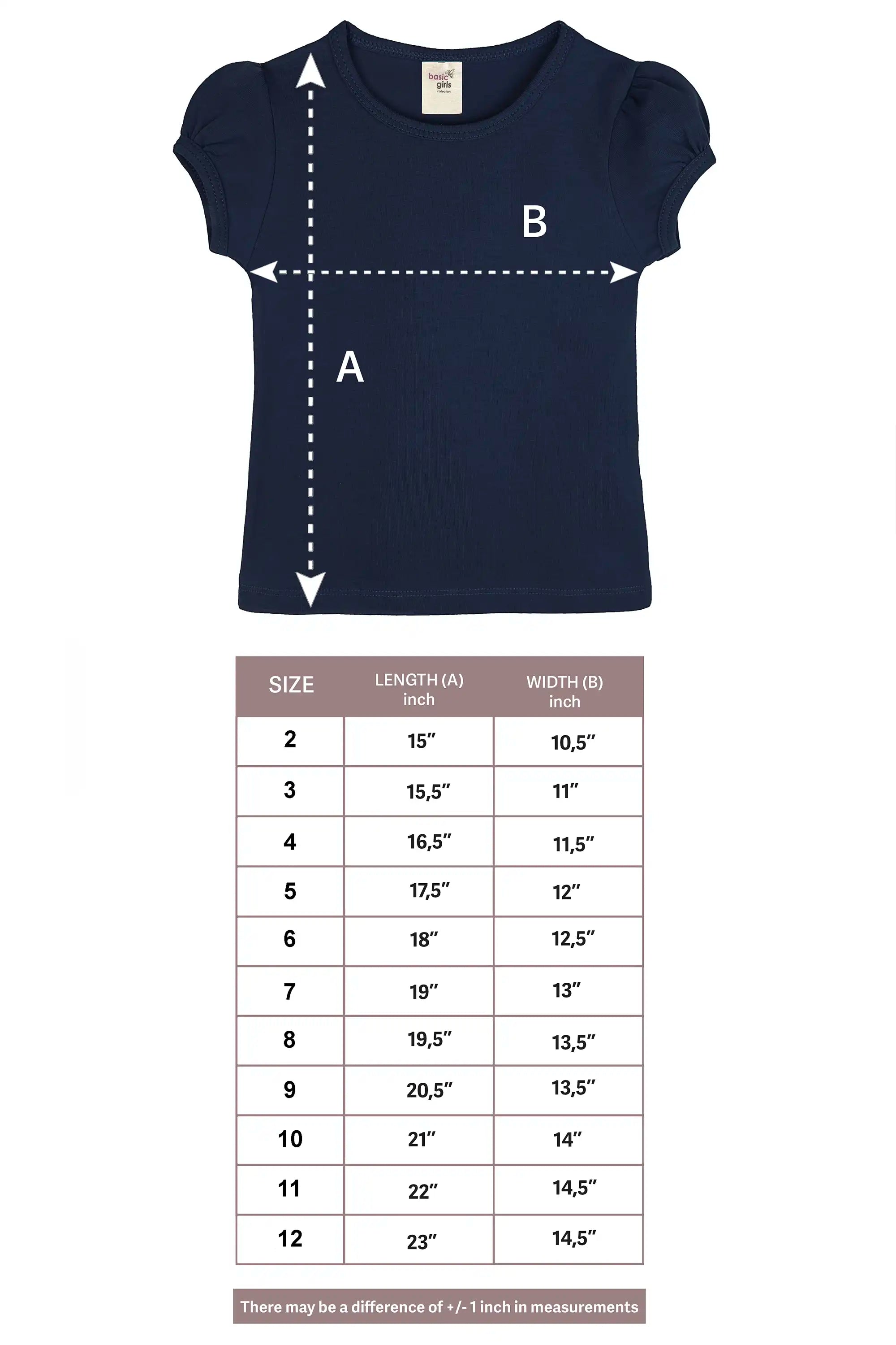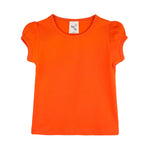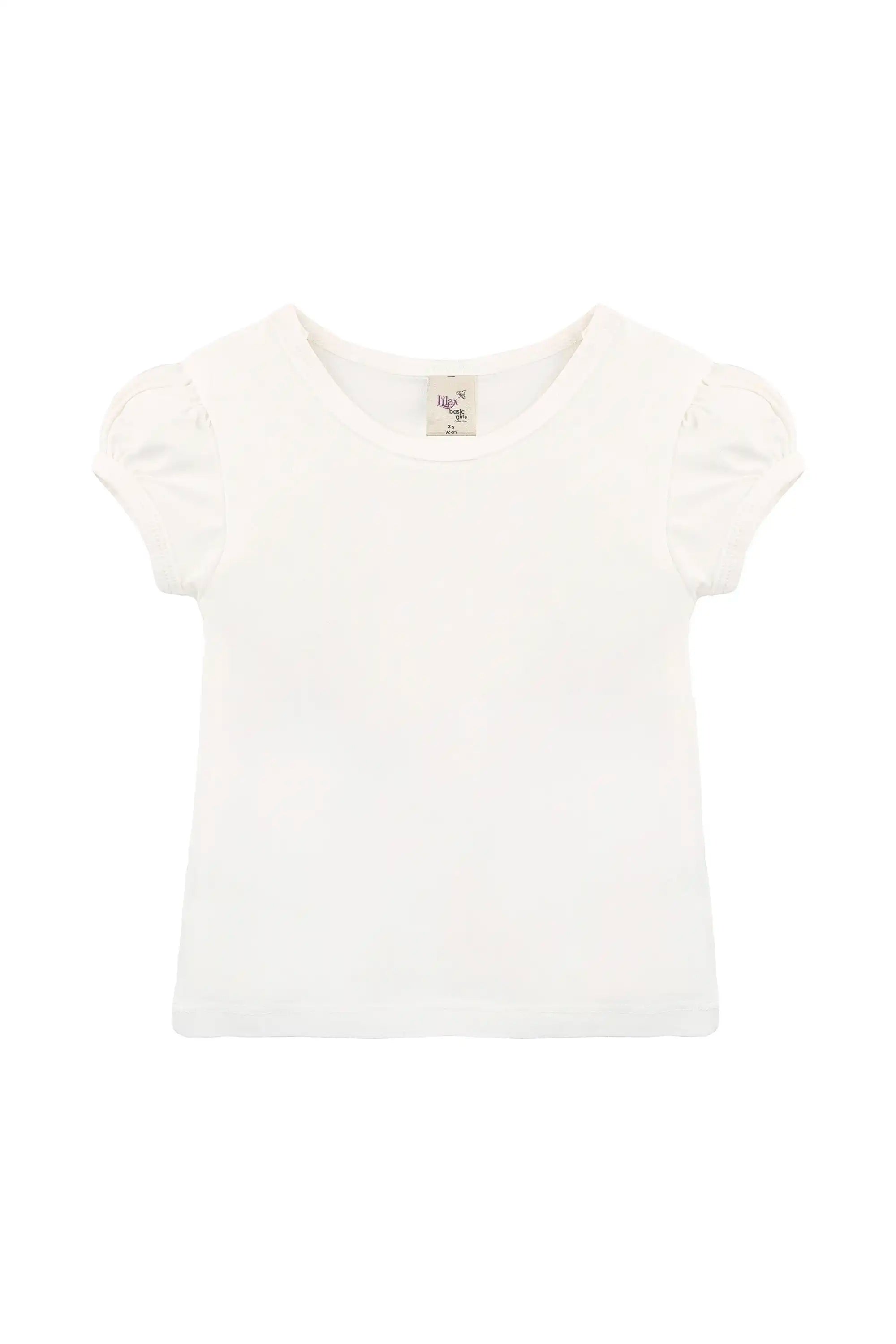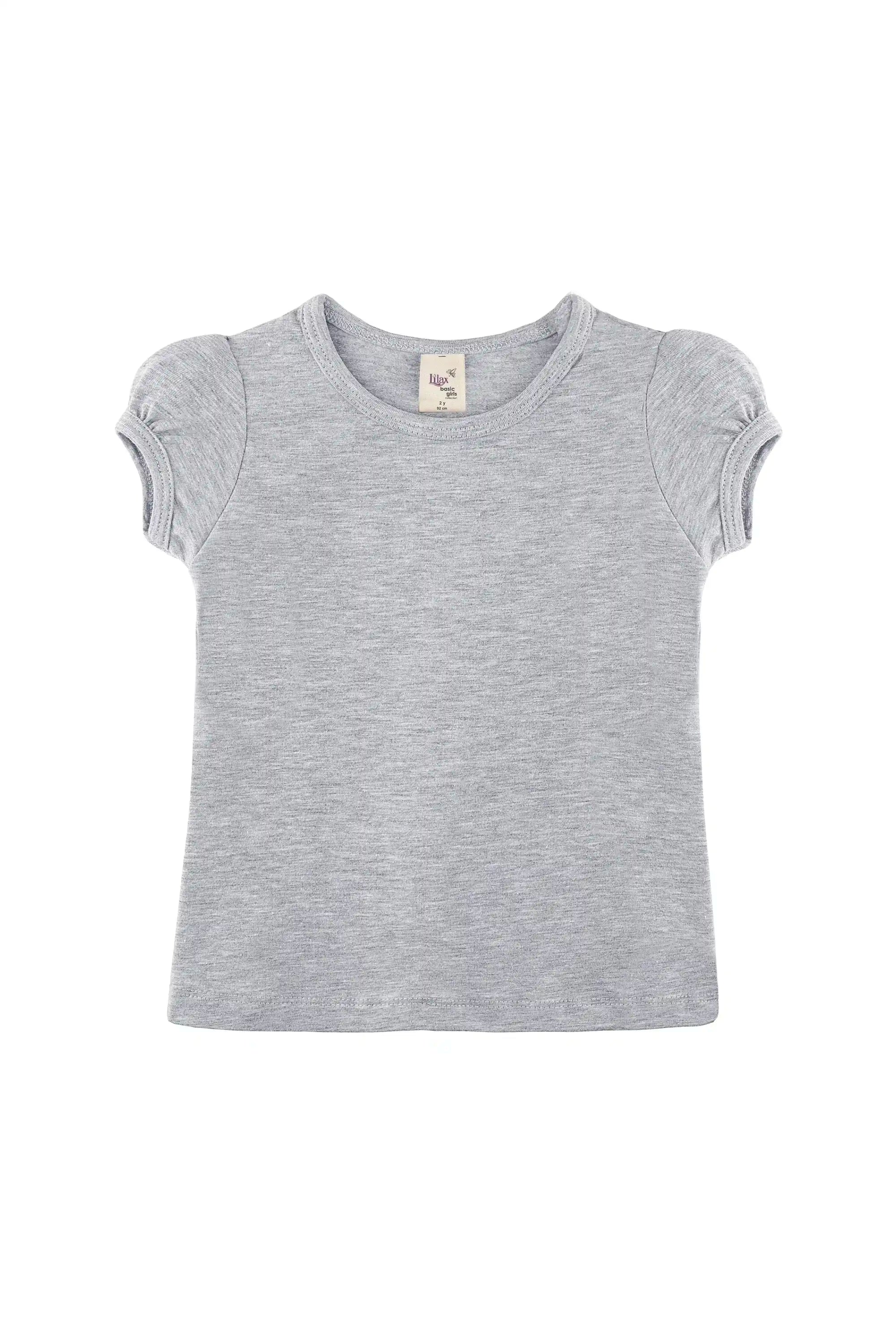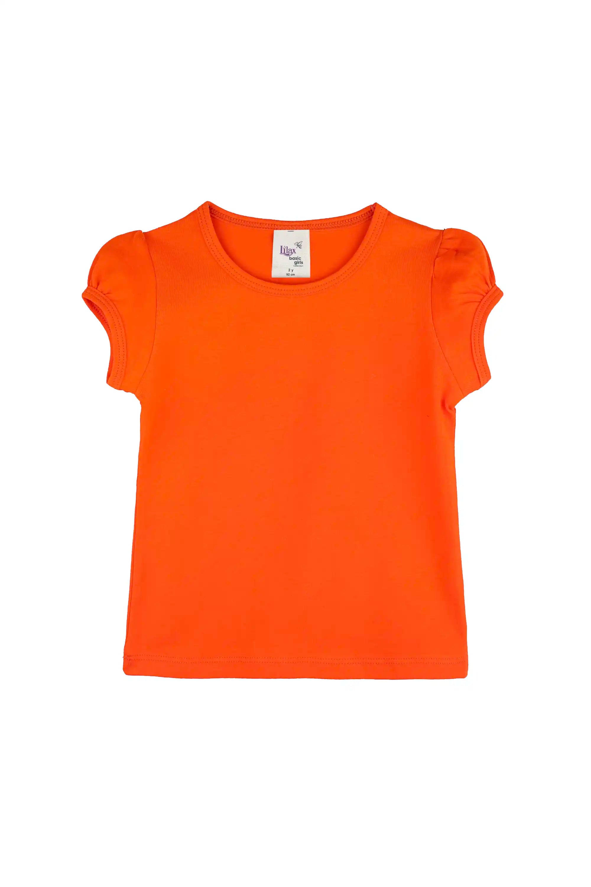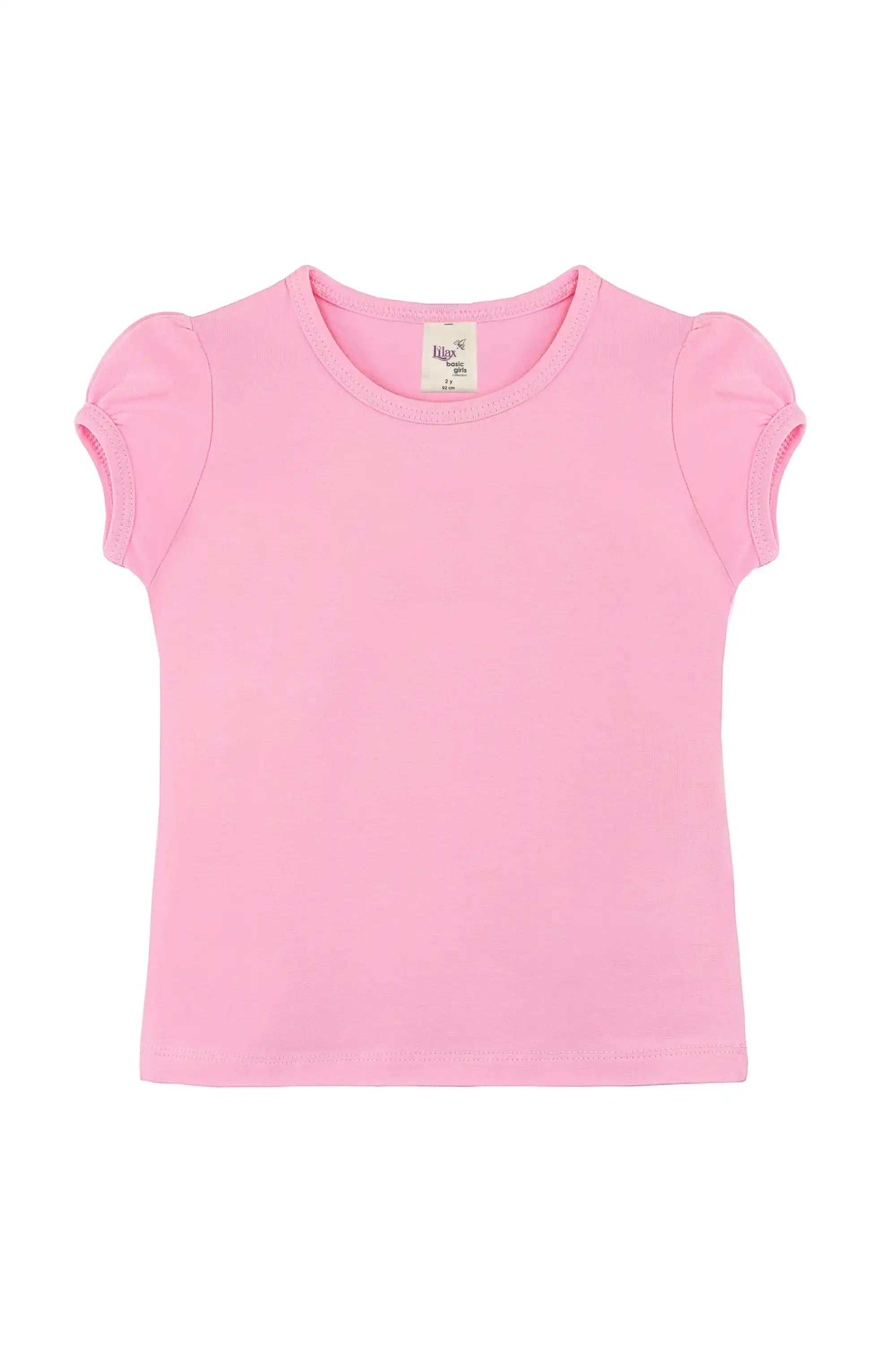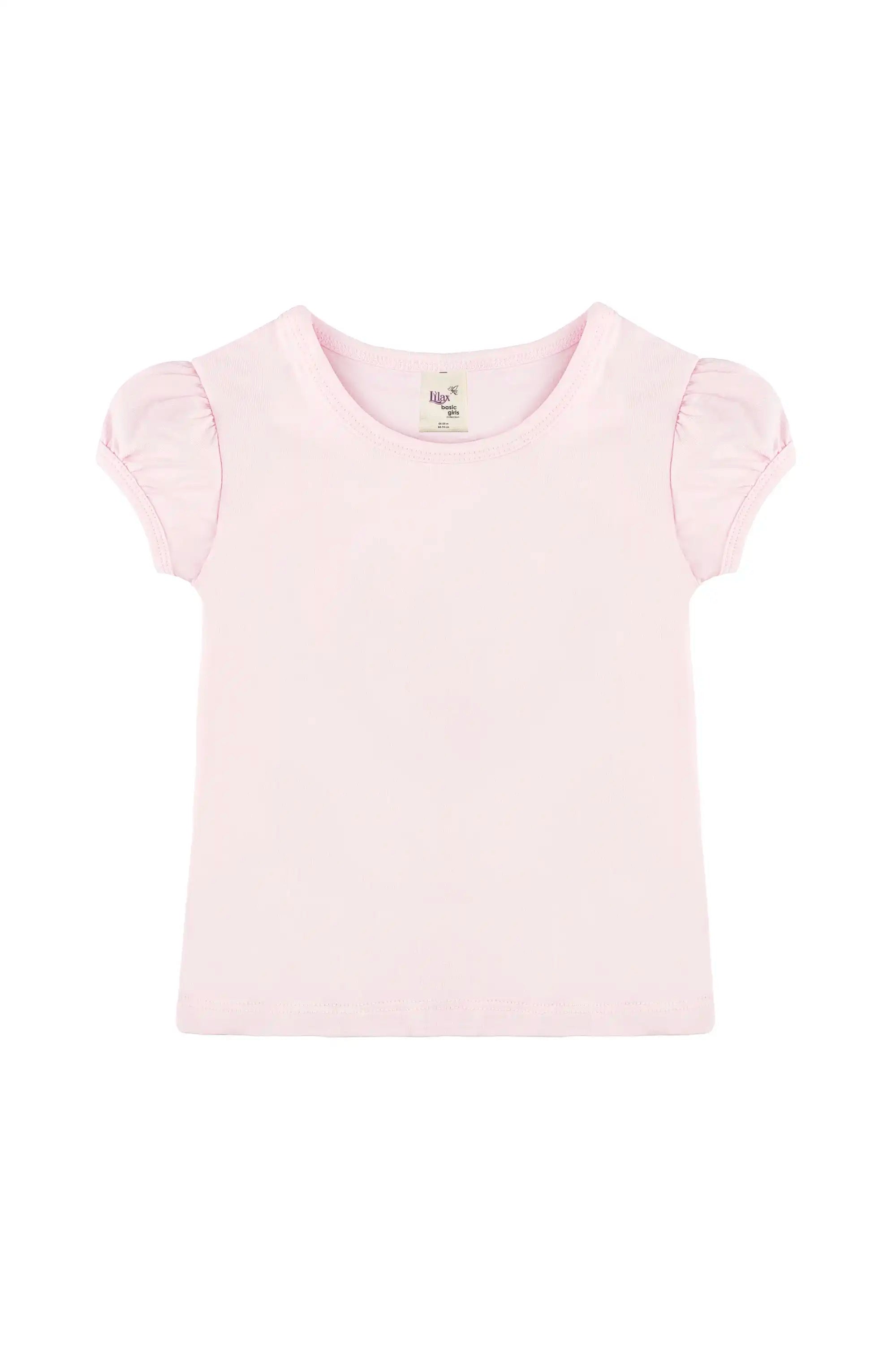 Girls' Basic Short Puff Sleeve Round Neck Cotton T-Shirt