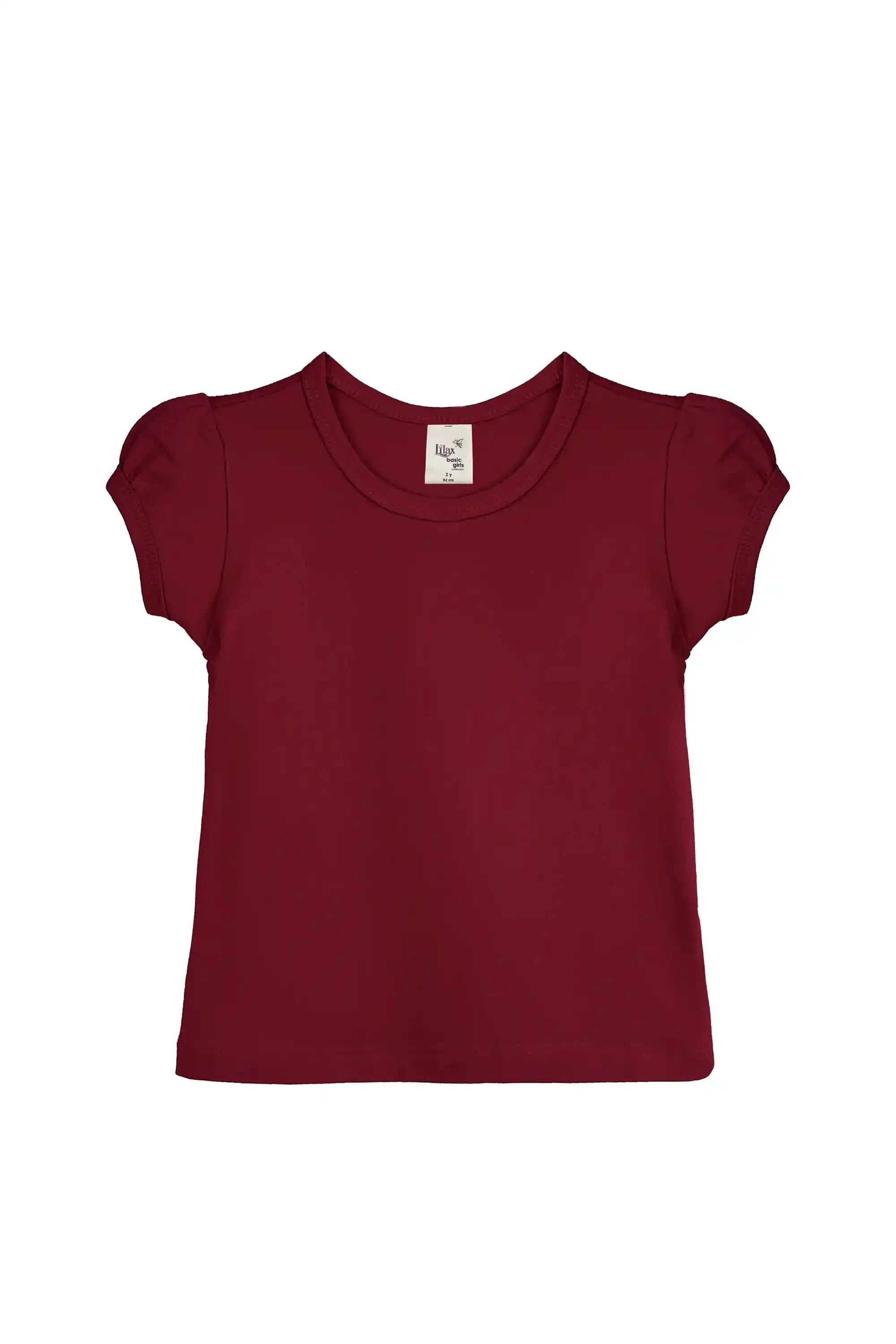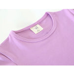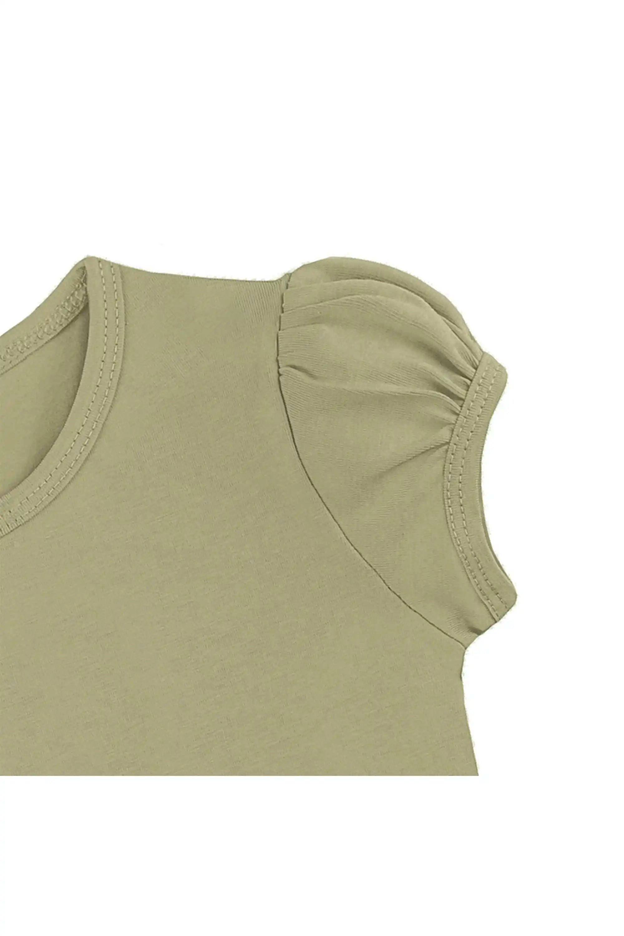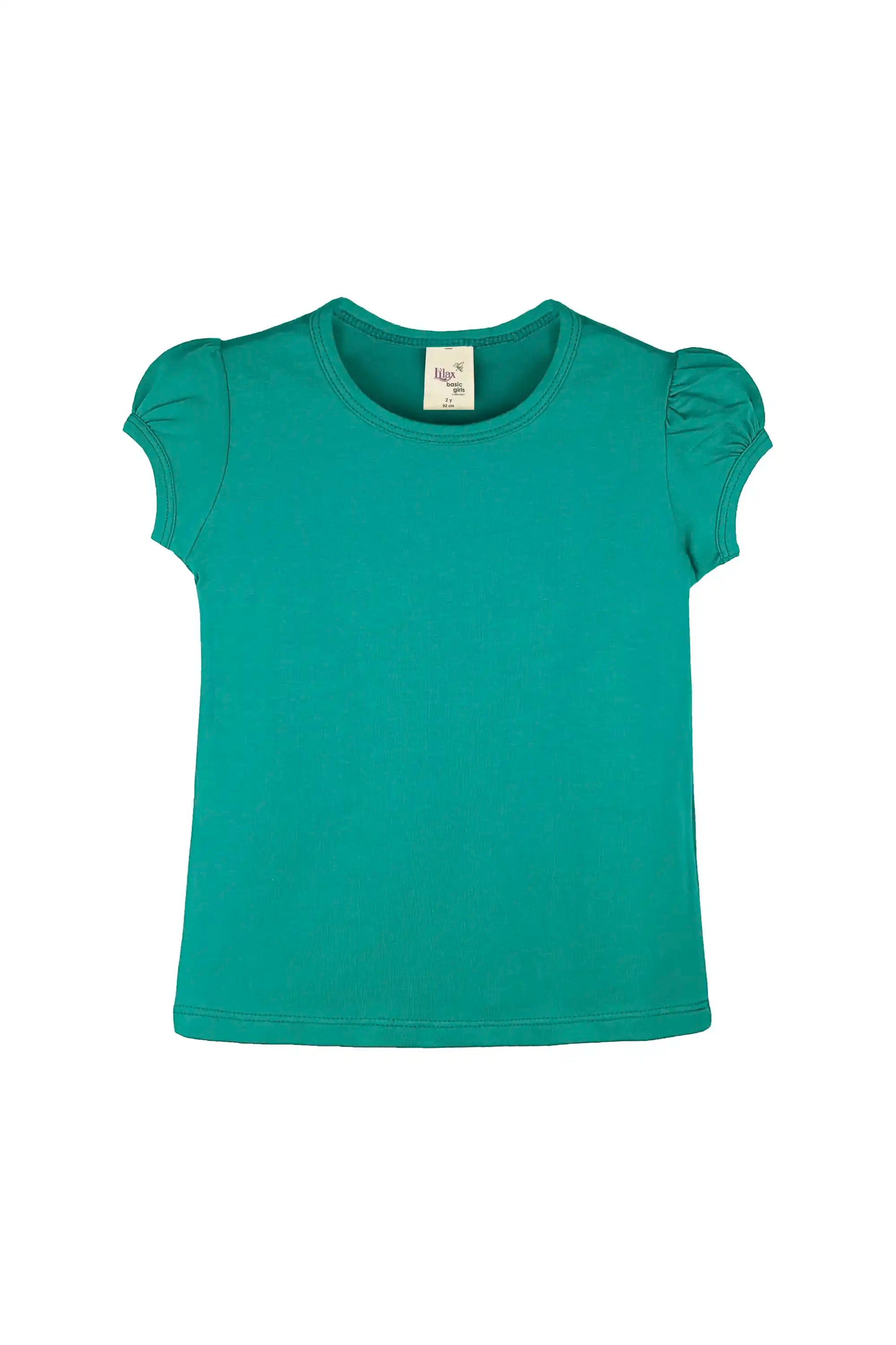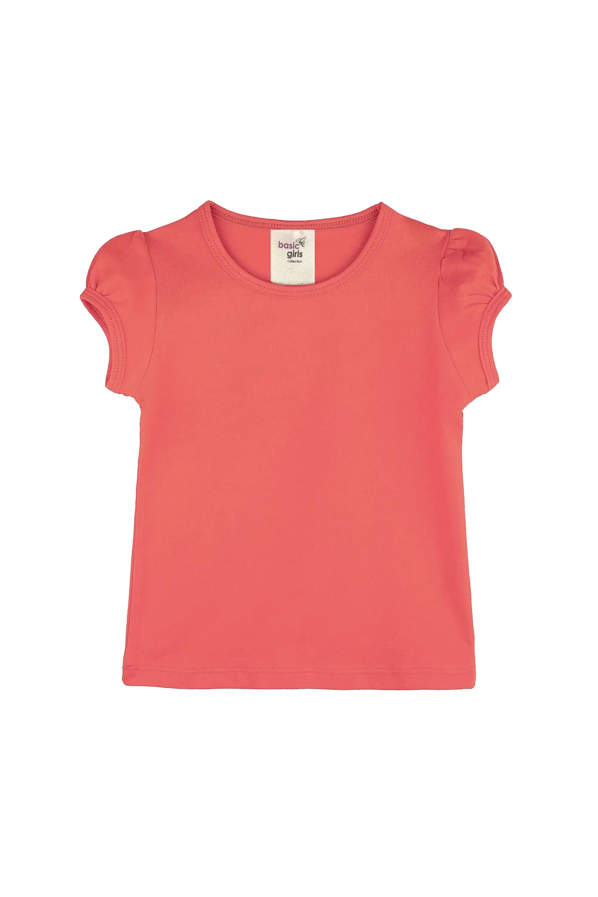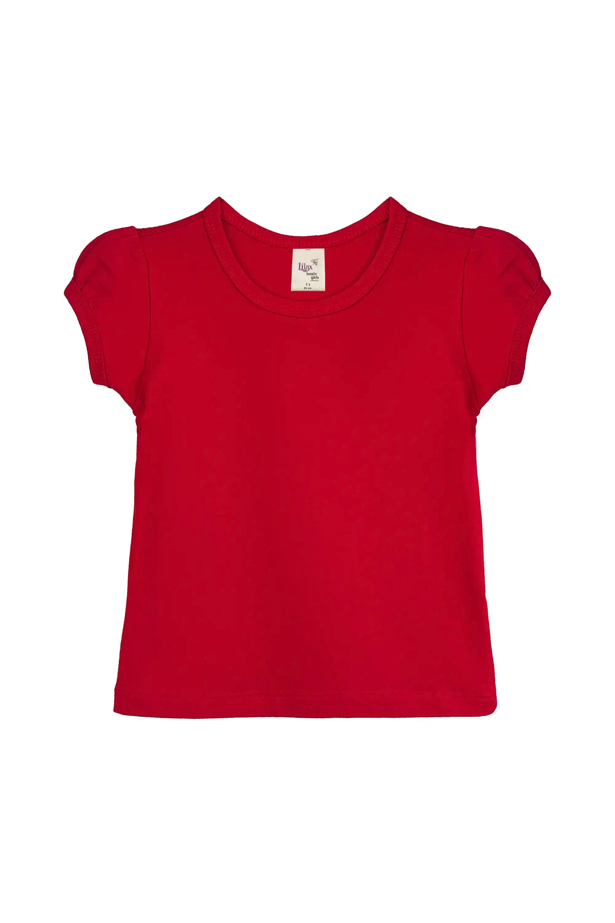 Girls' Basic Short Puff Sleeve Round Neck Cotton T-Shirt