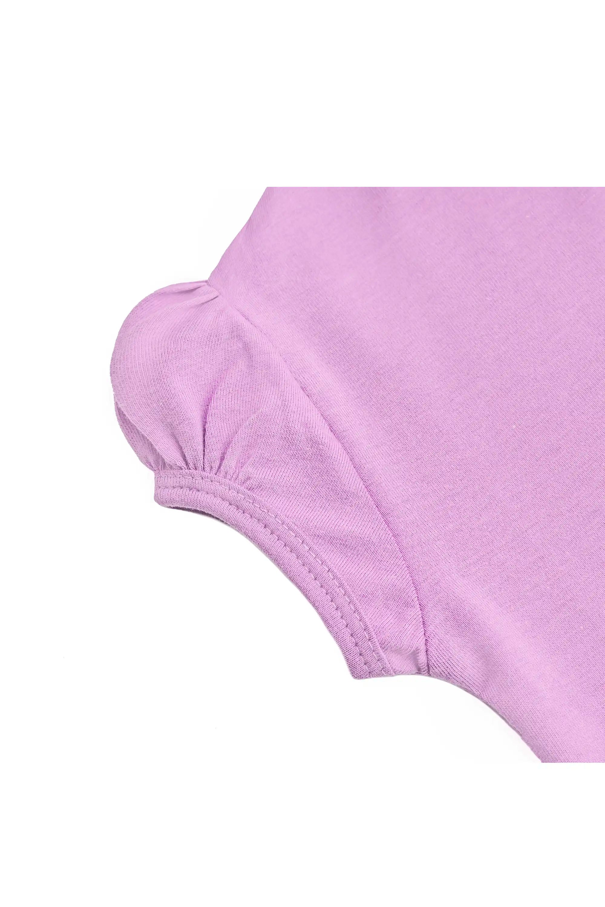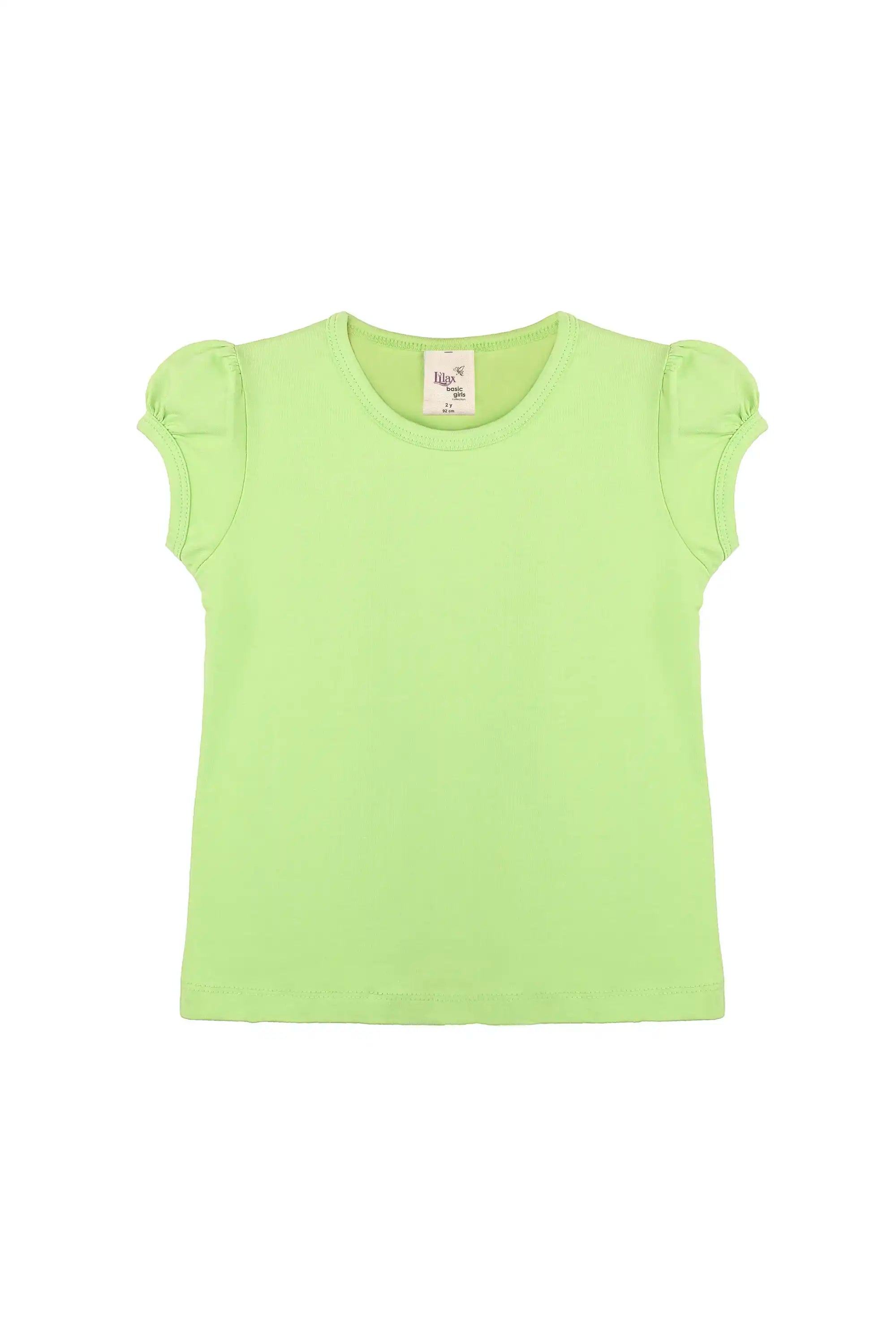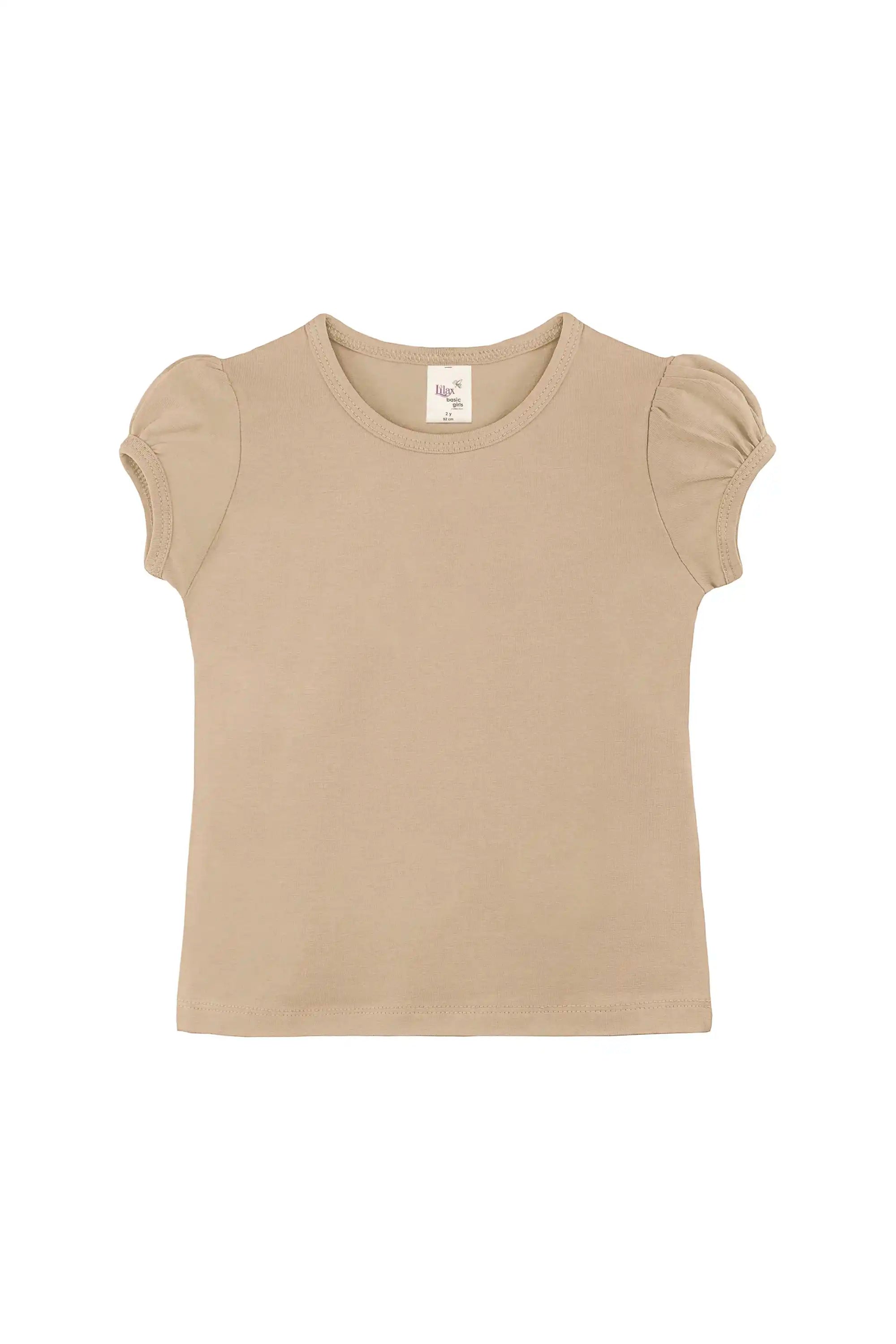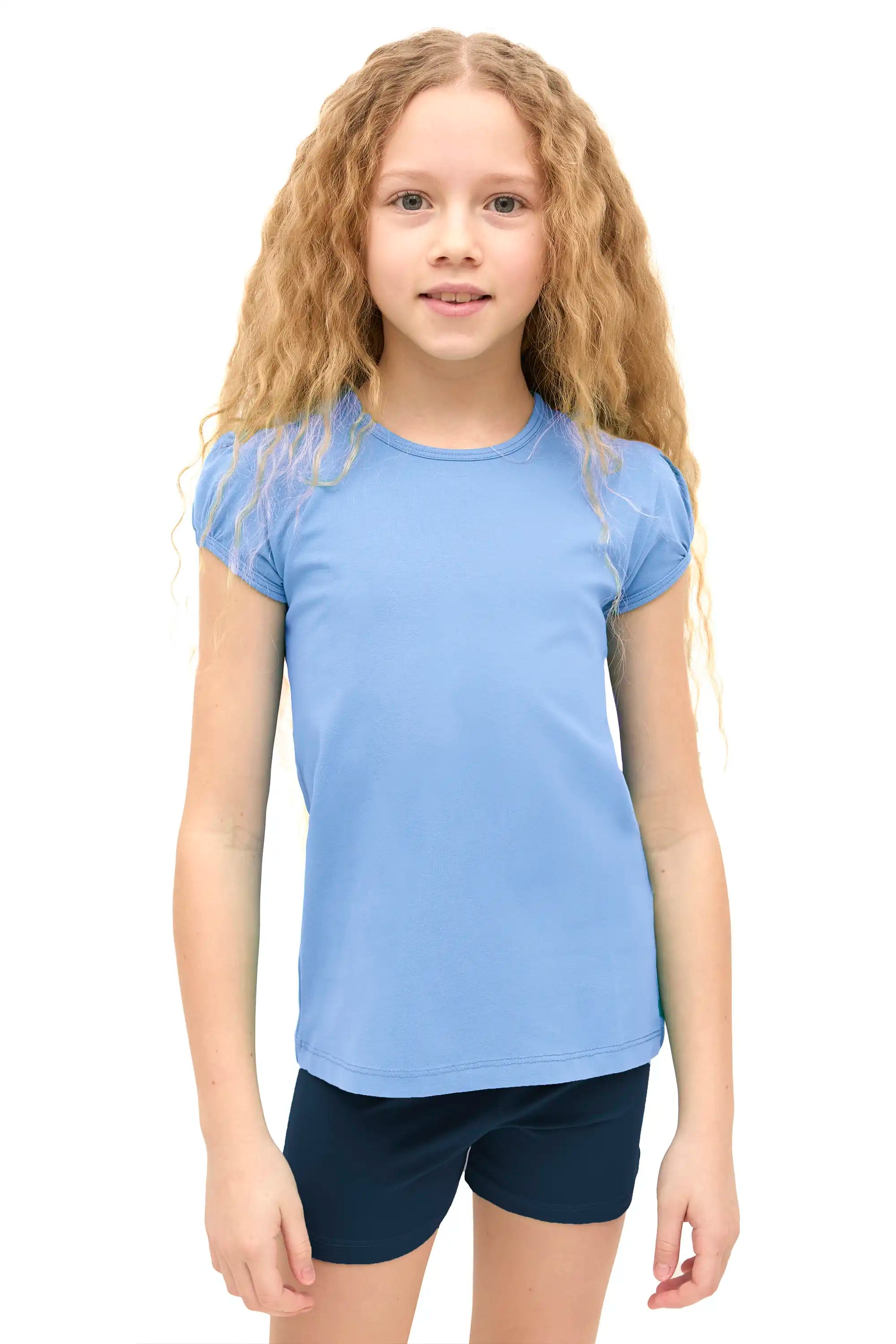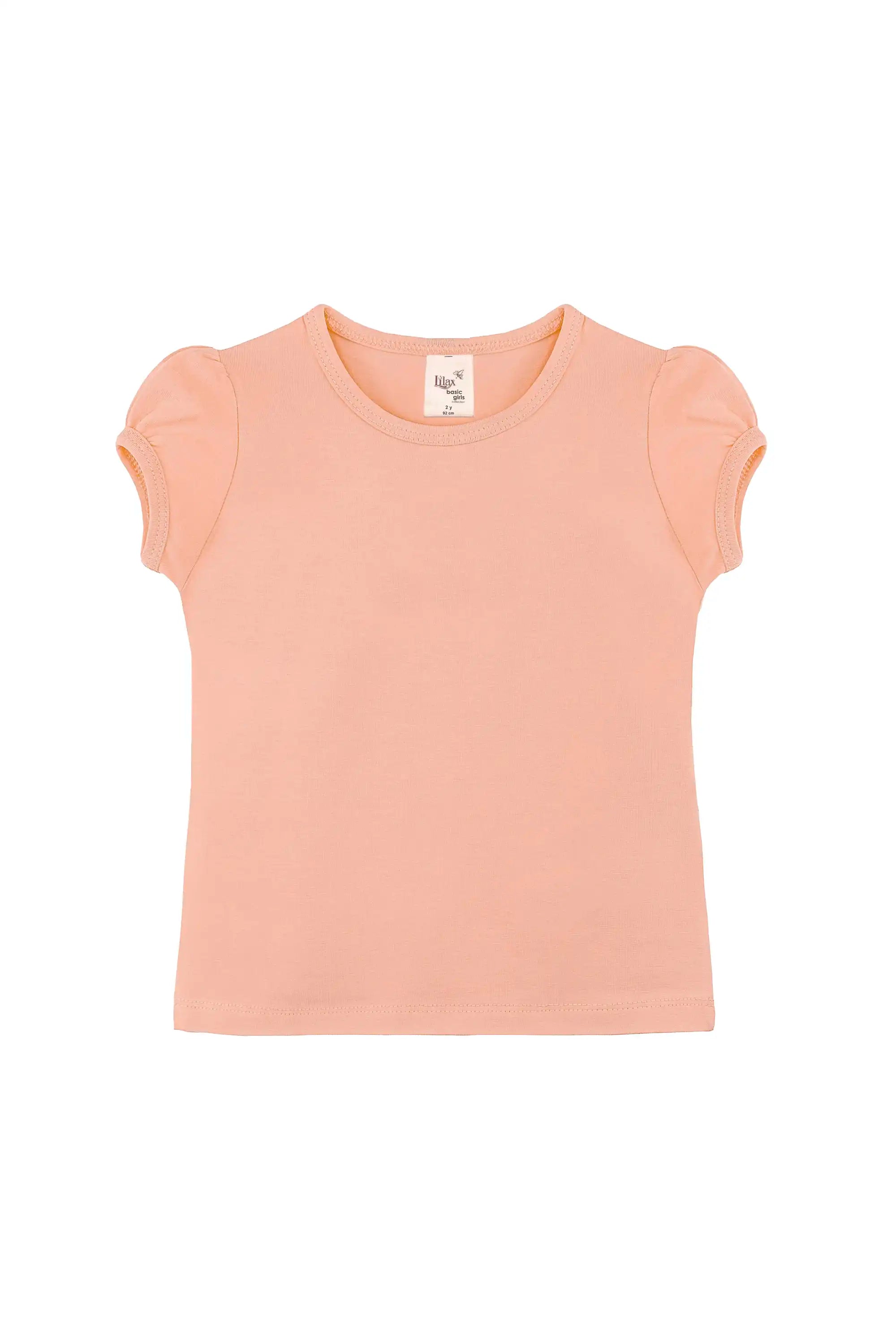 Girls' Basic Short Puff Sleeve Round Neck Cotton T-Shirt