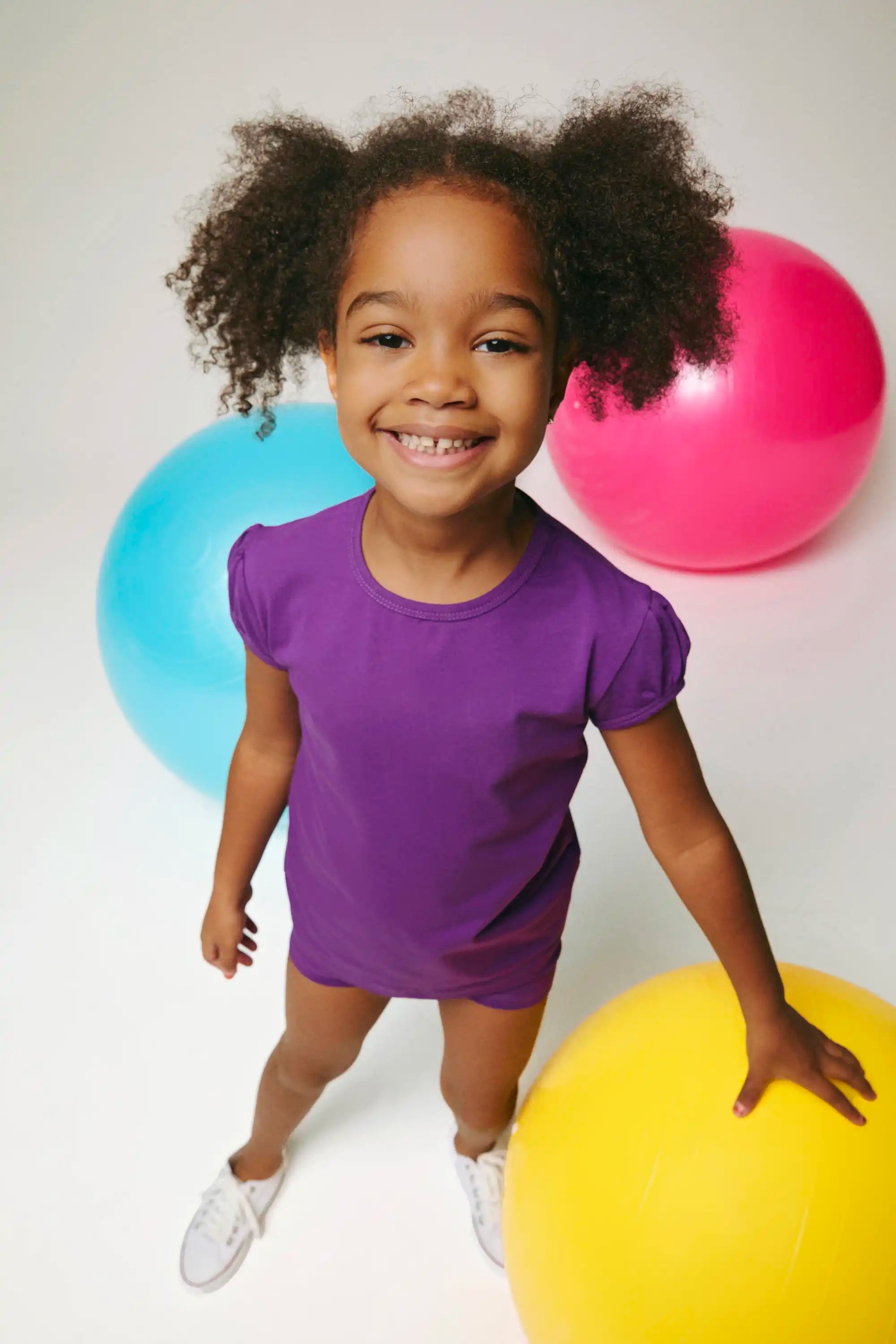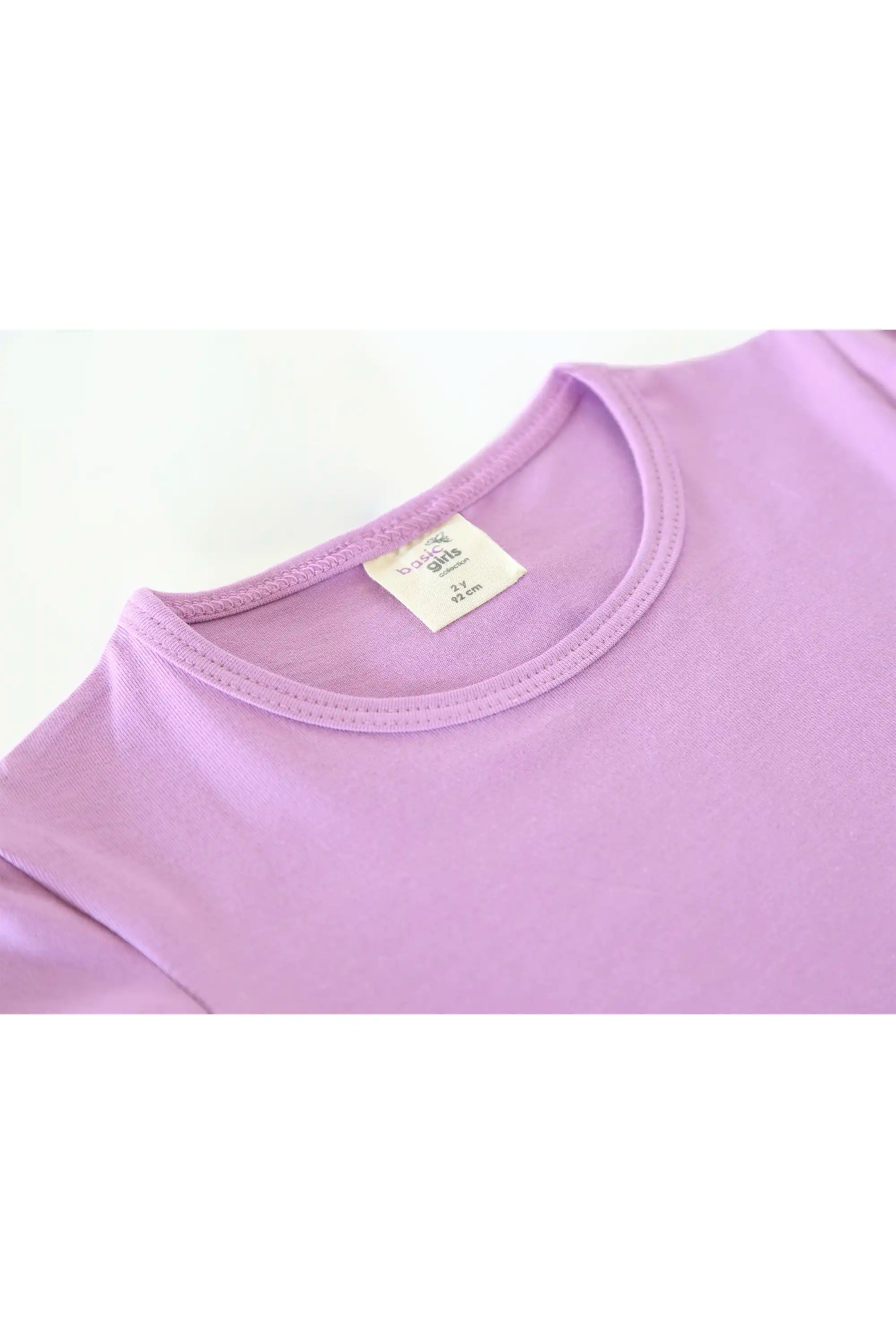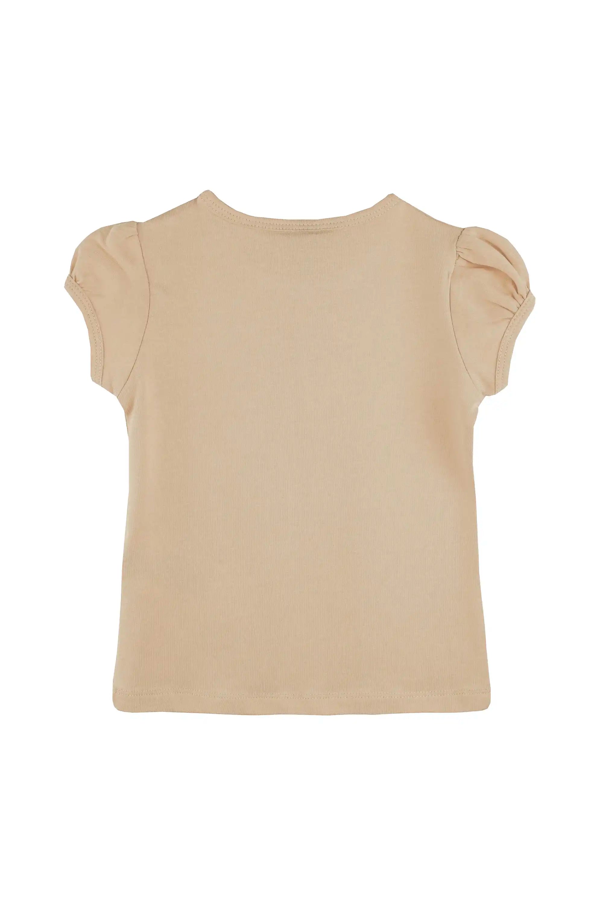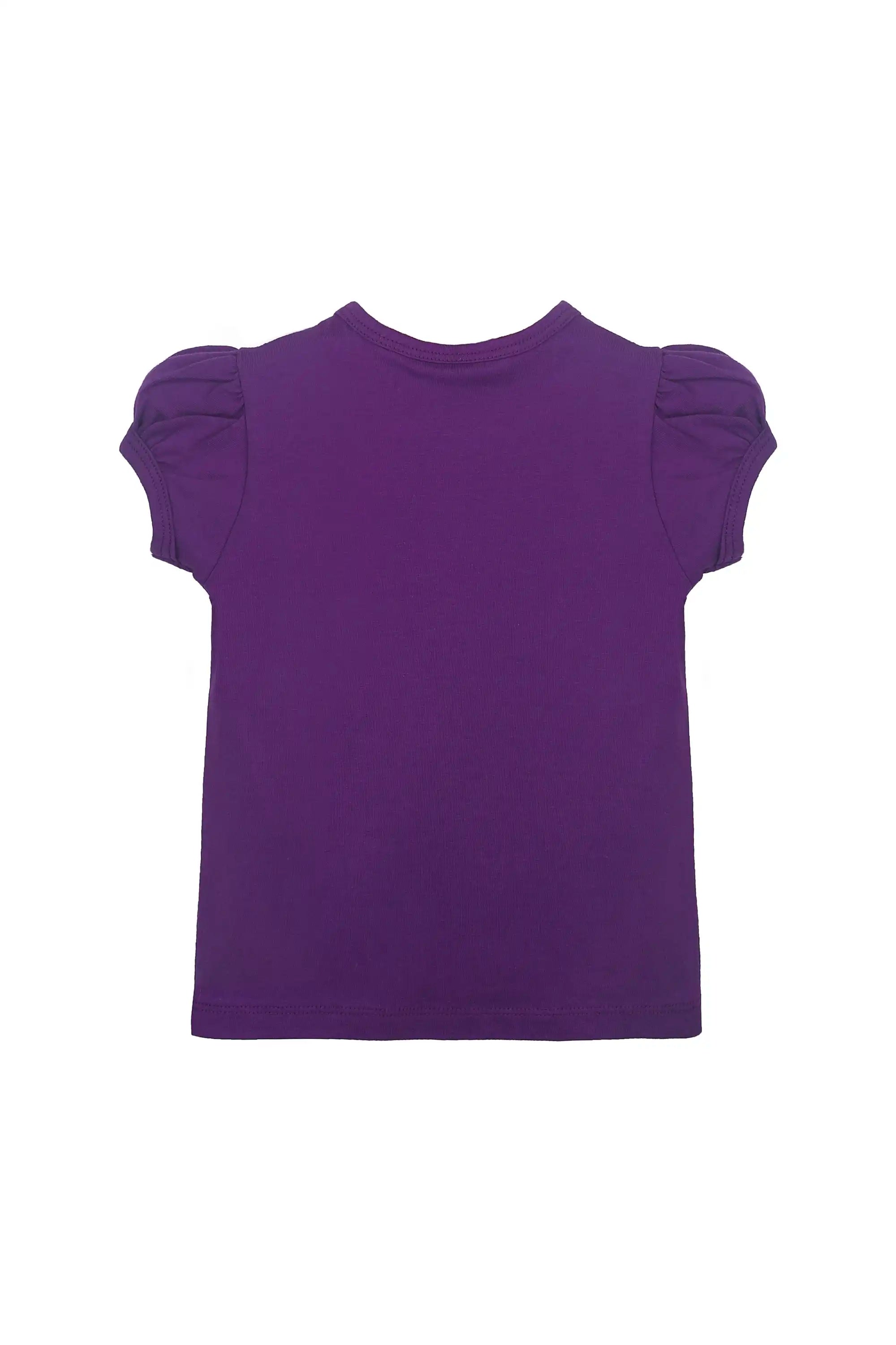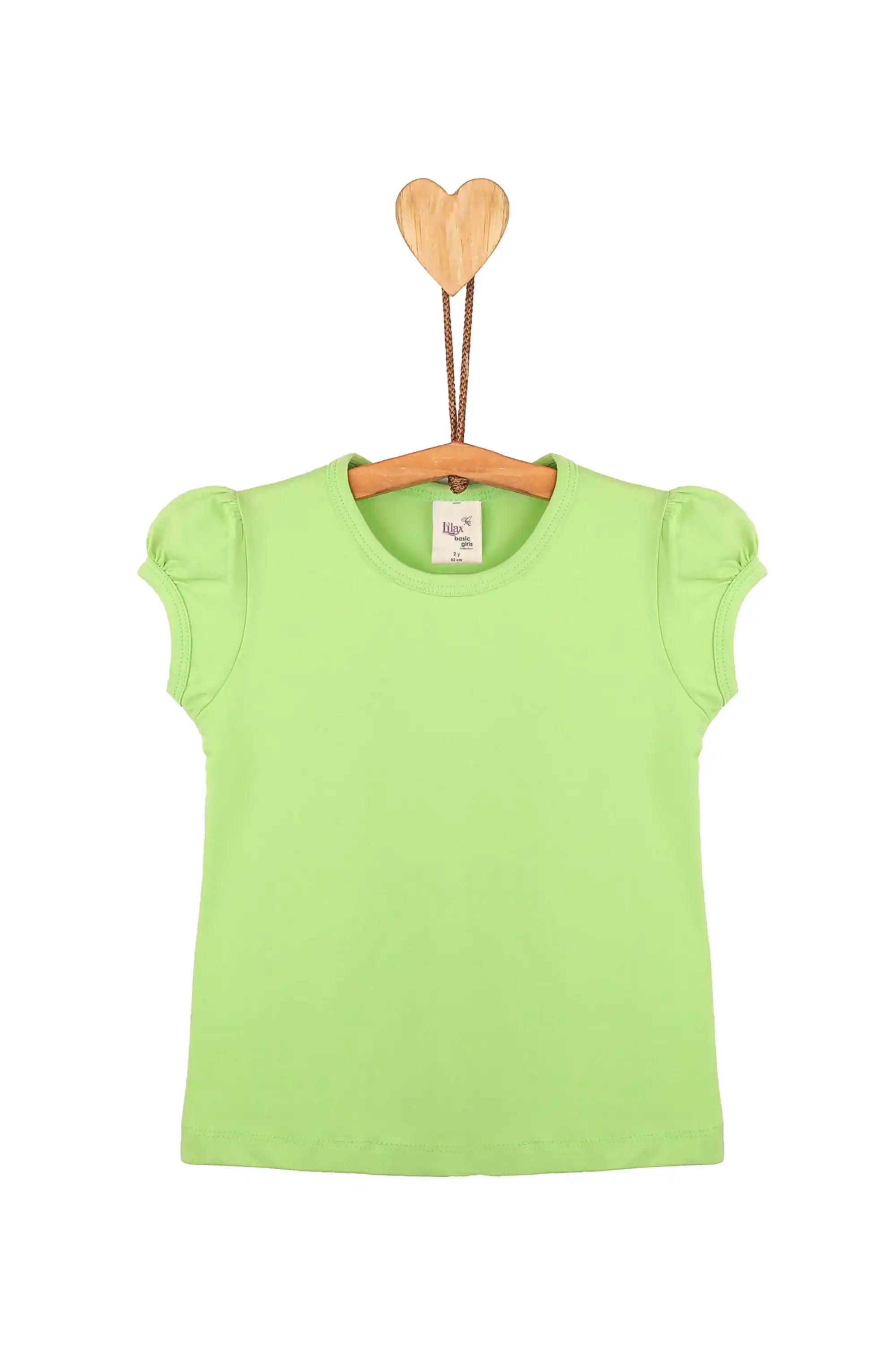 Girls' Basic Short Puff Sleeve Round Neck Cotton T-Shirt