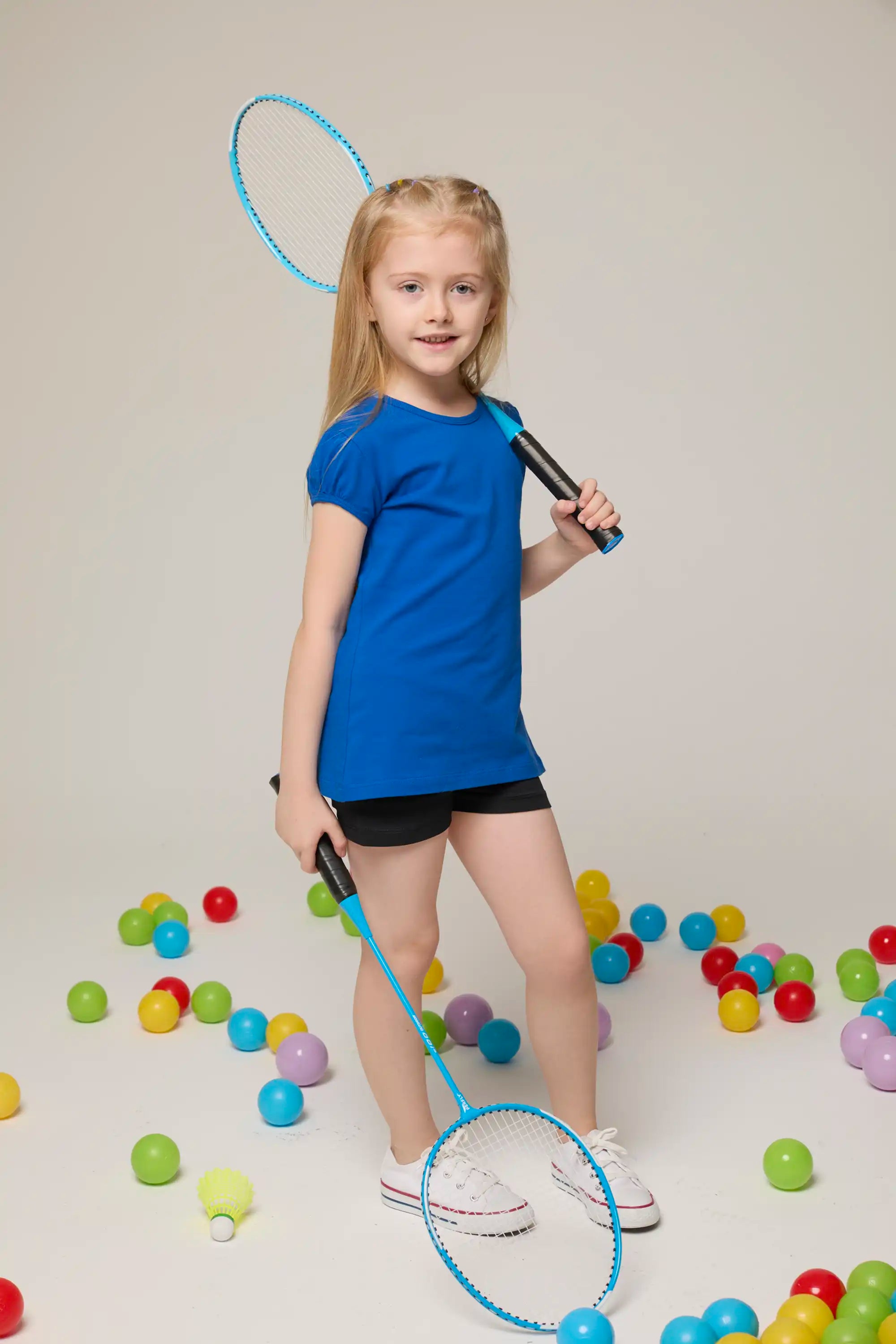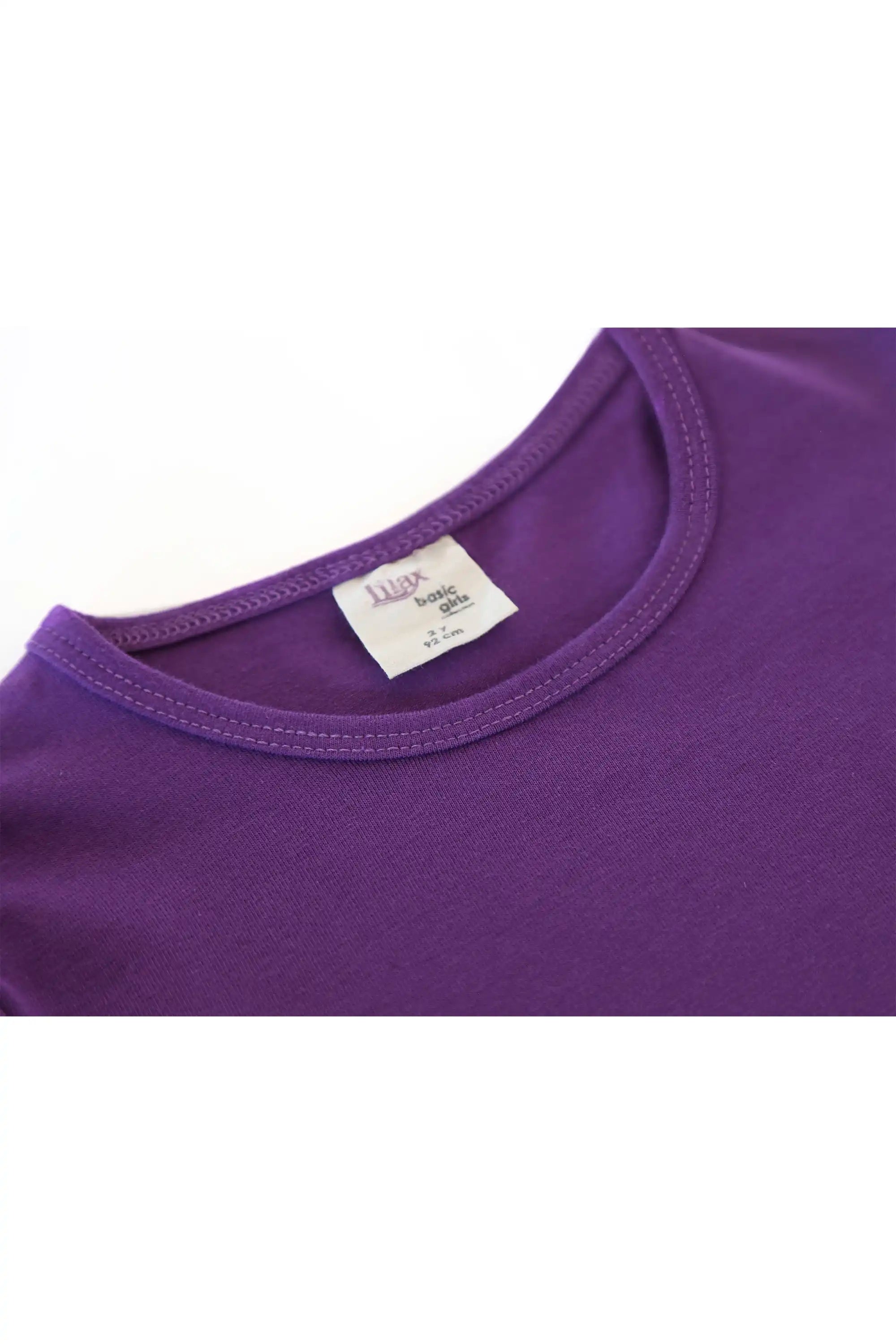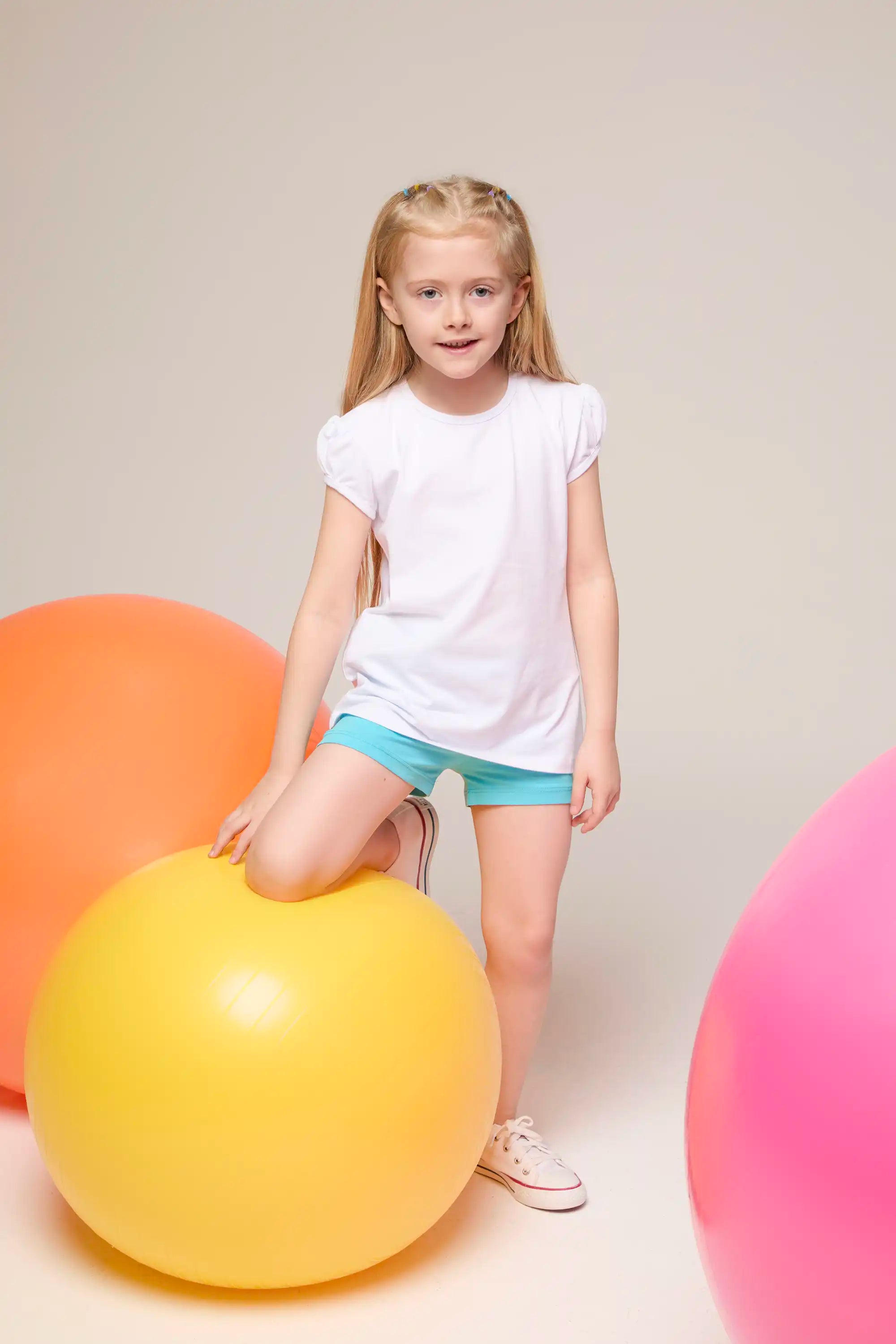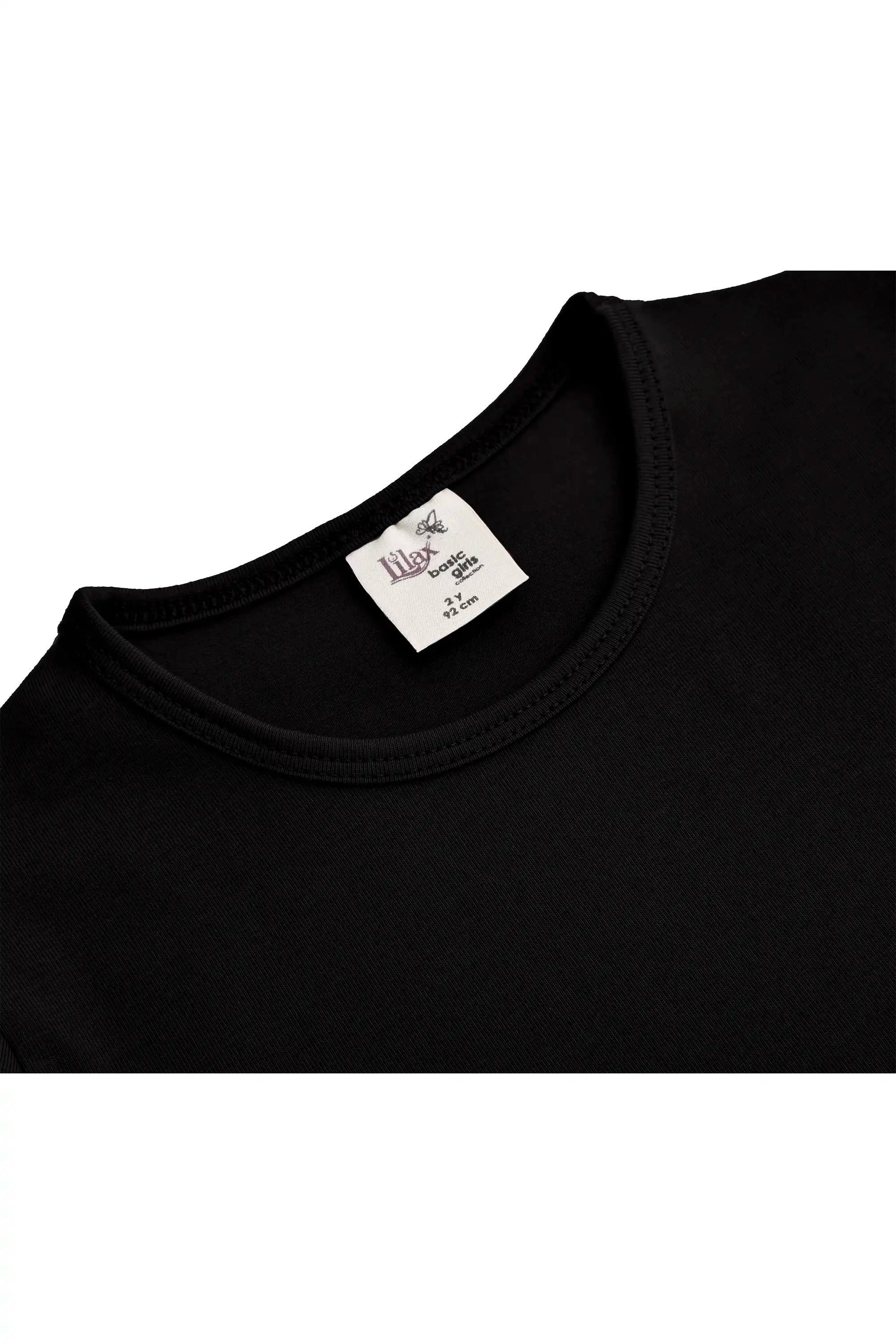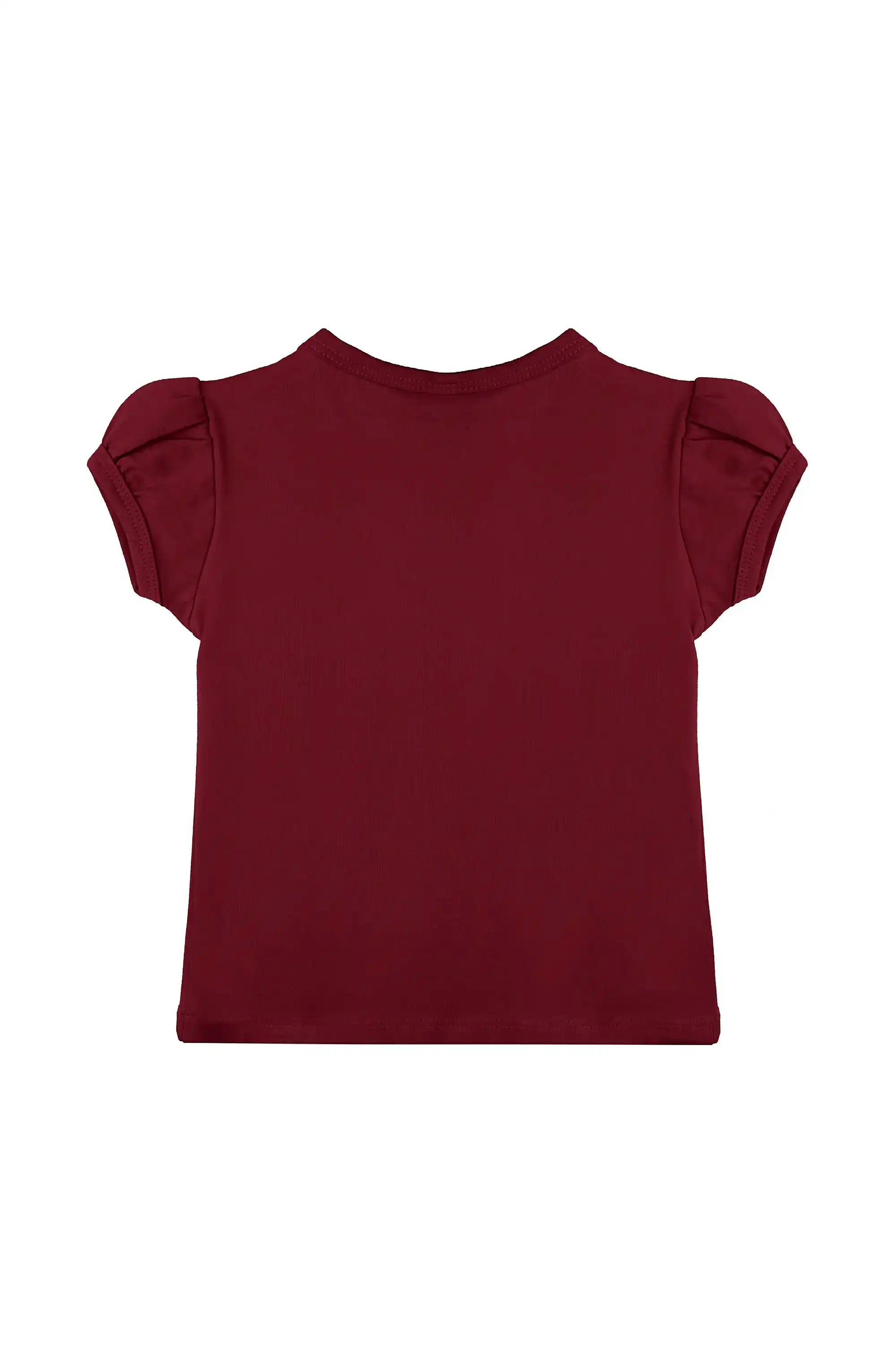 Girls' Basic Short Puff Sleeve Round Neck Cotton T-Shirt