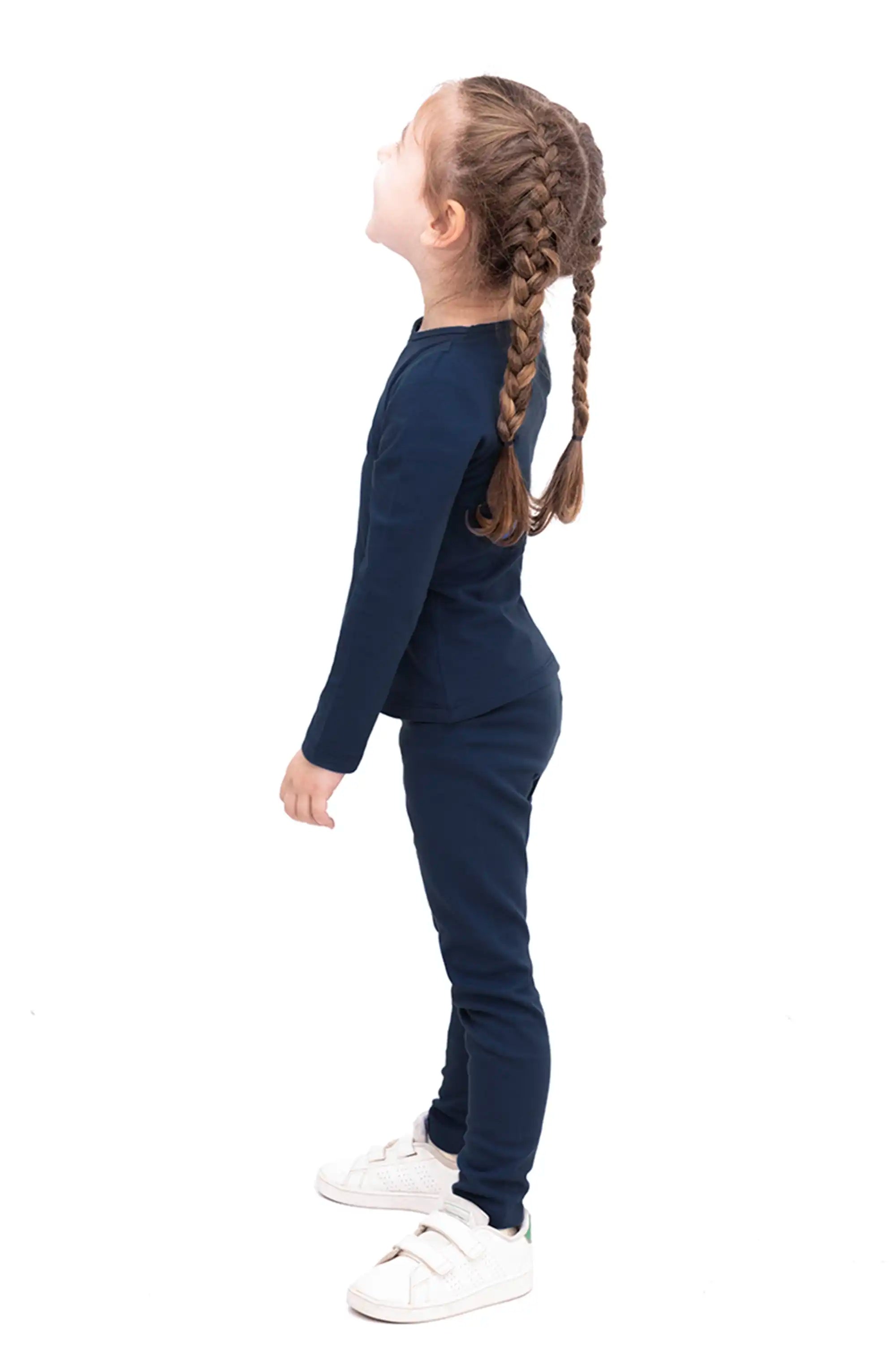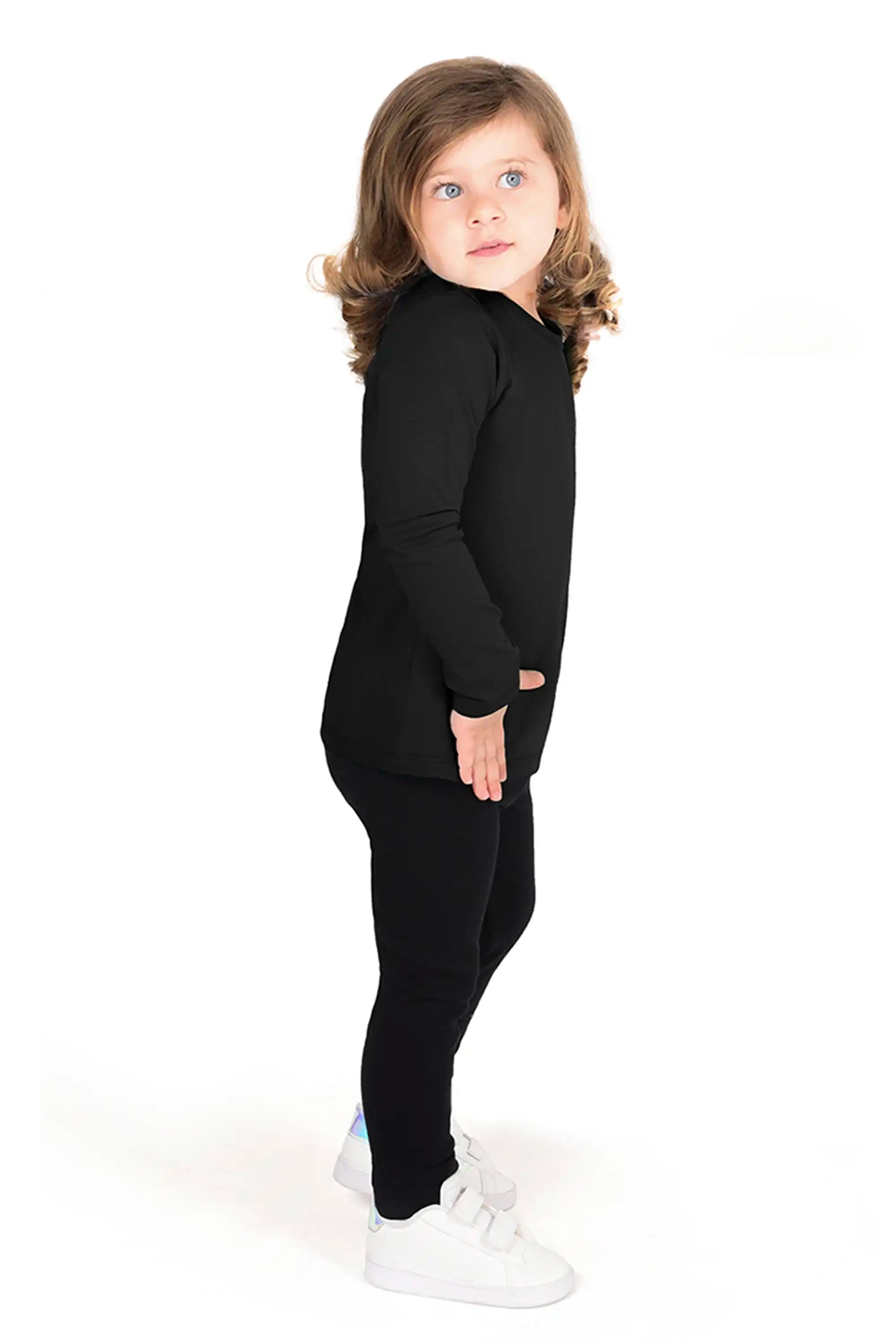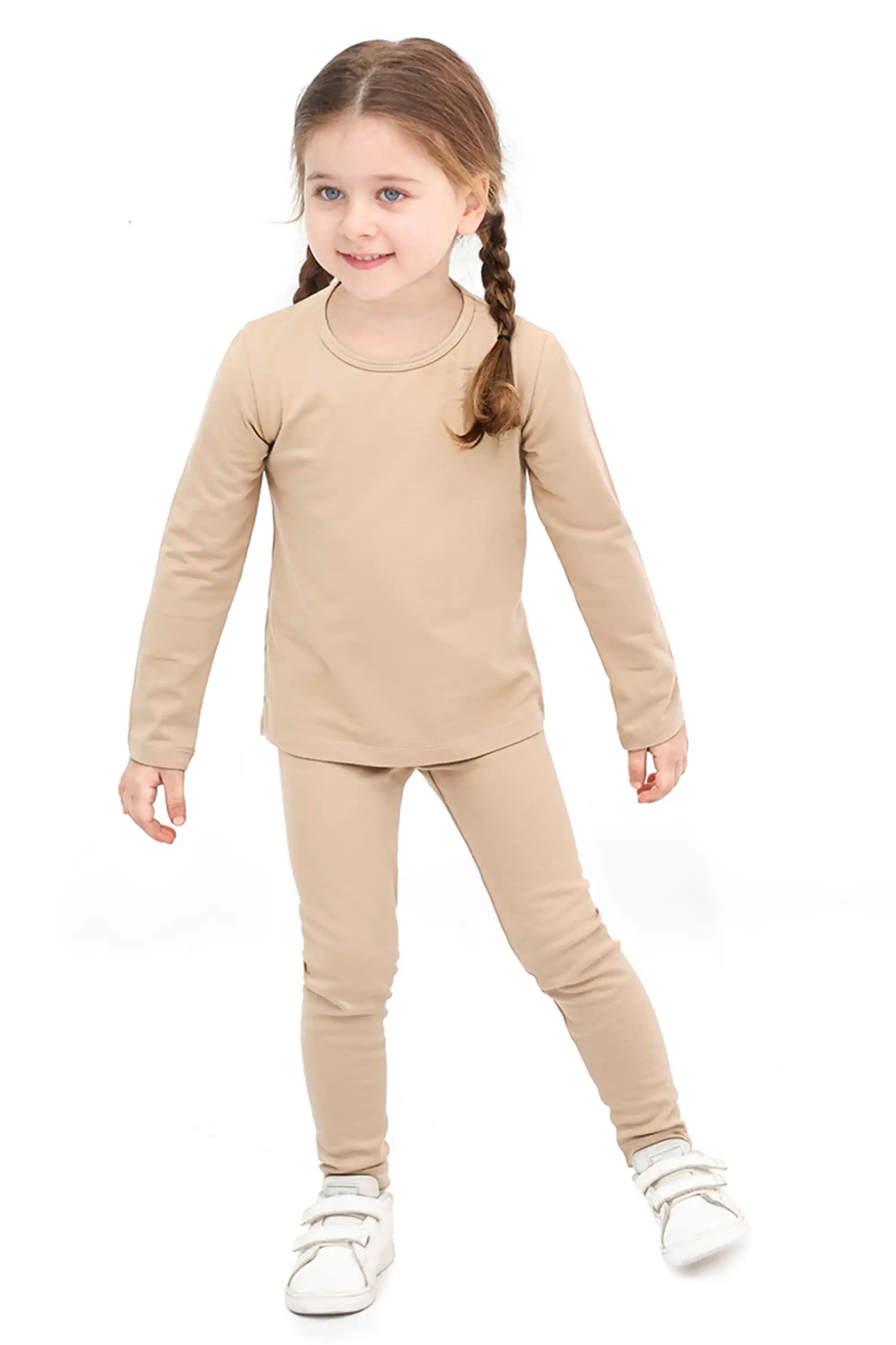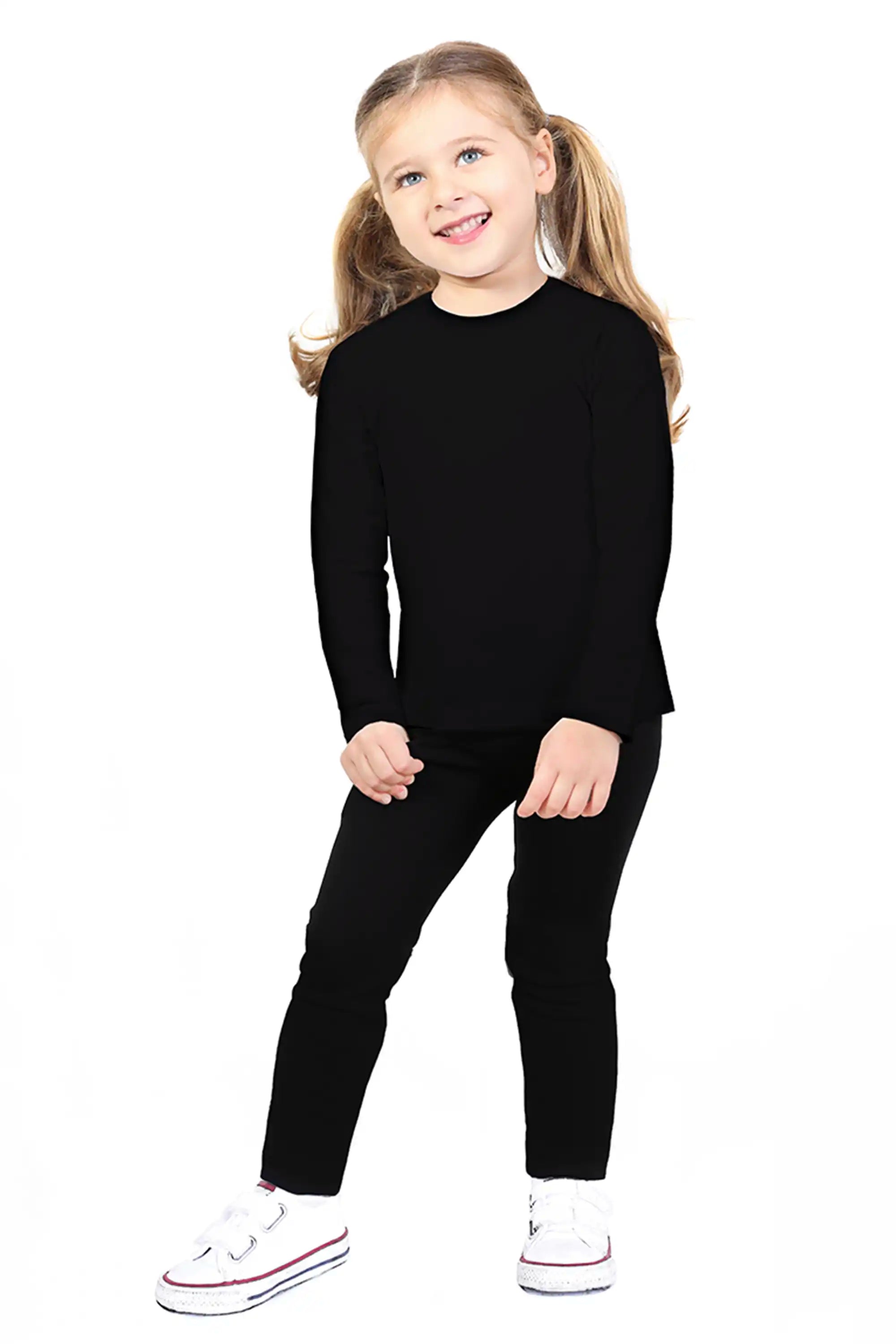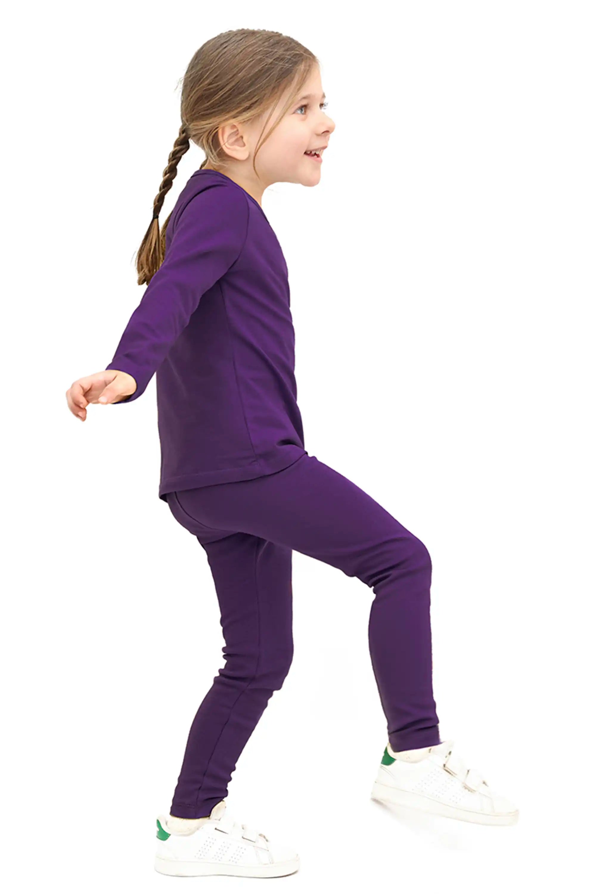2-piece girls’ outfit set including a soft long-sleeve basic shirt and matching leggings.