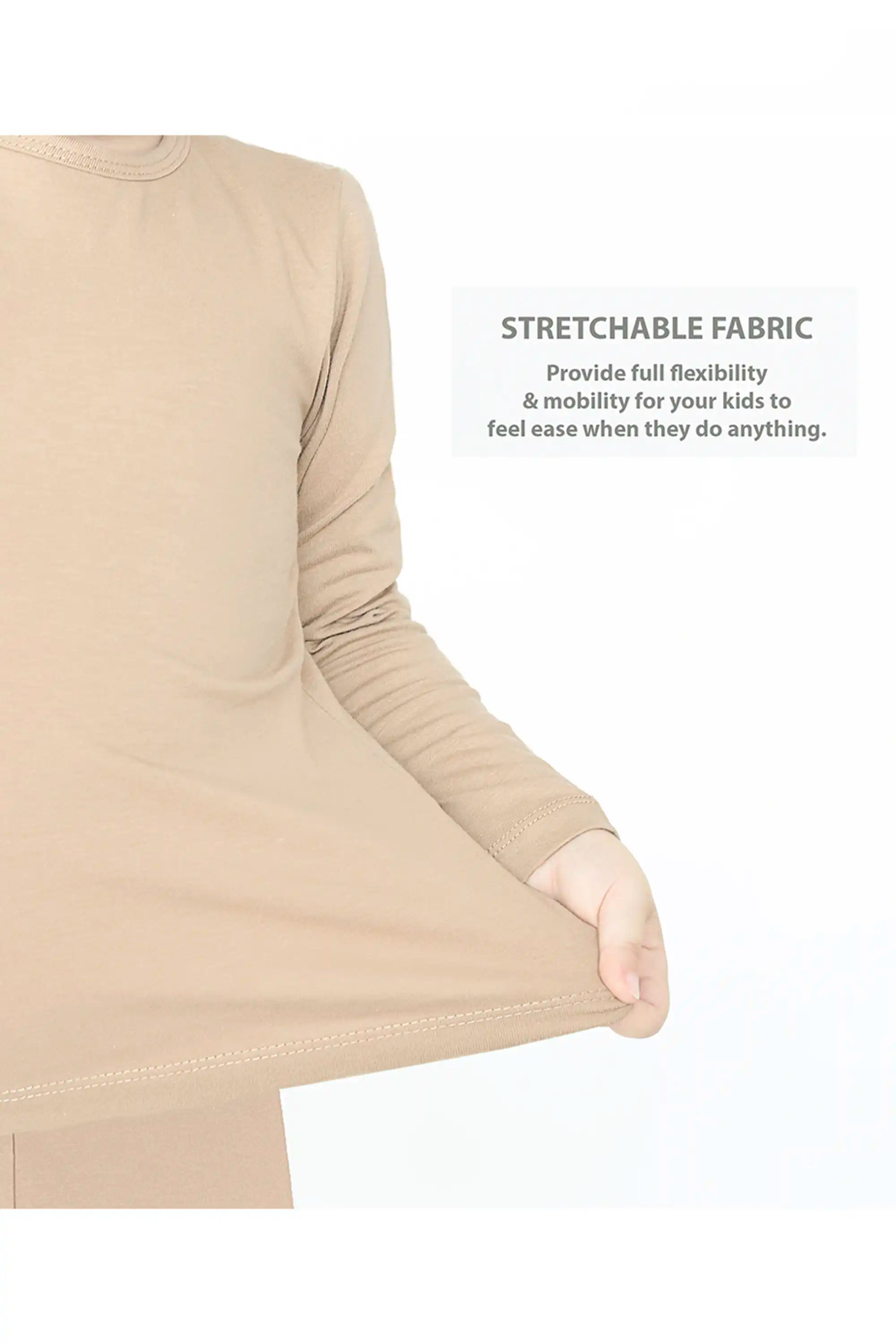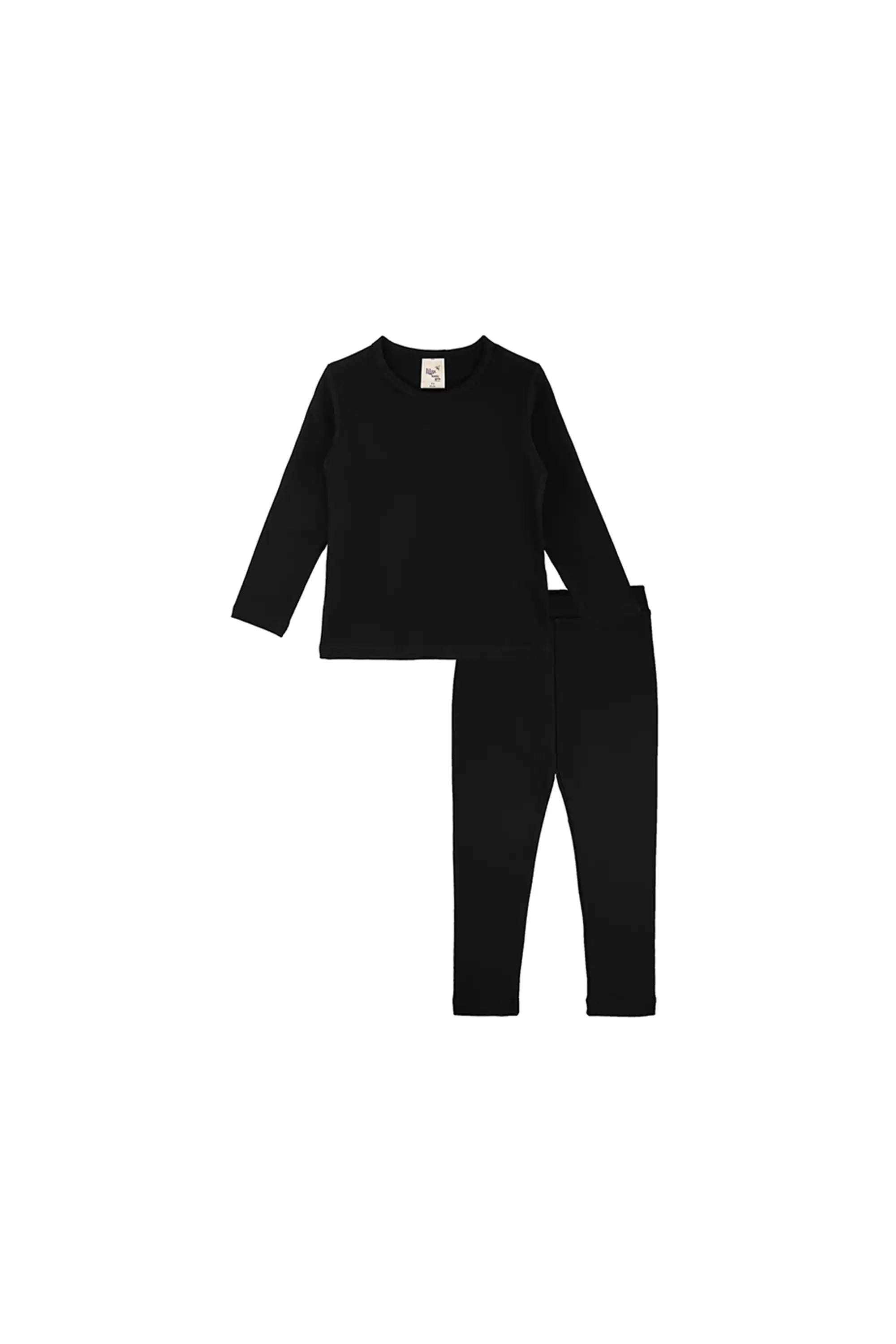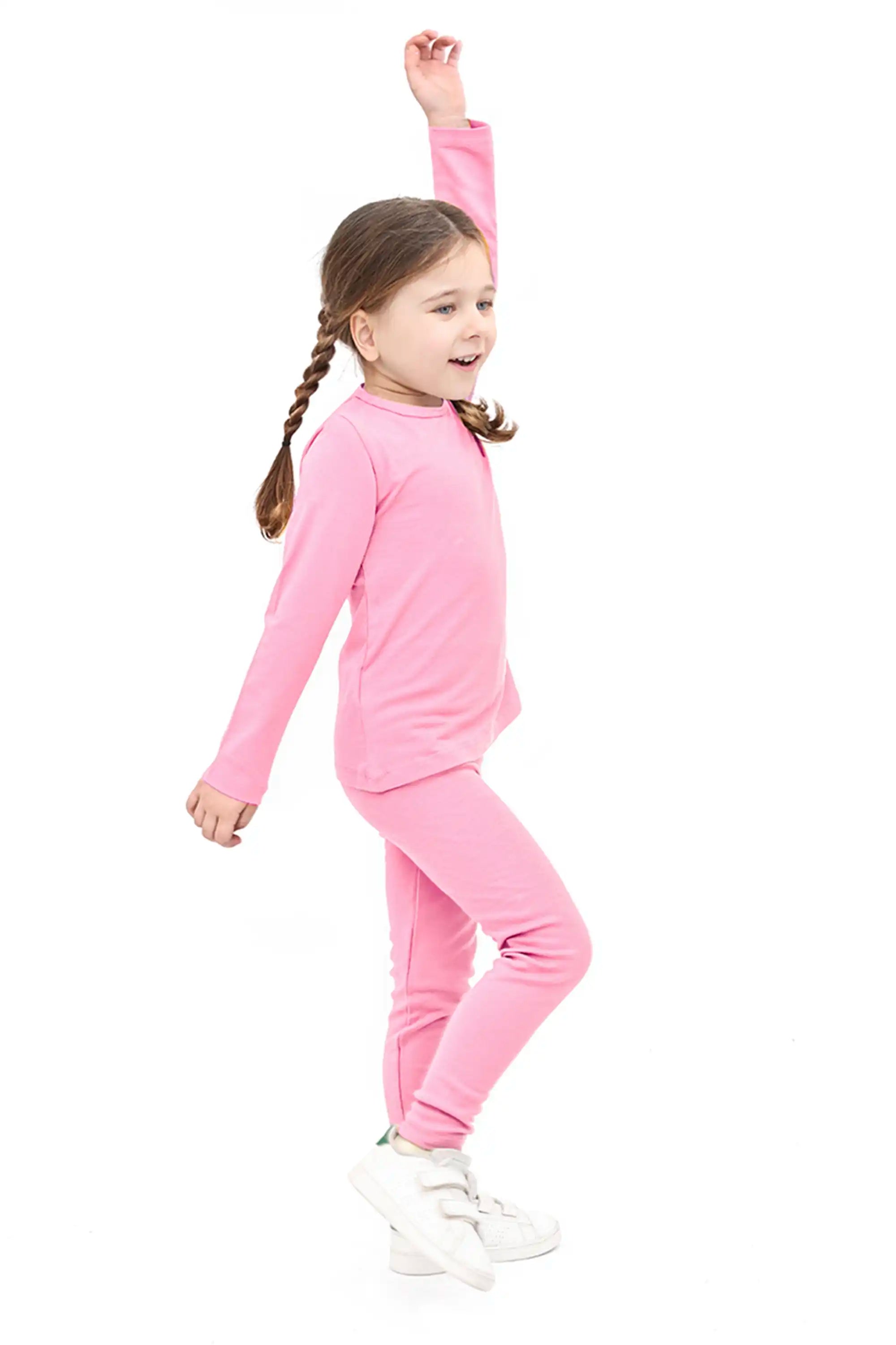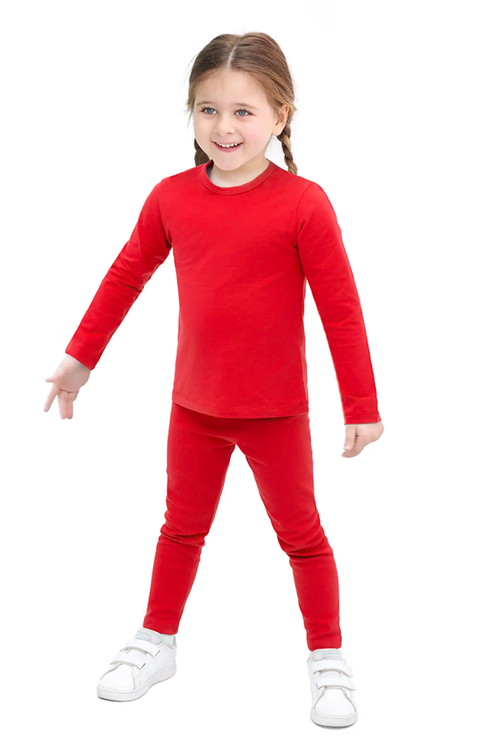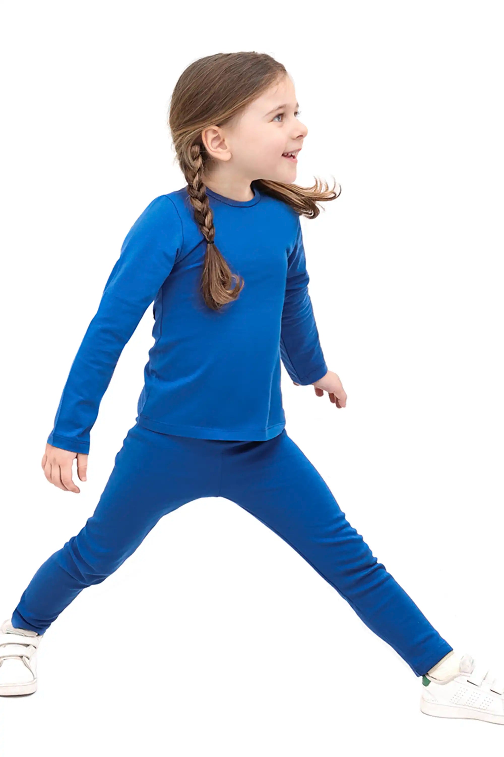 2-piece girls’ outfit set including a soft long-sleeve basic shirt and matching leggings.