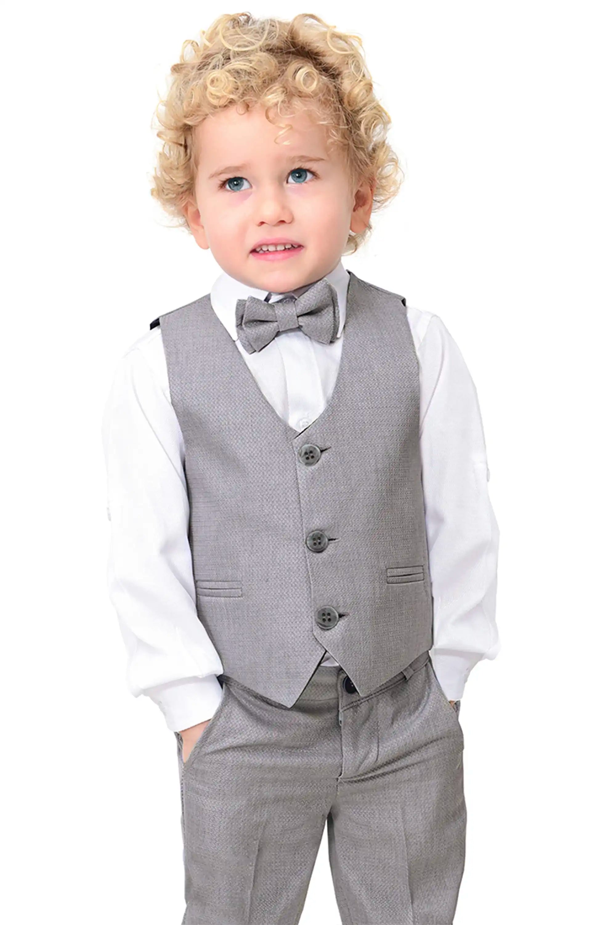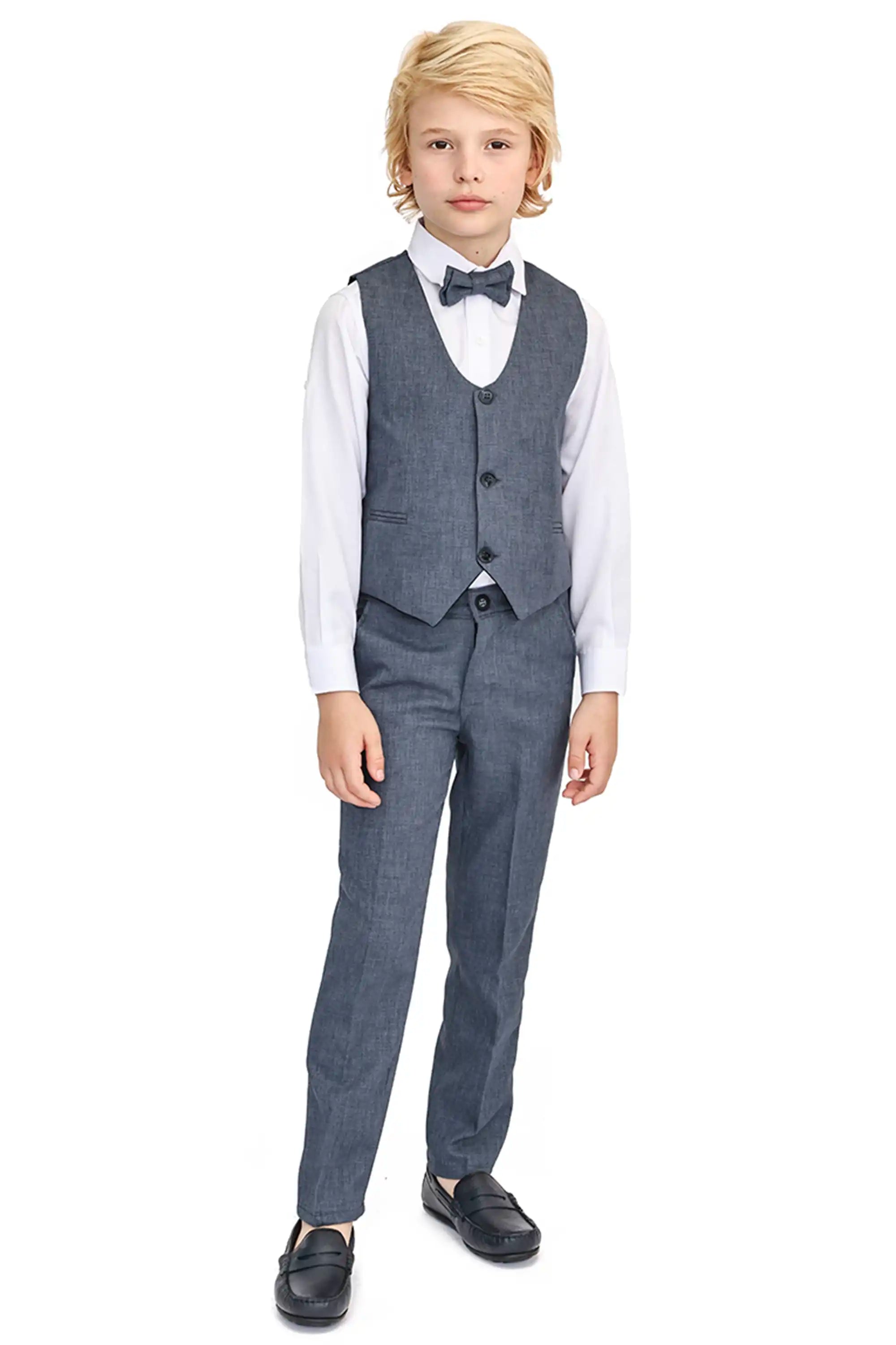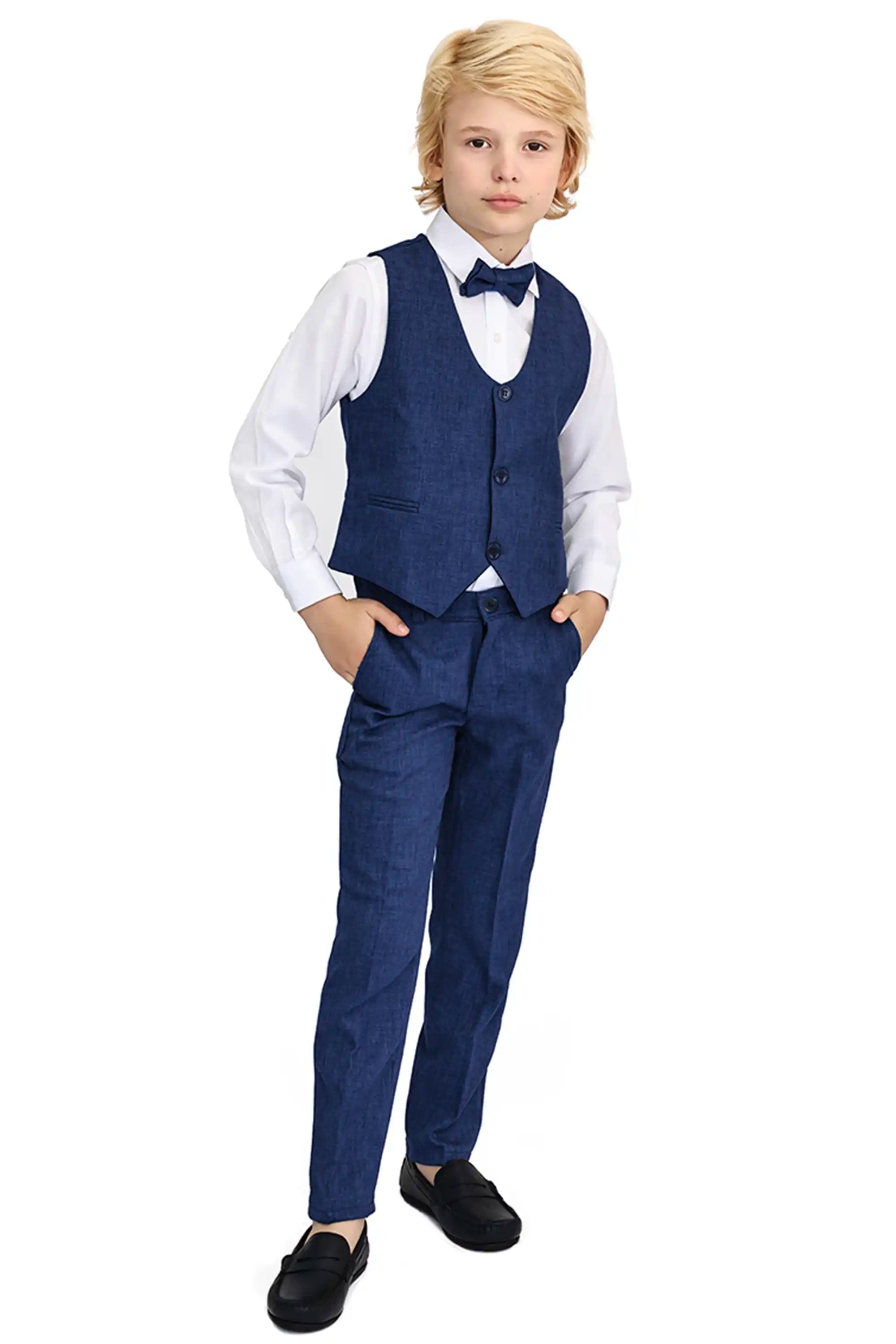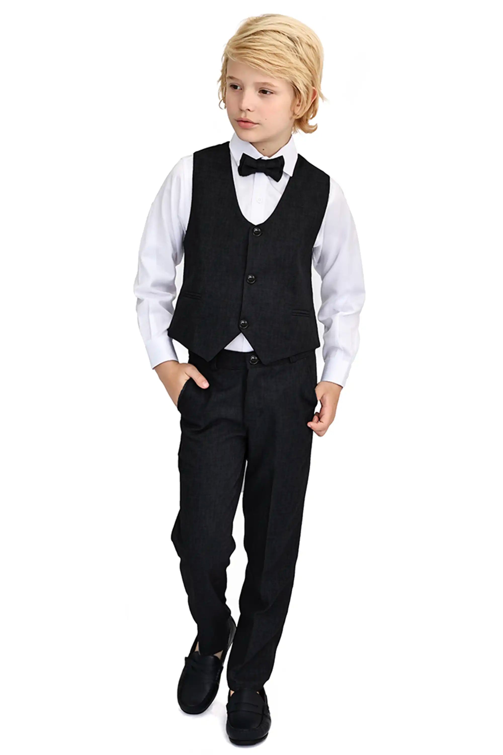 Boys Formal Suit 4 Piece Vest, Pants and Tie Dresswear Suit Set