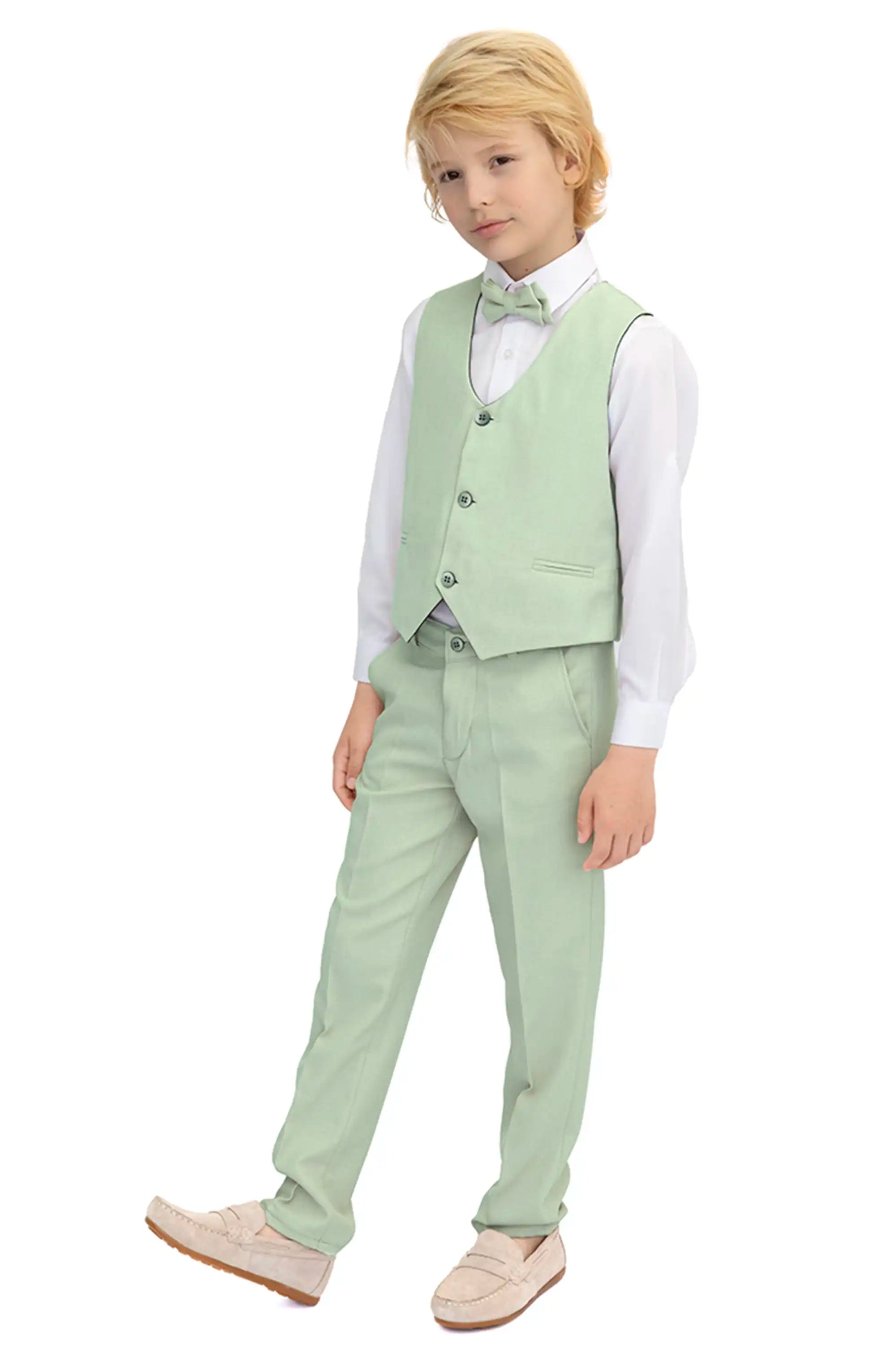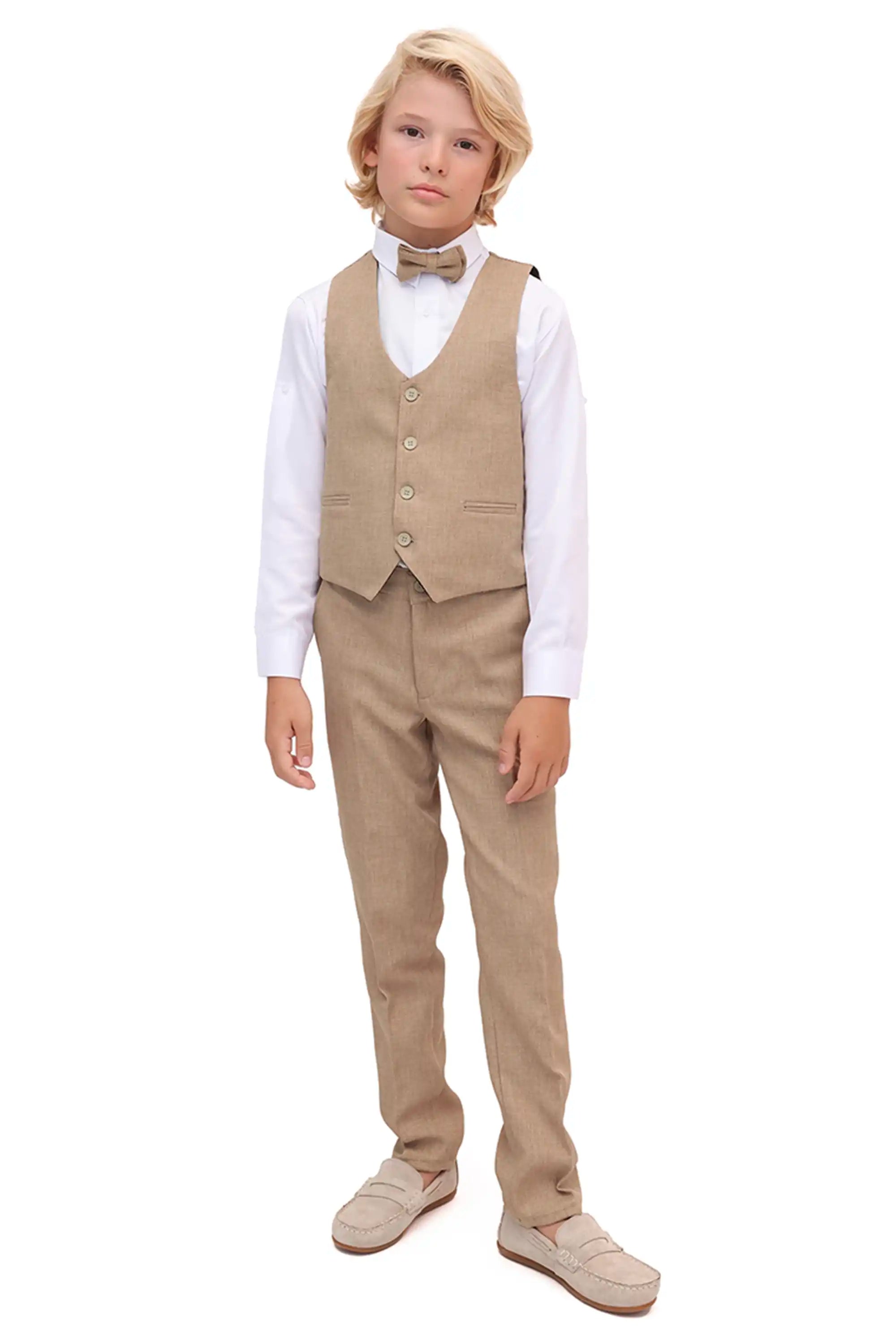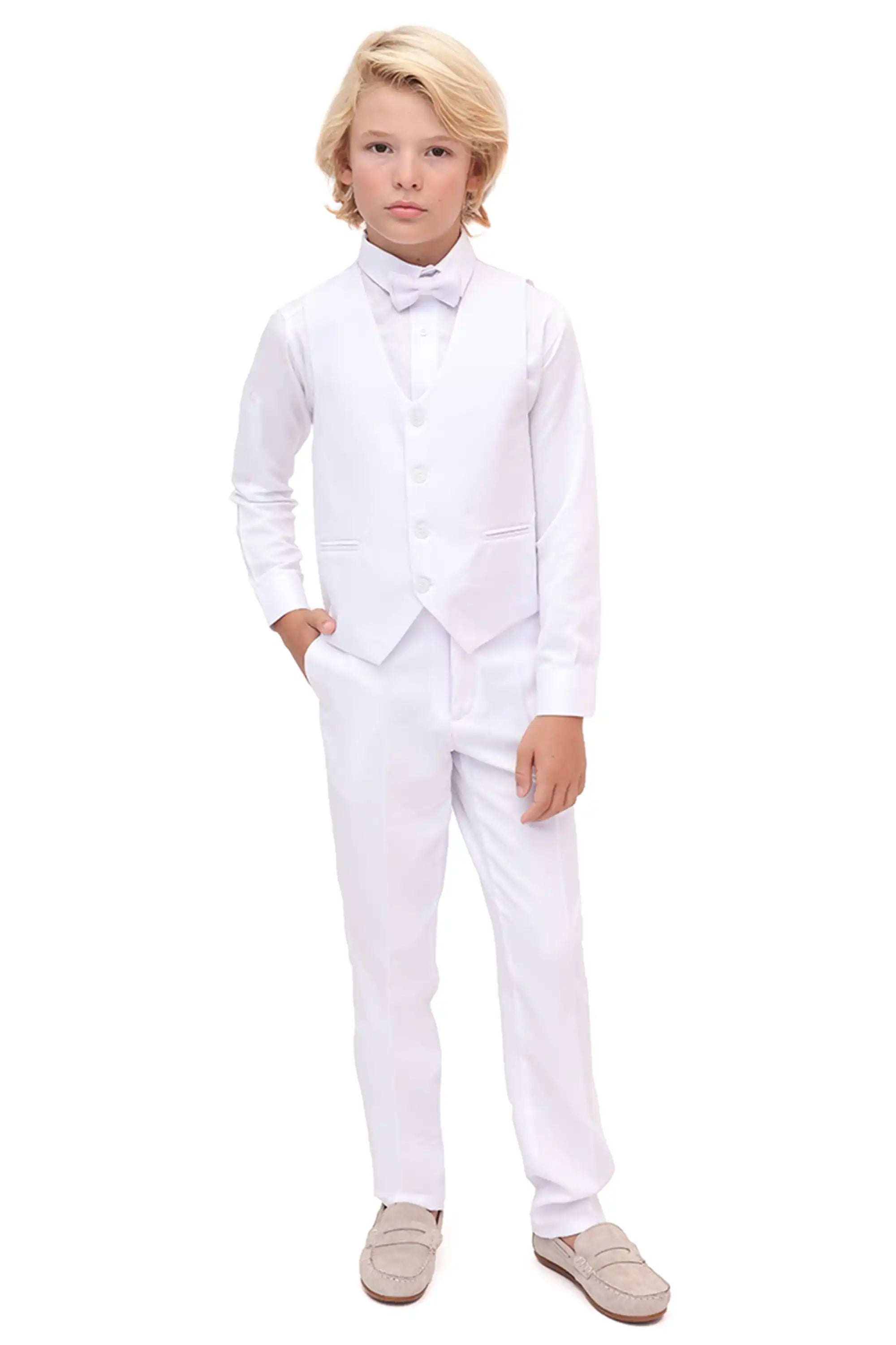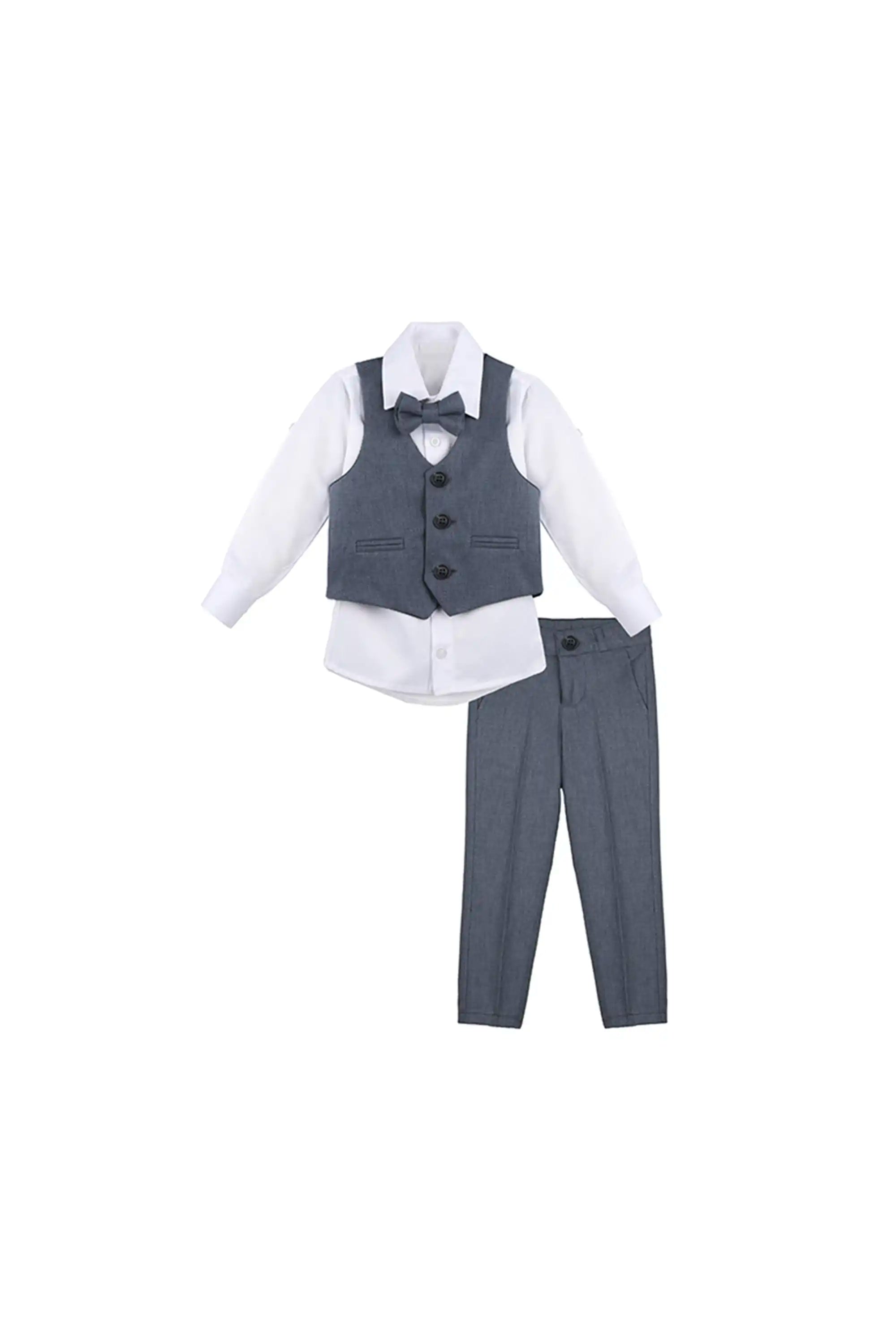 Boys Formal Suit 4 Piece Vest, Pants and Tie Dresswear Suit Set