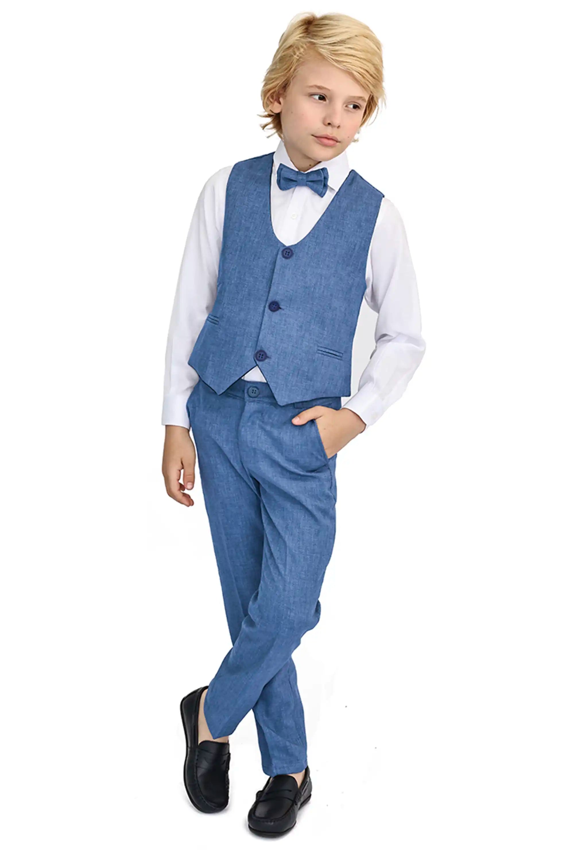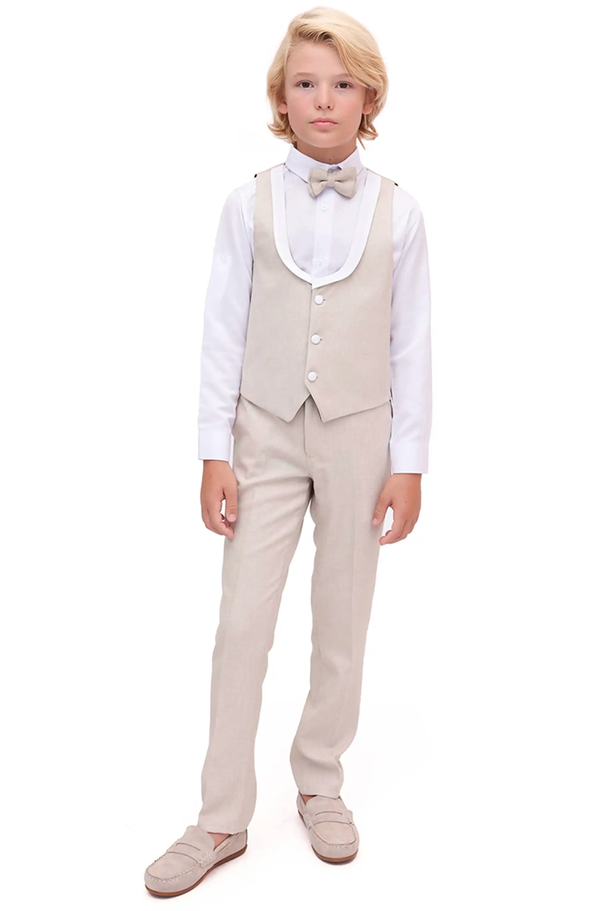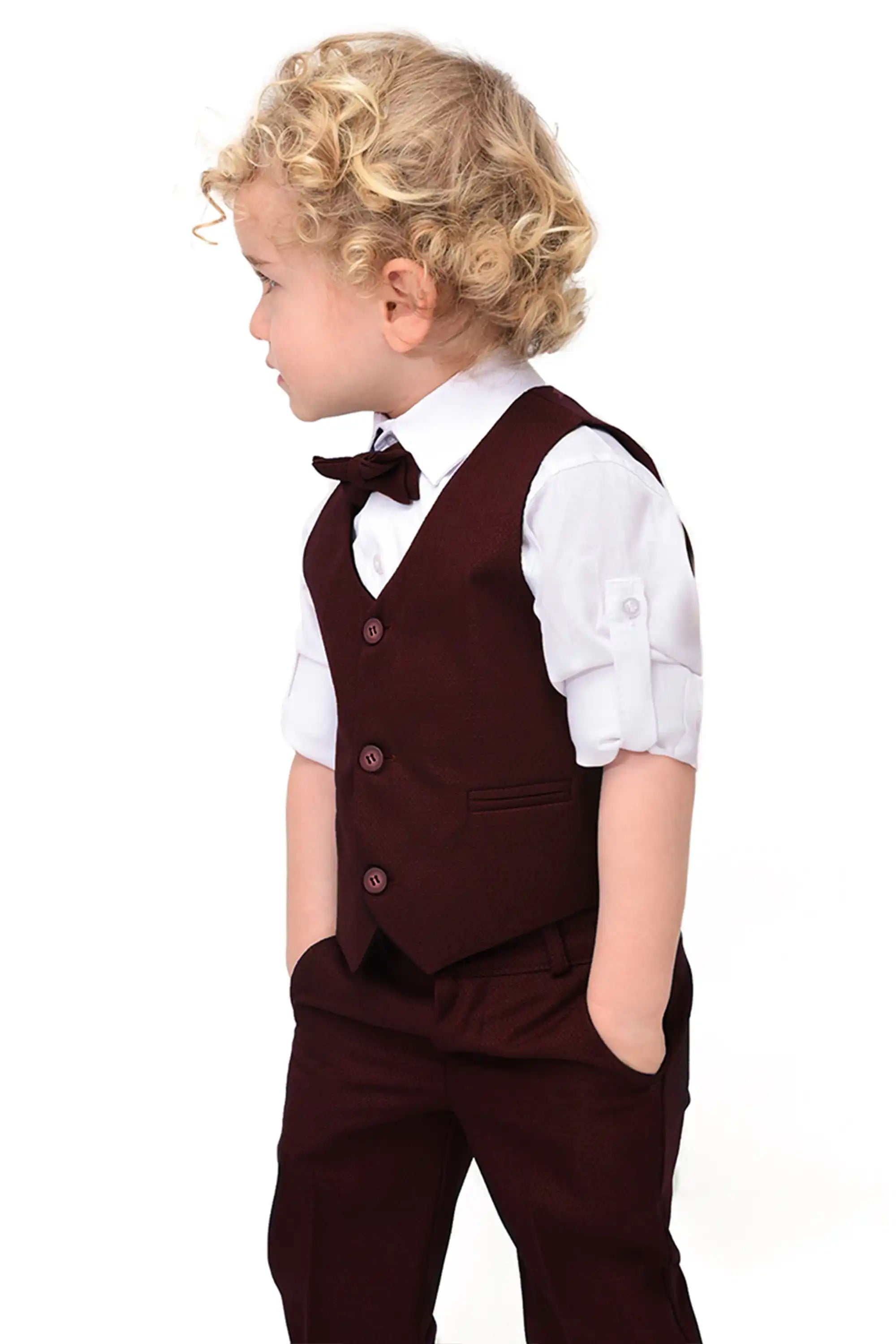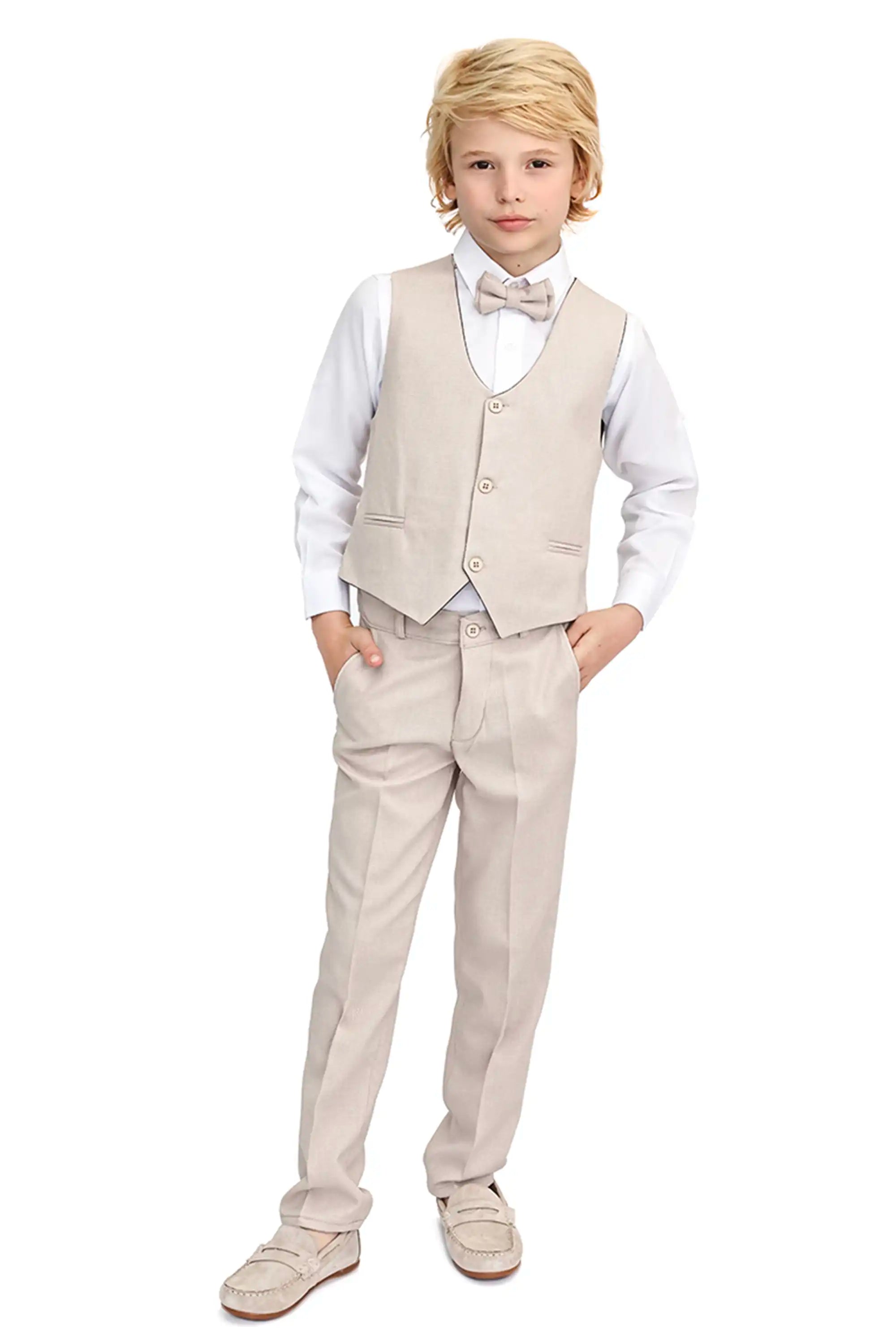 Boys Formal Suit 4 Piece Vest, Pants and Tie Dresswear Suit Set