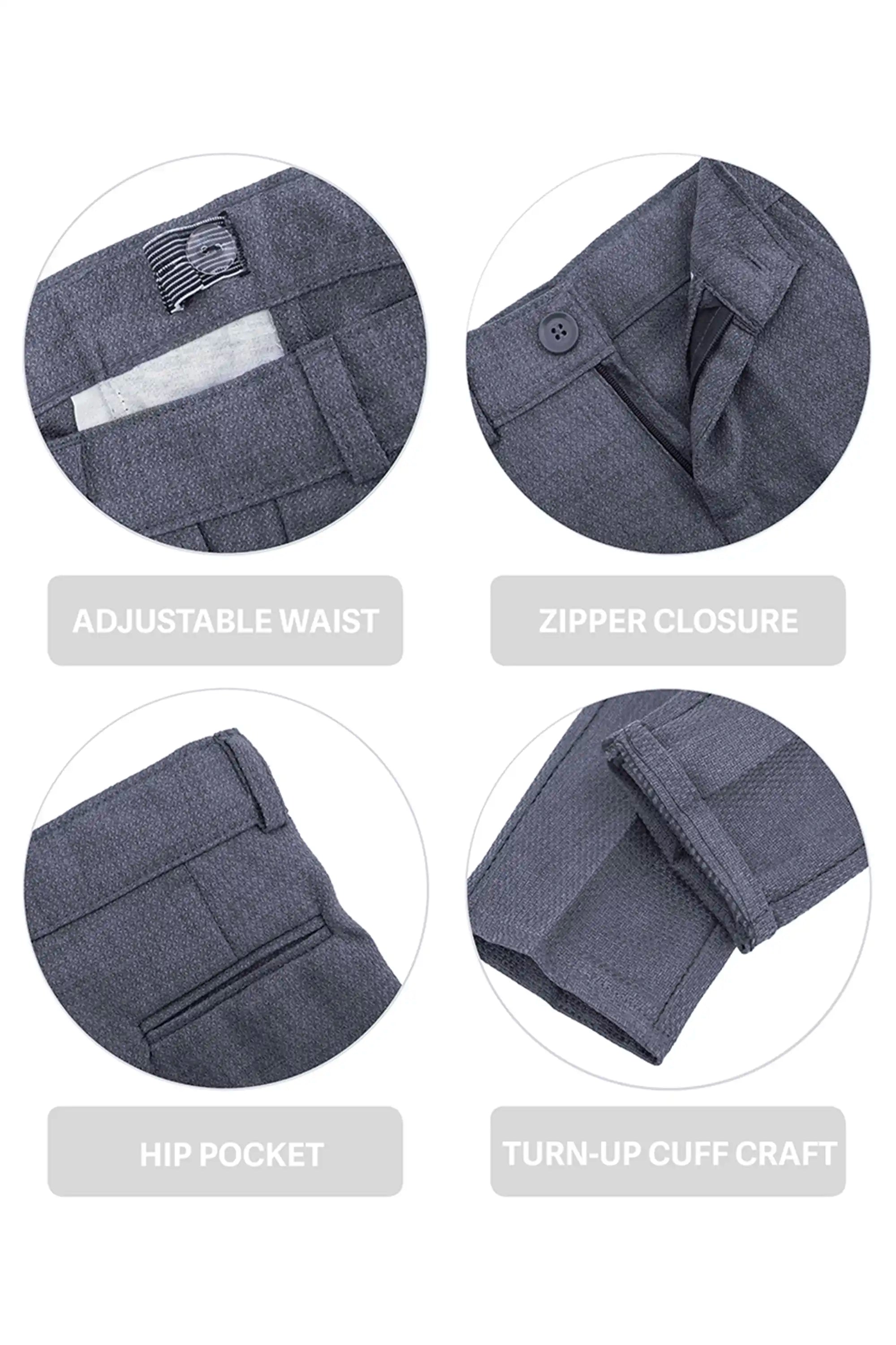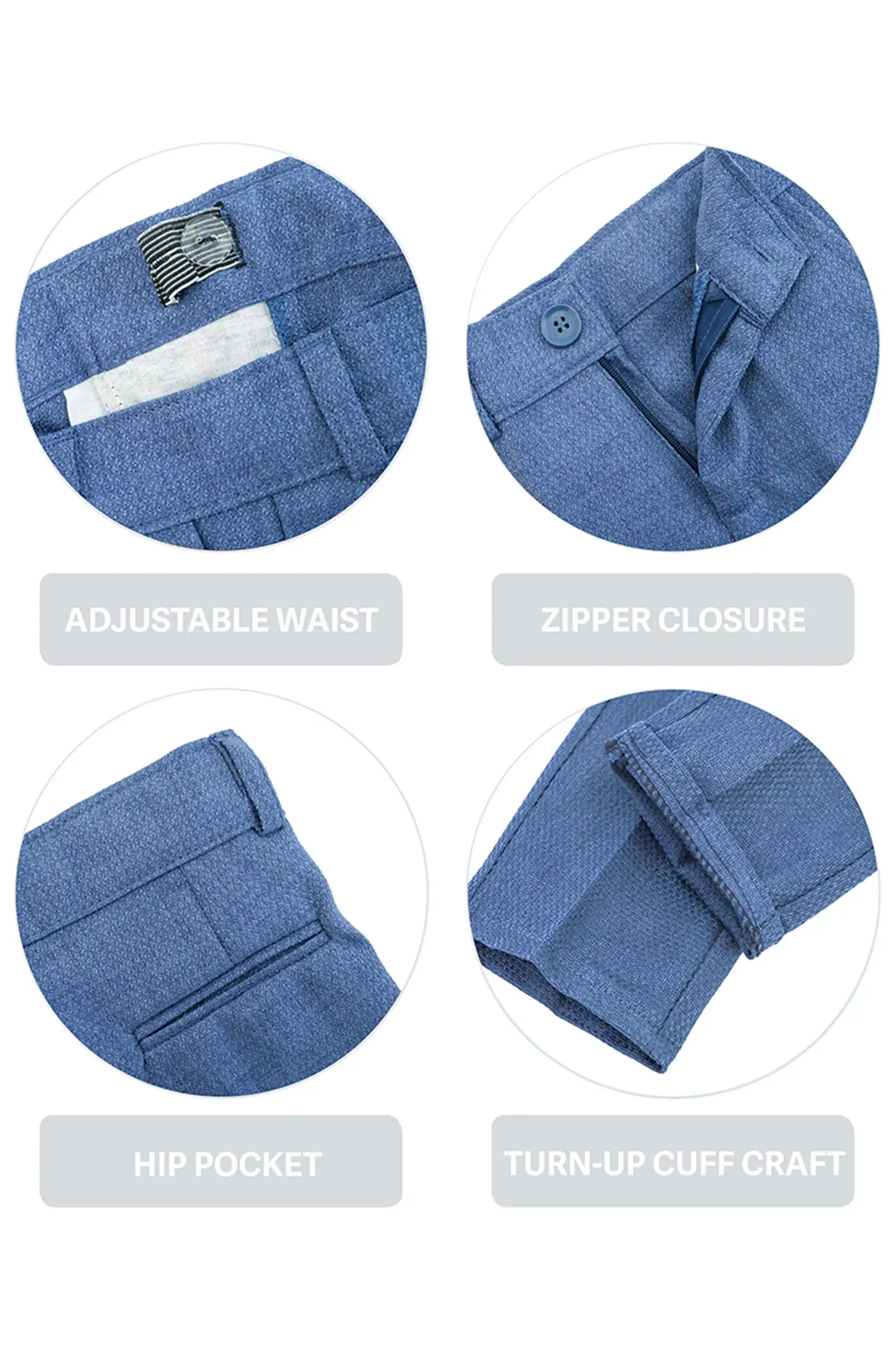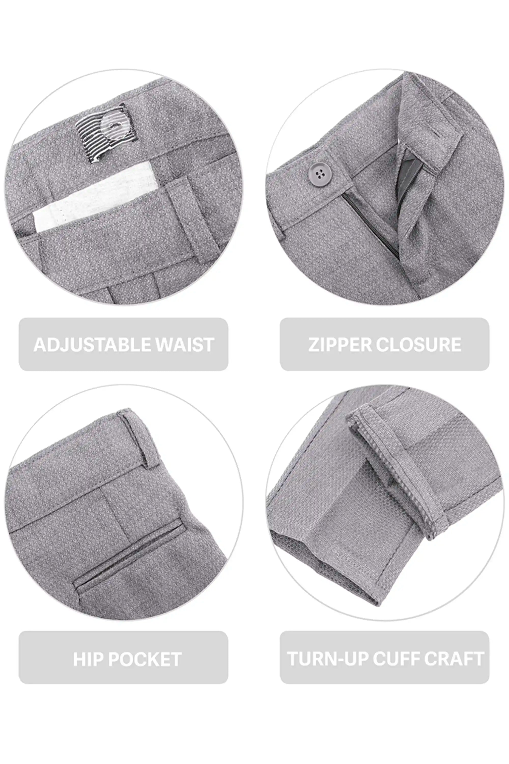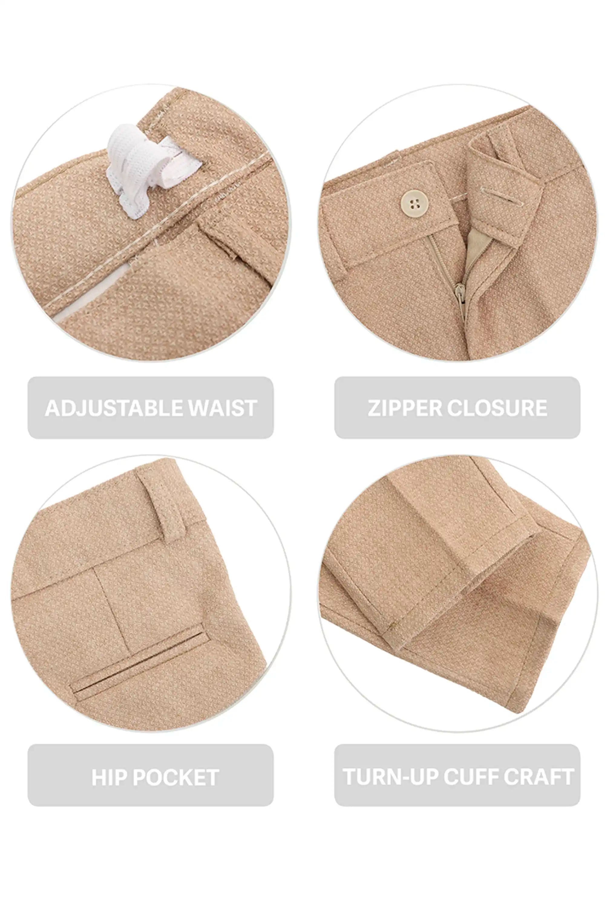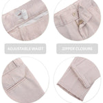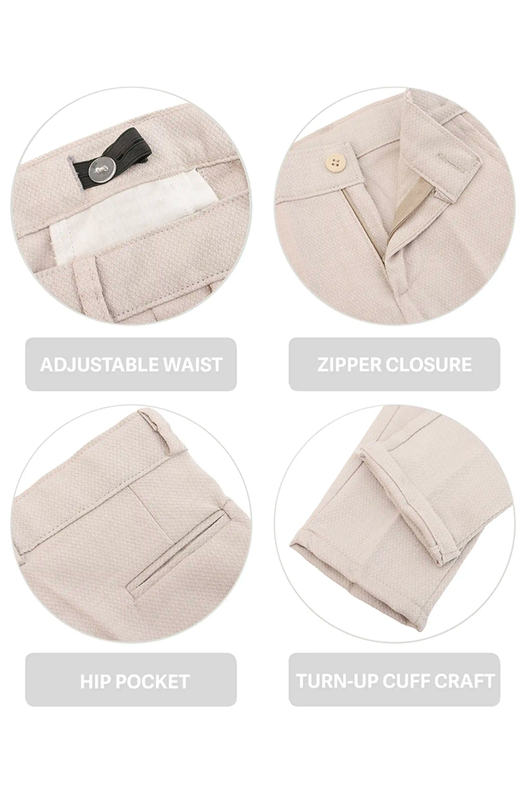 Smart Functional Details: Adjustable waist, zipper closure, hip pocket, and turn-up cuff craft.