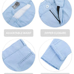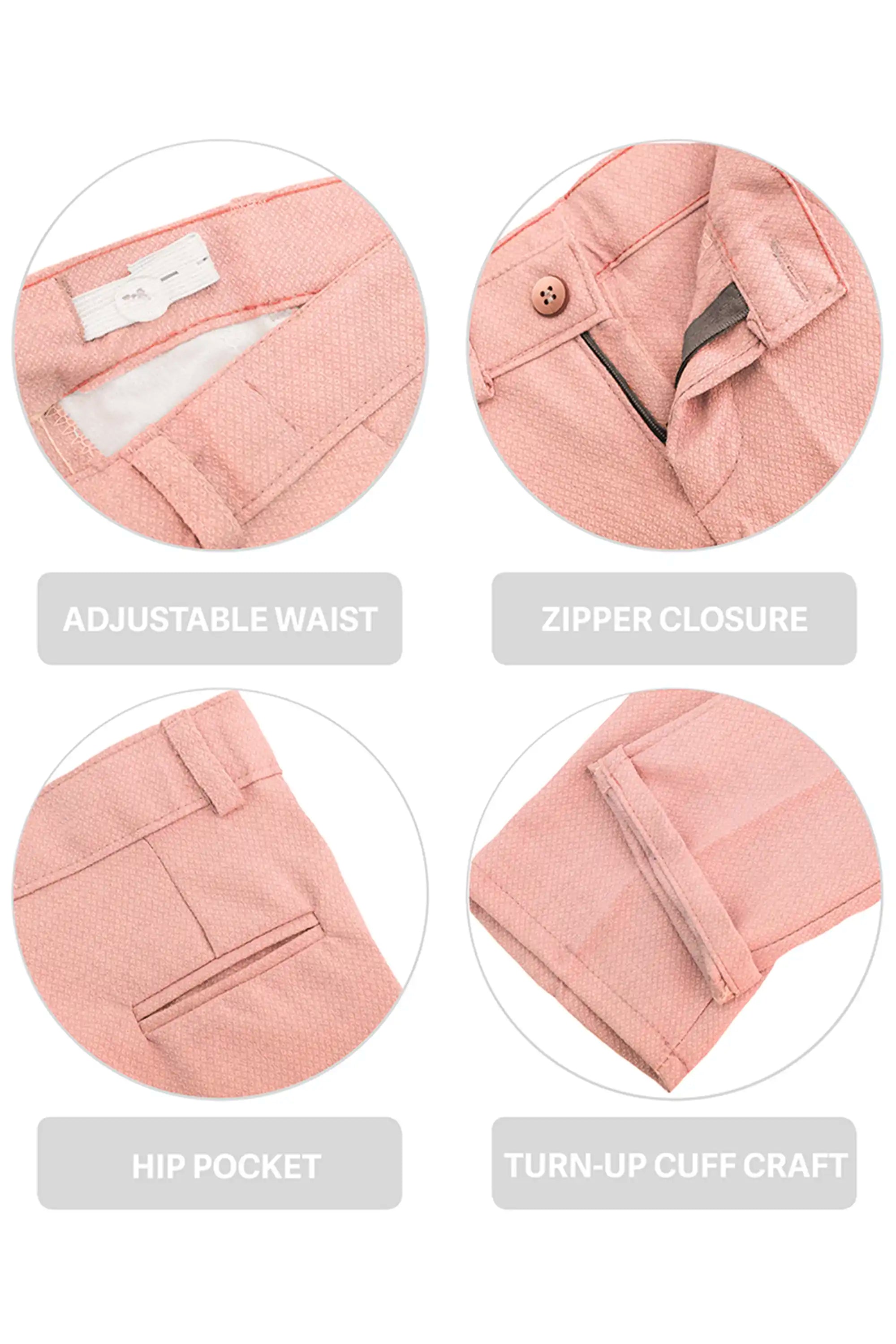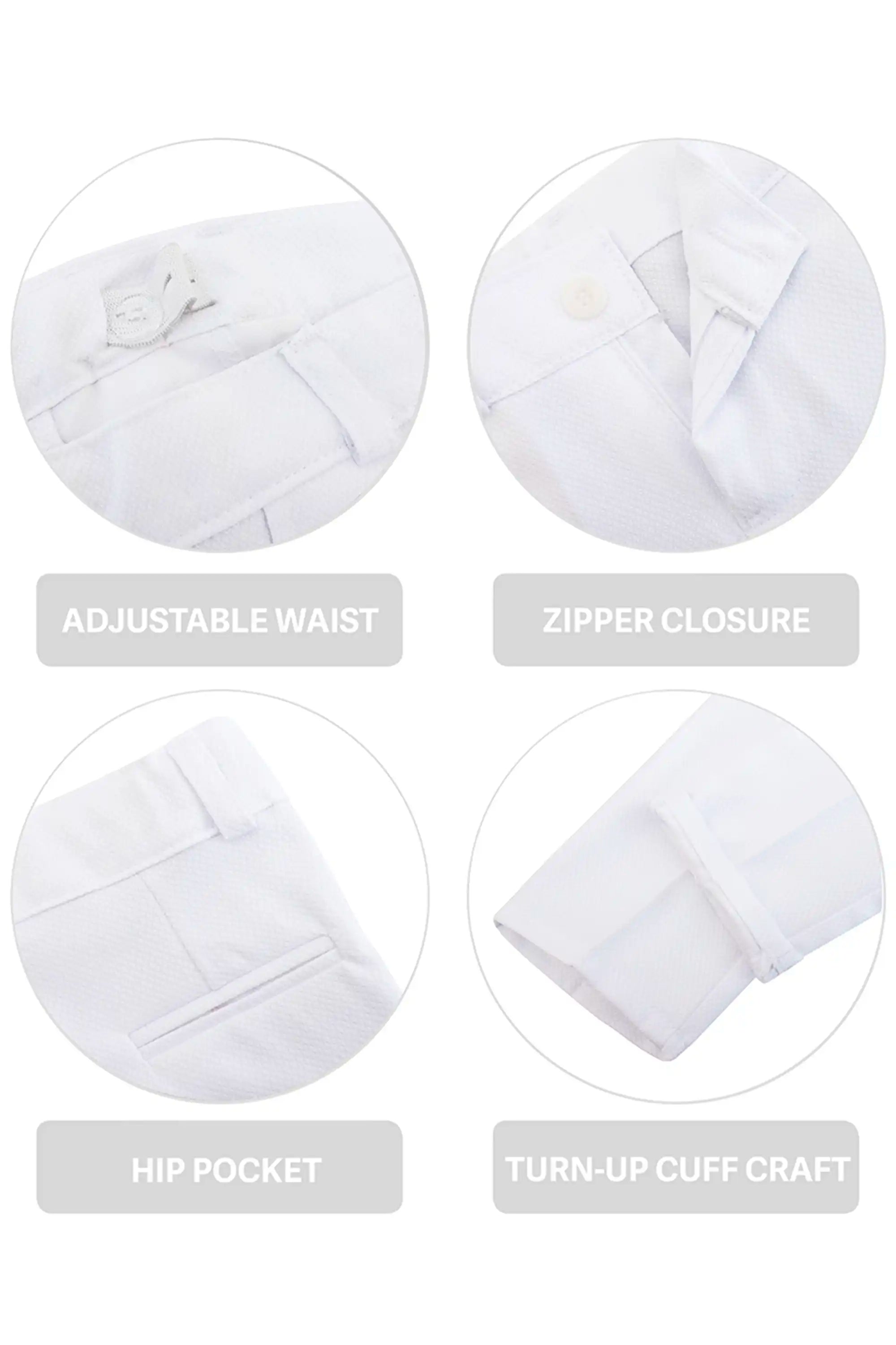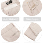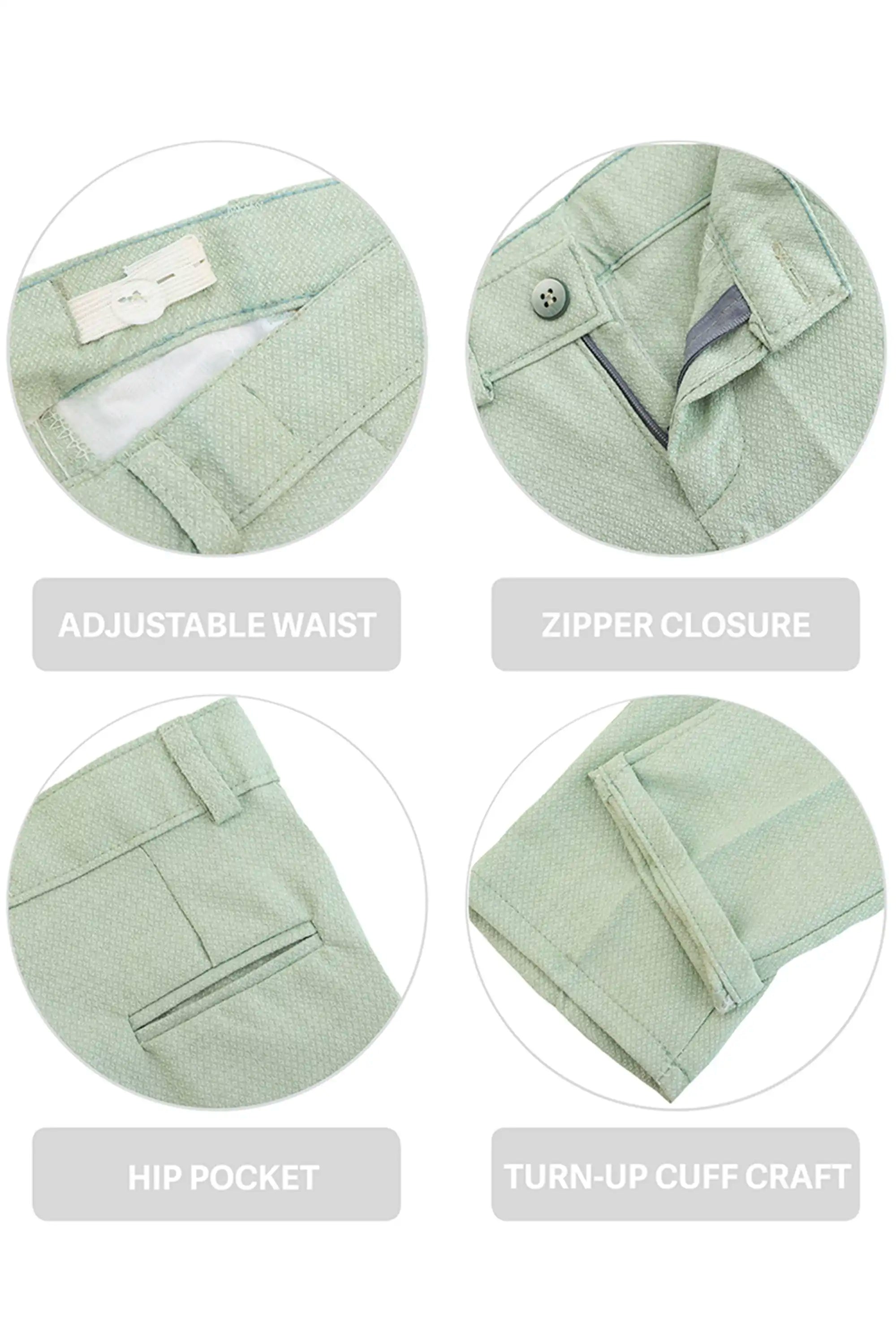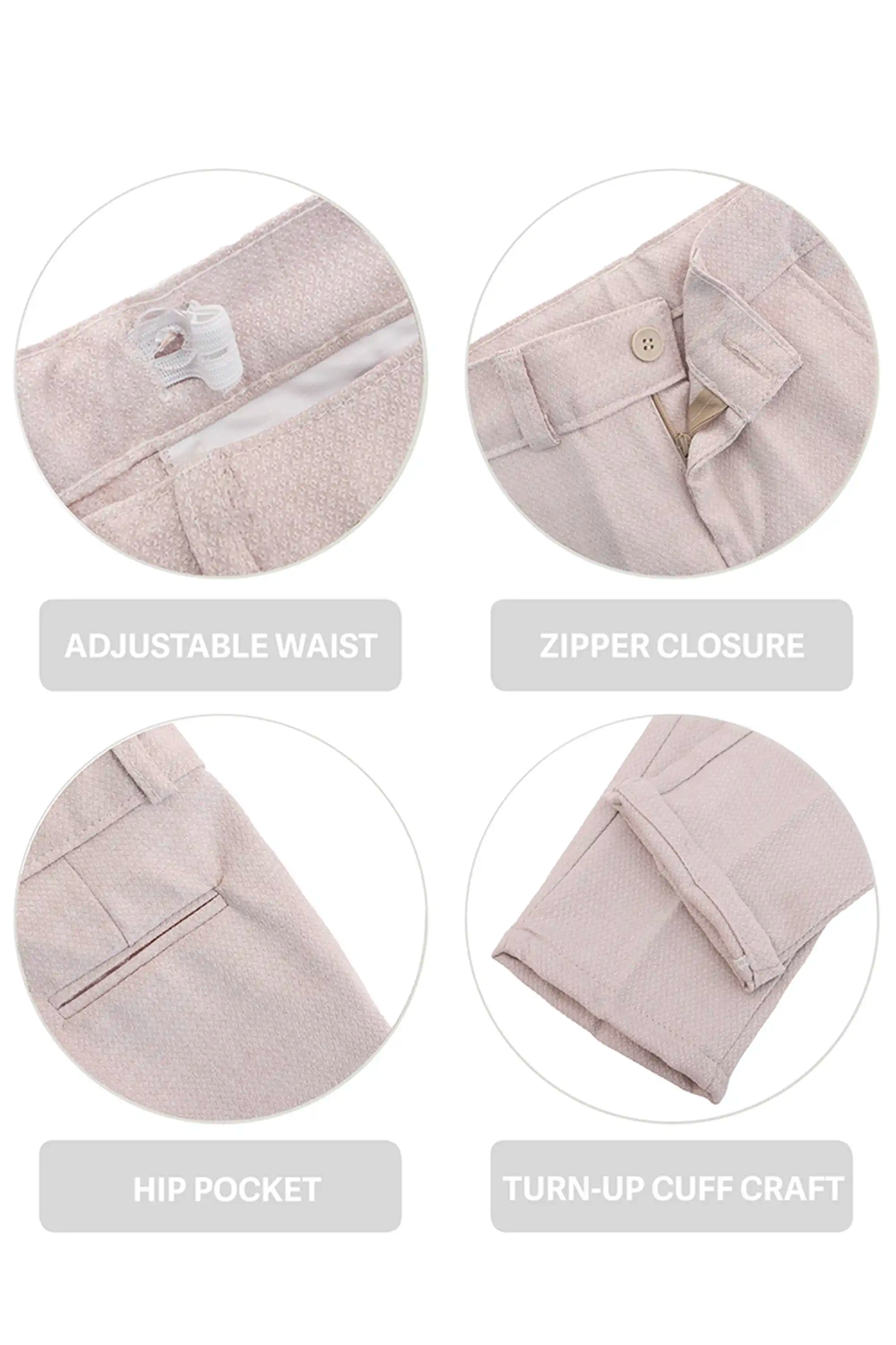 Smart Functional Details: Adjustable waist, zipper closure, hip pocket, and turn-up cuff craft.