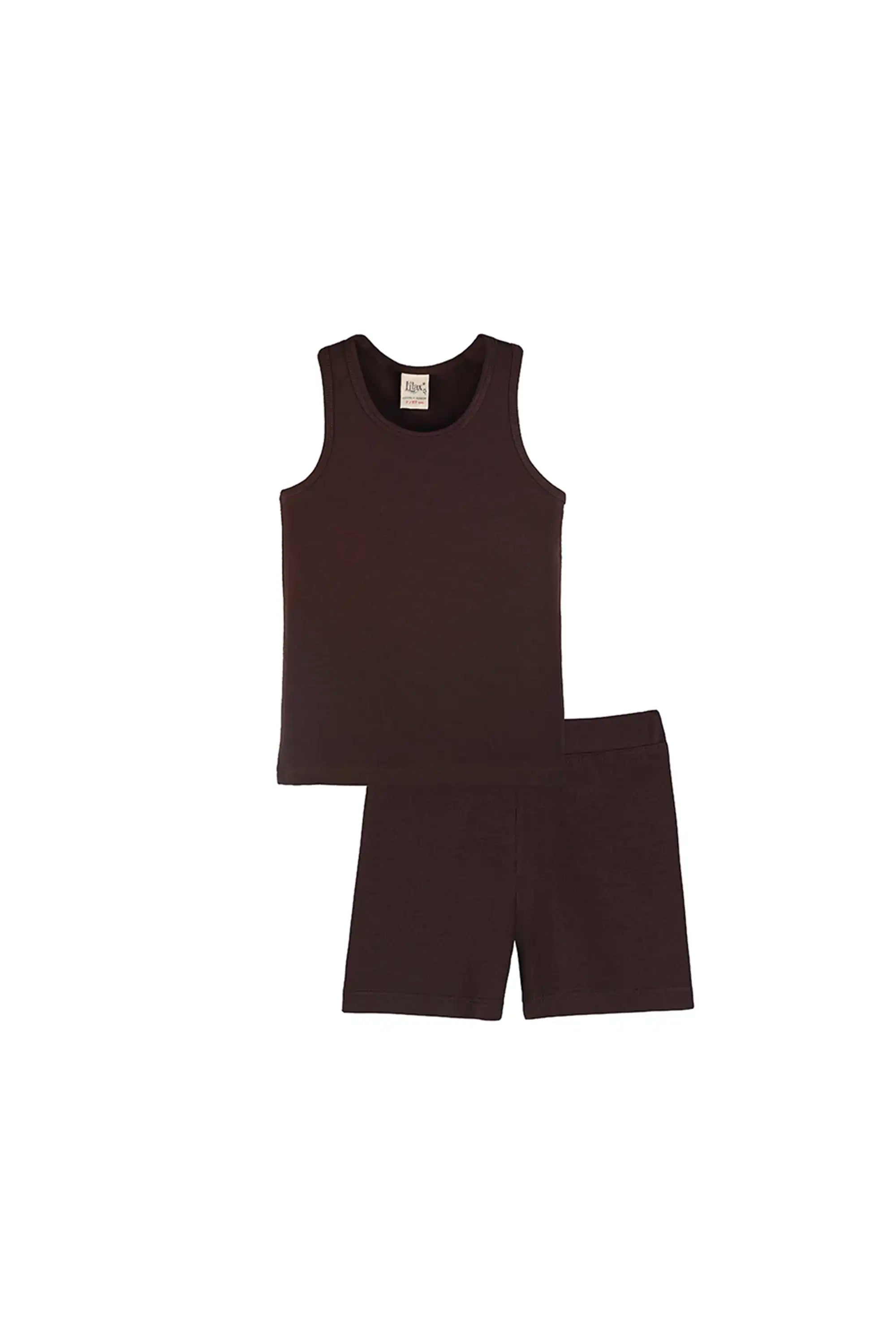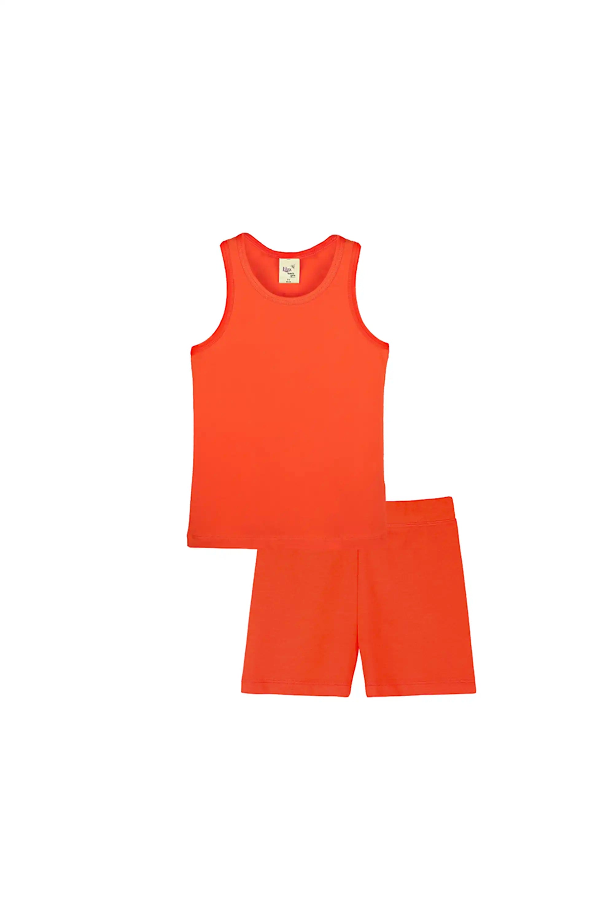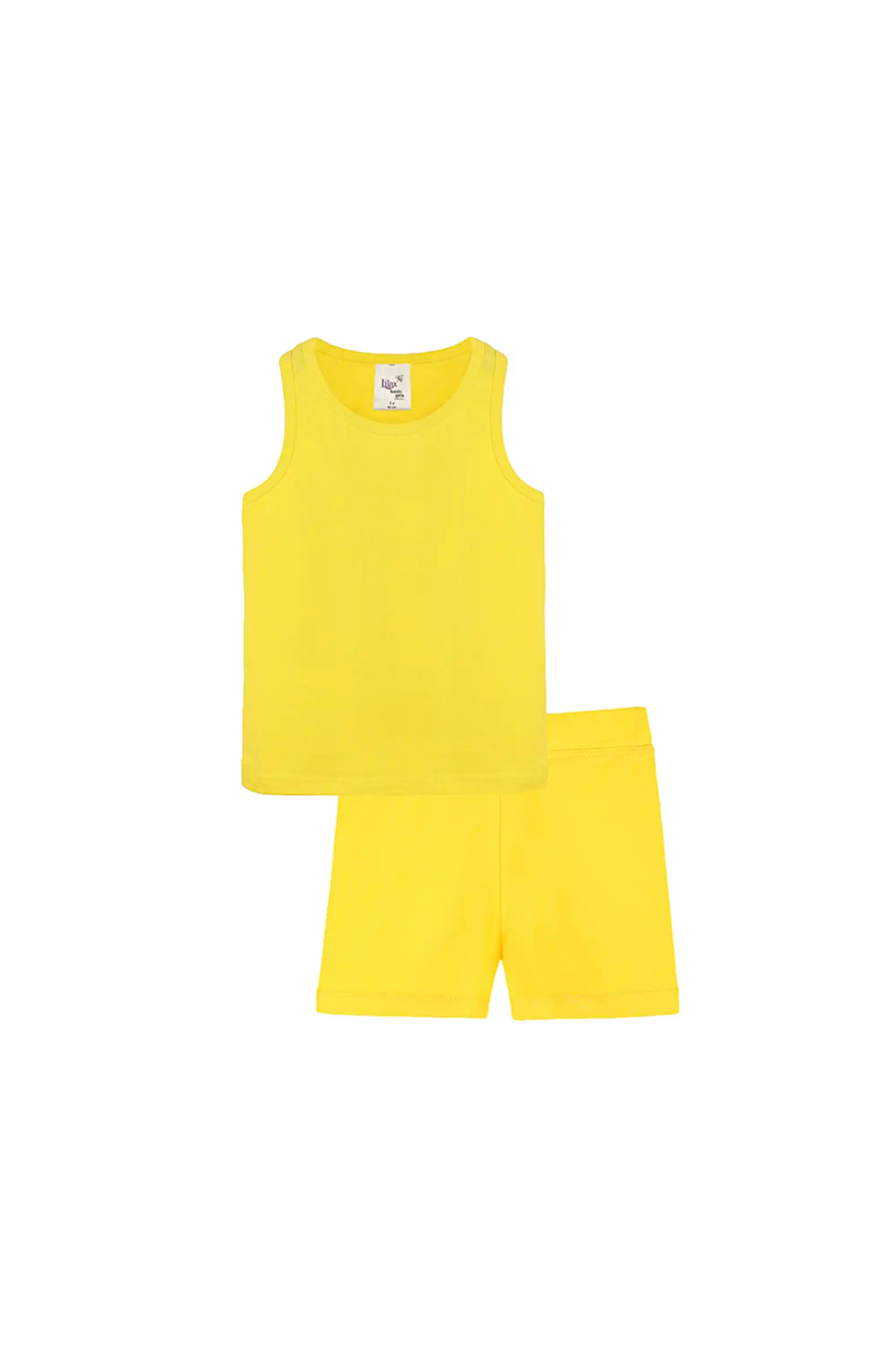 2-piece girls’ outfit set with a sleeveless tank top and matching shorts.