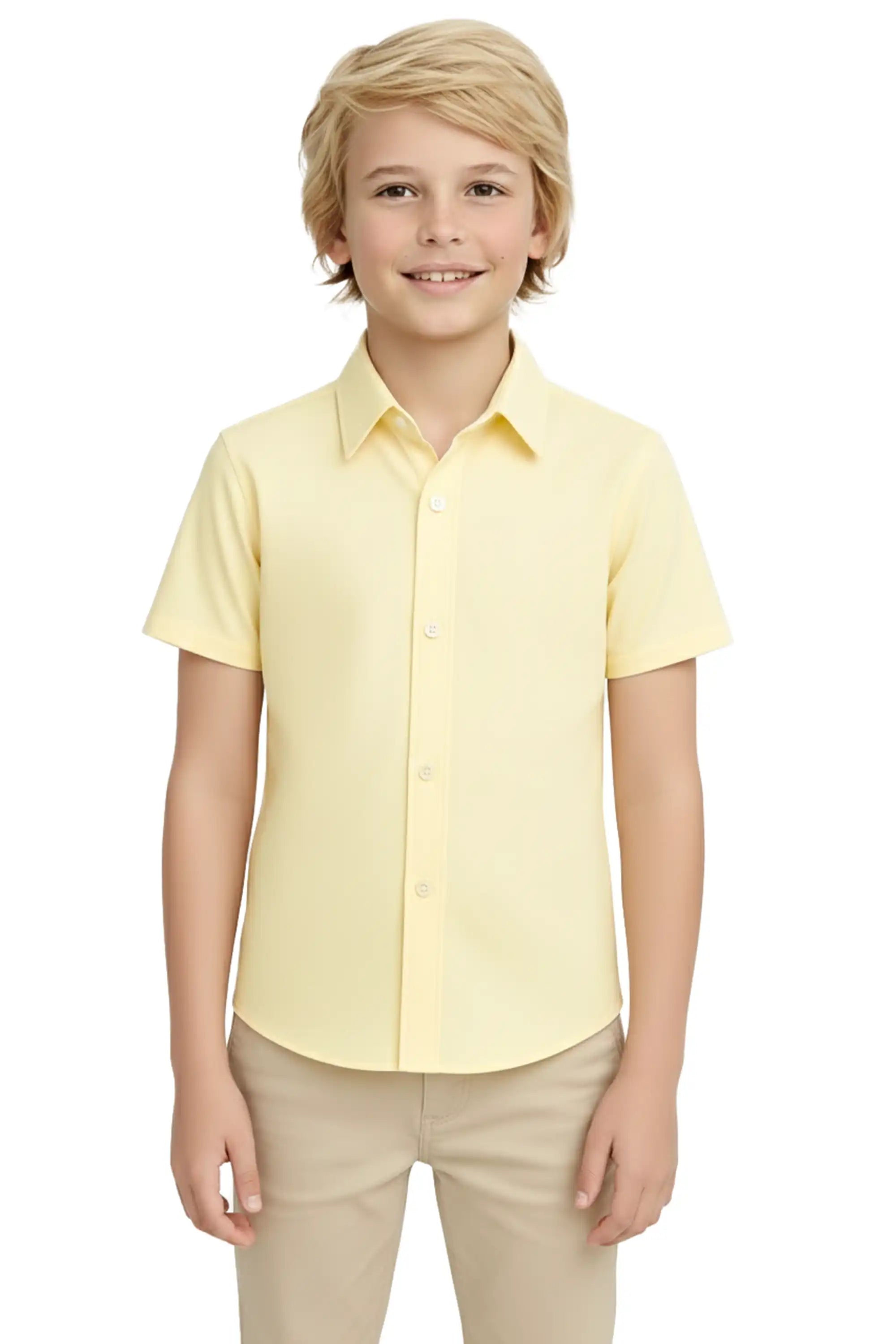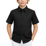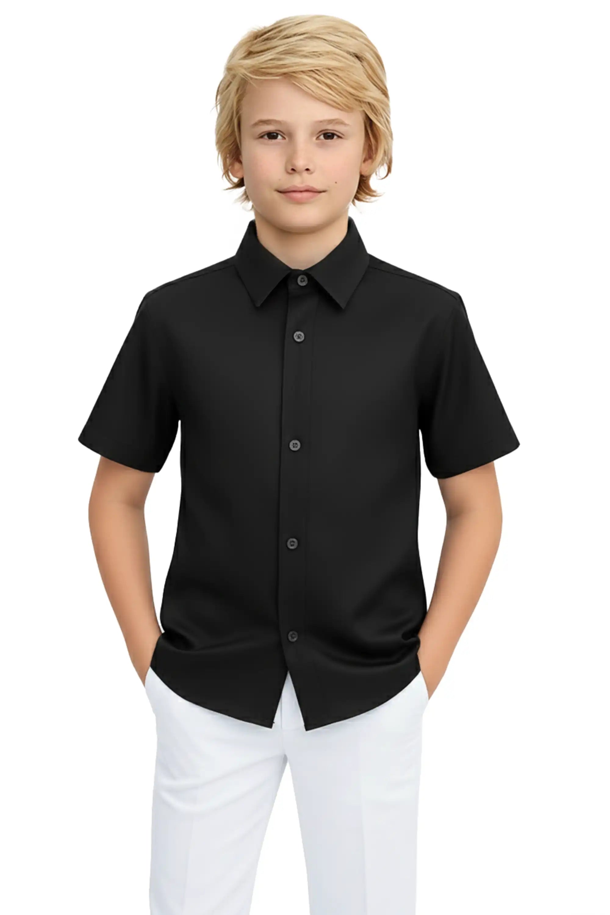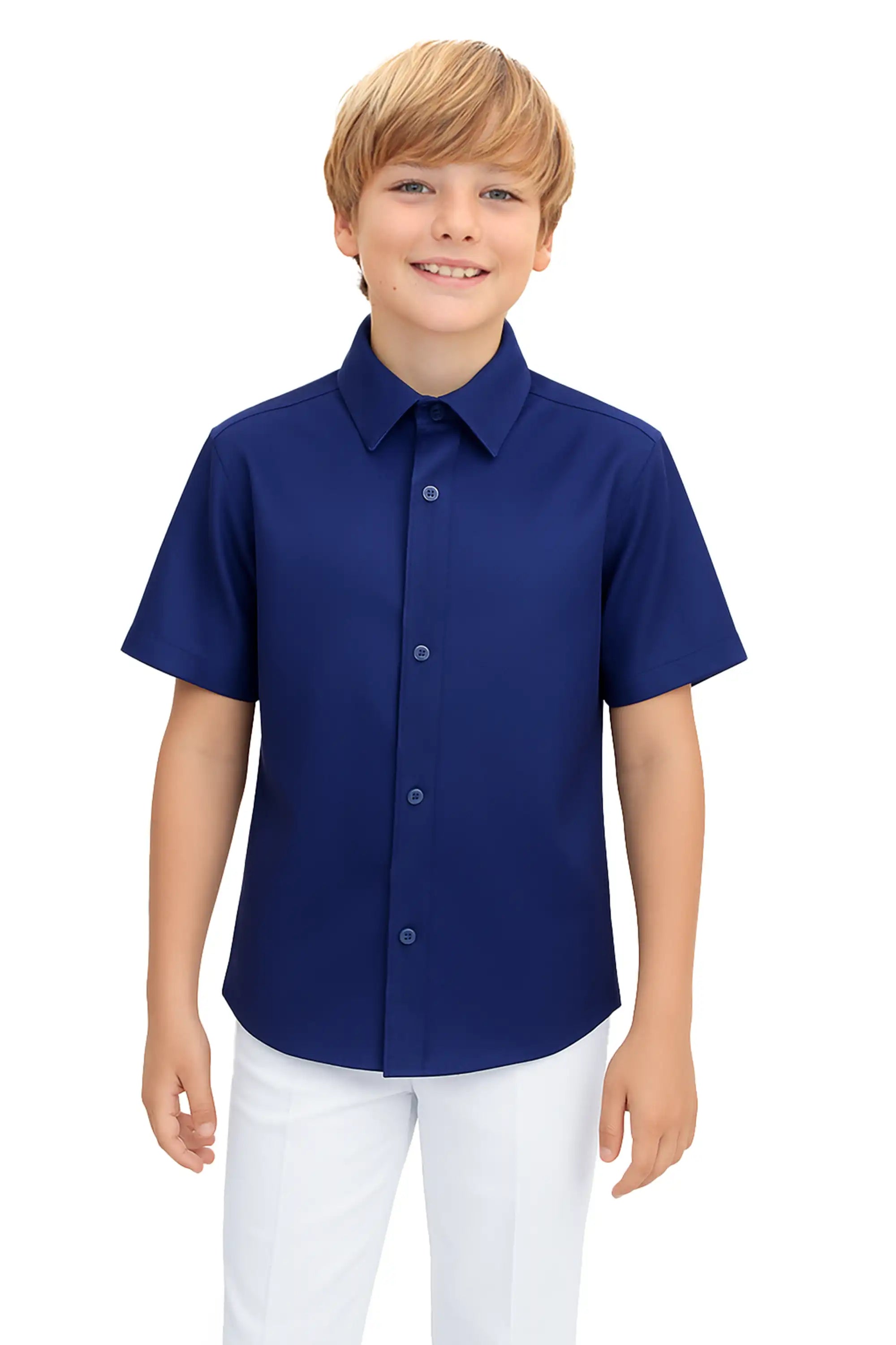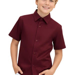 Lilax Boys Classic Short Sleeve Button Down Casual Solid Dress Shirt