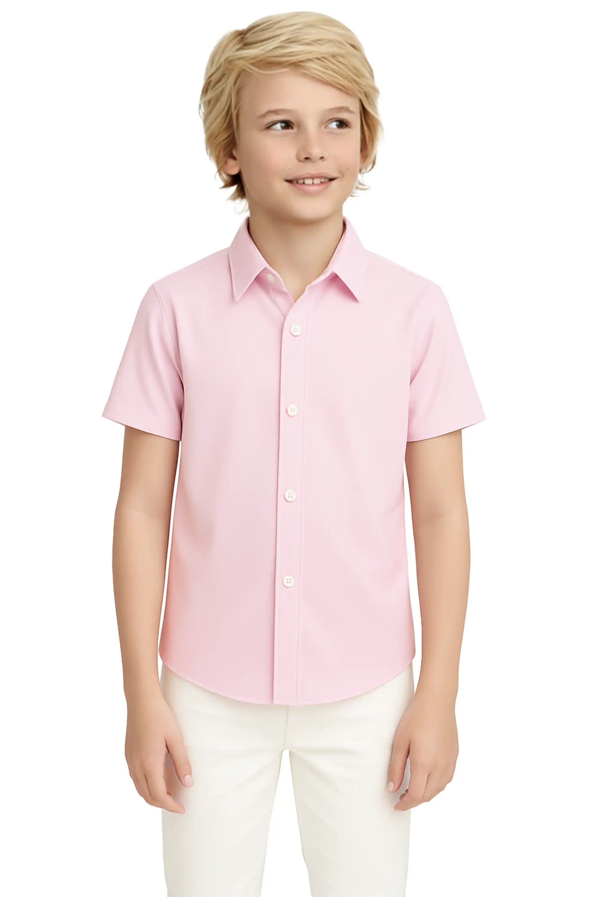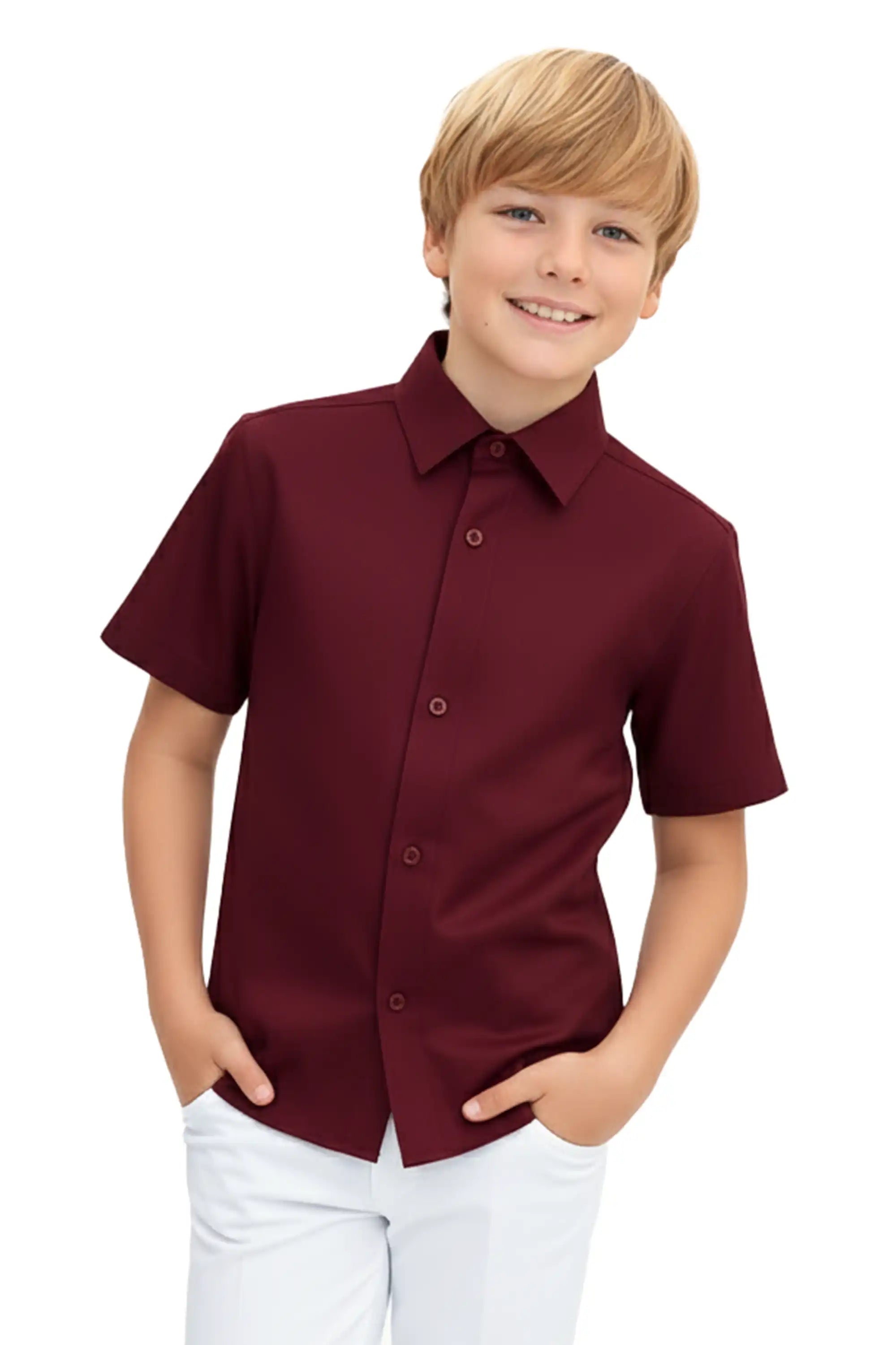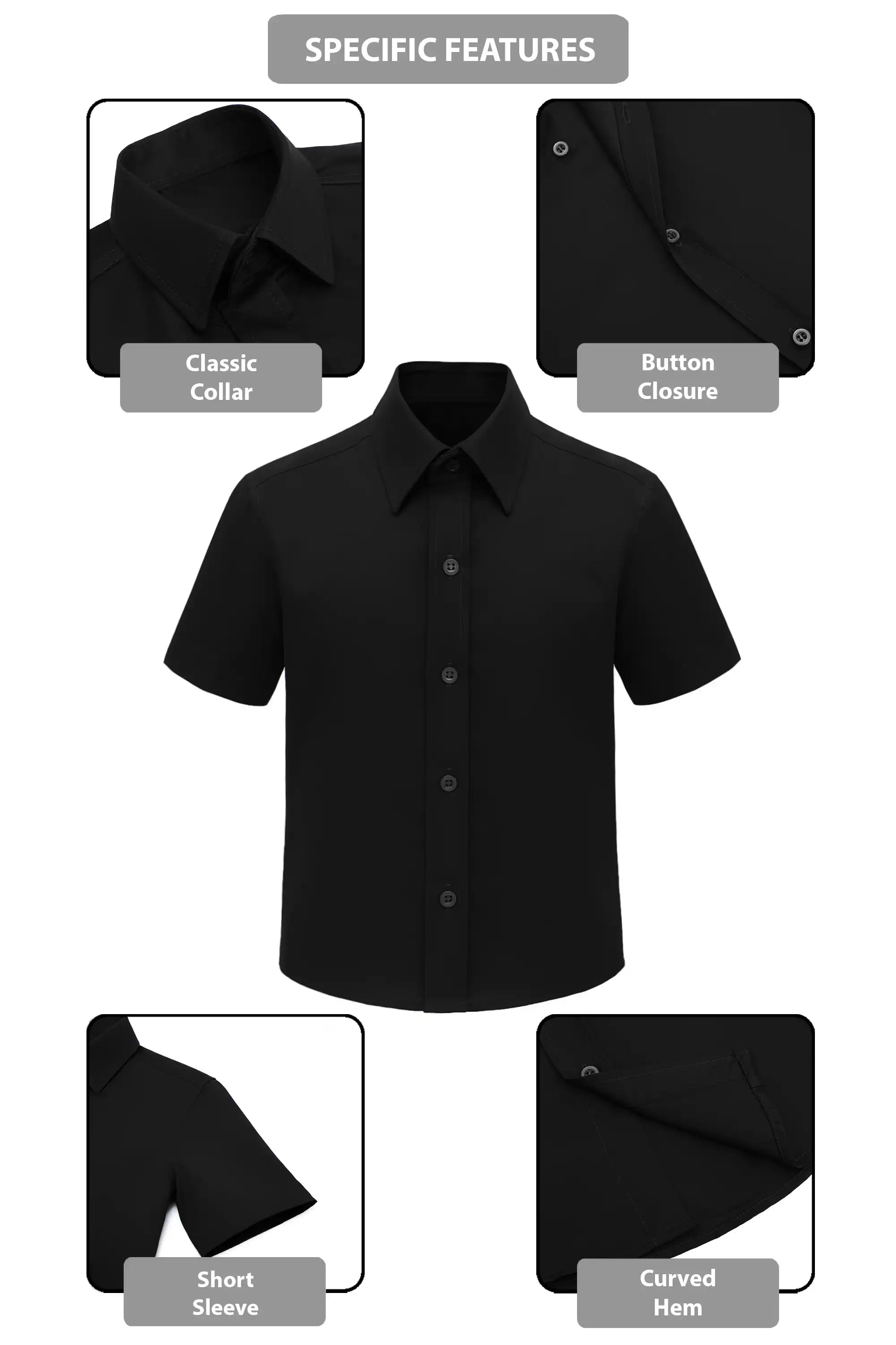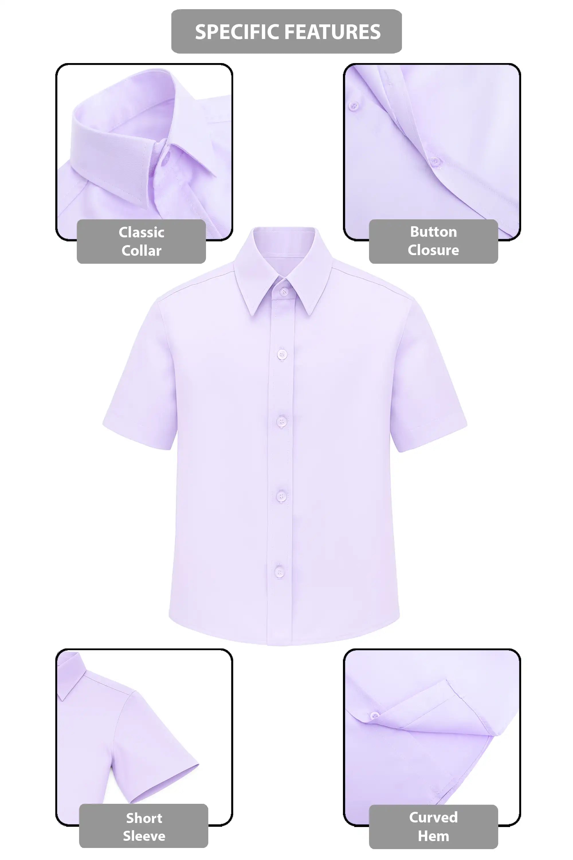 Lilax Boys Classic Short Sleeve Button Down Casual Solid Dress Shirt