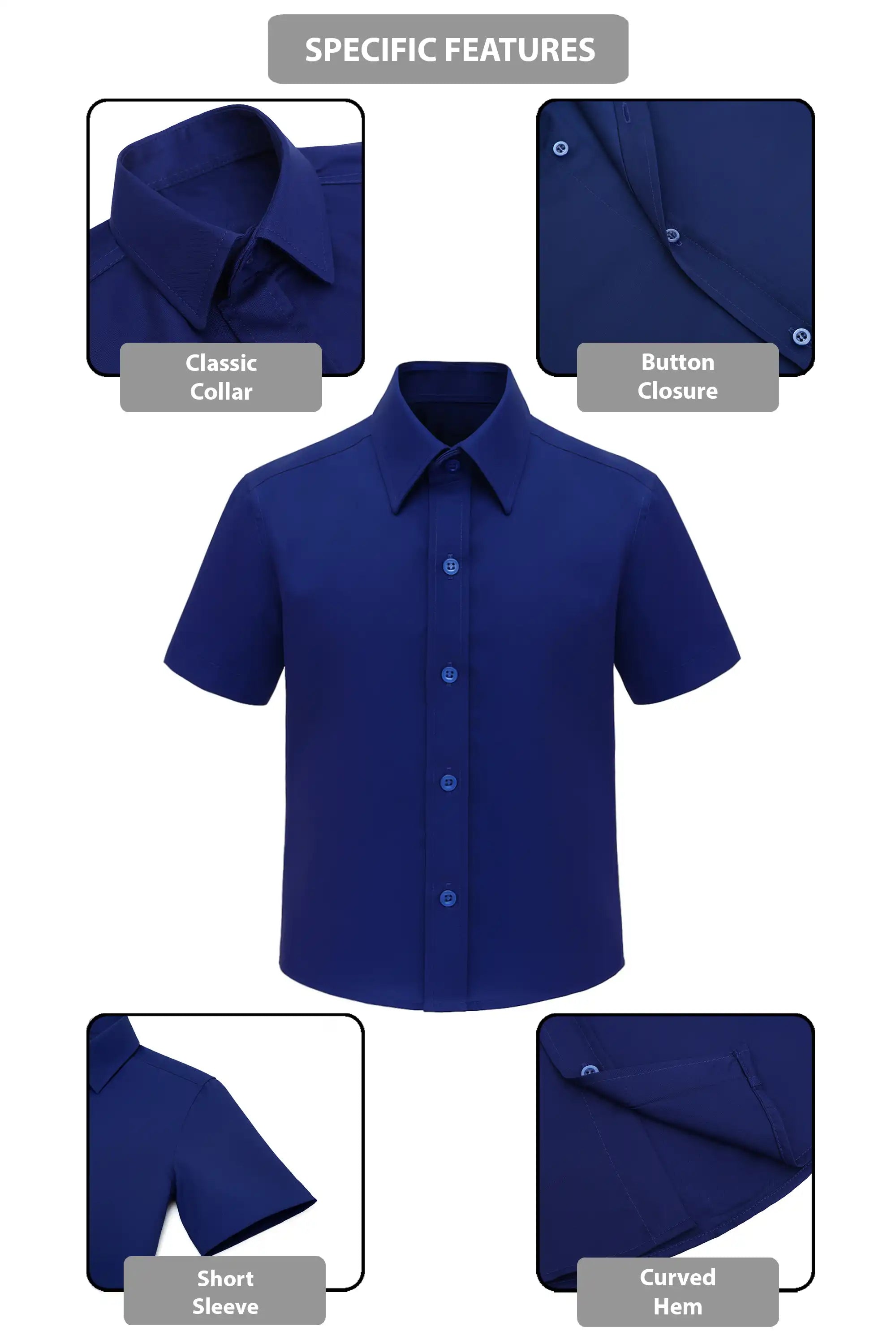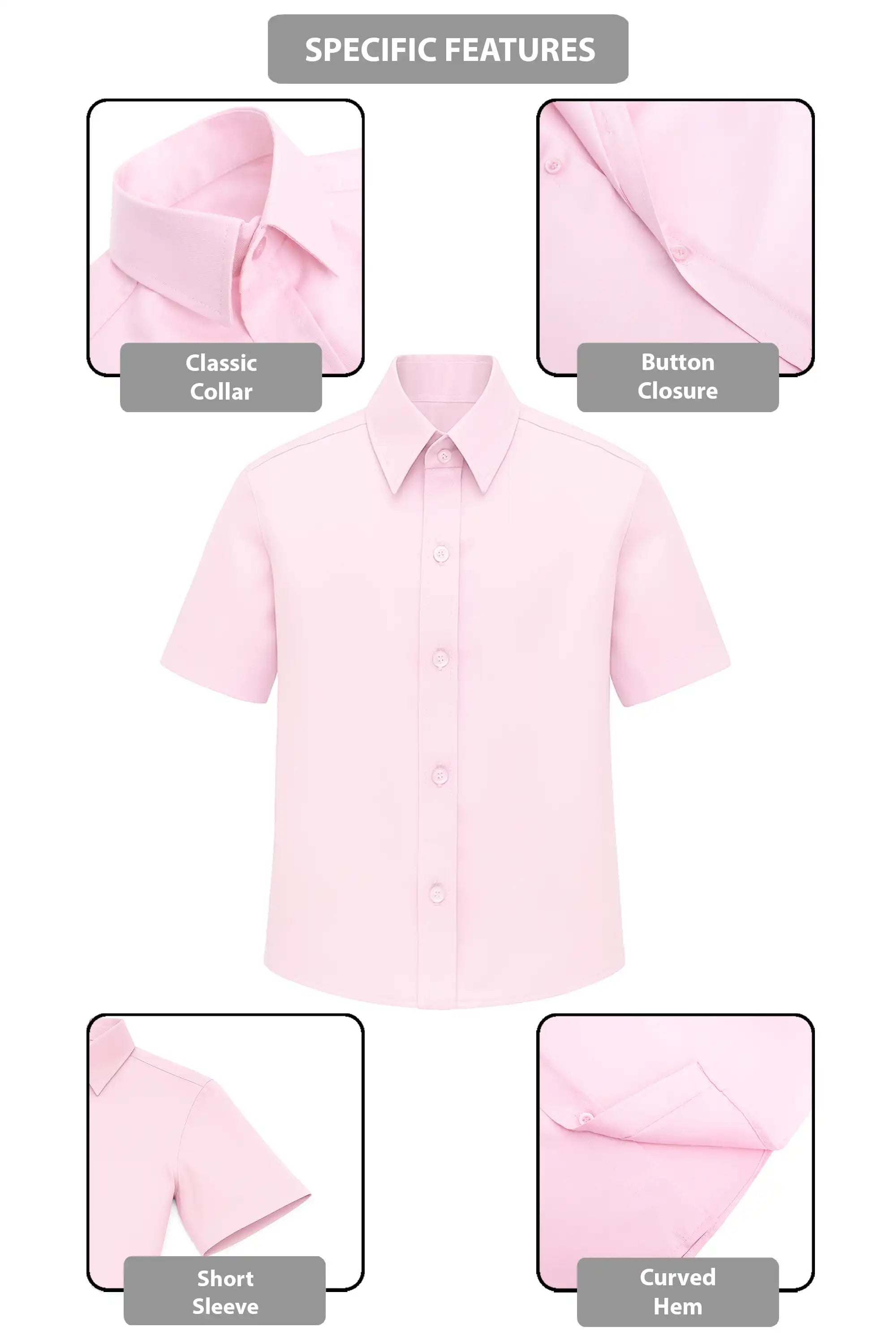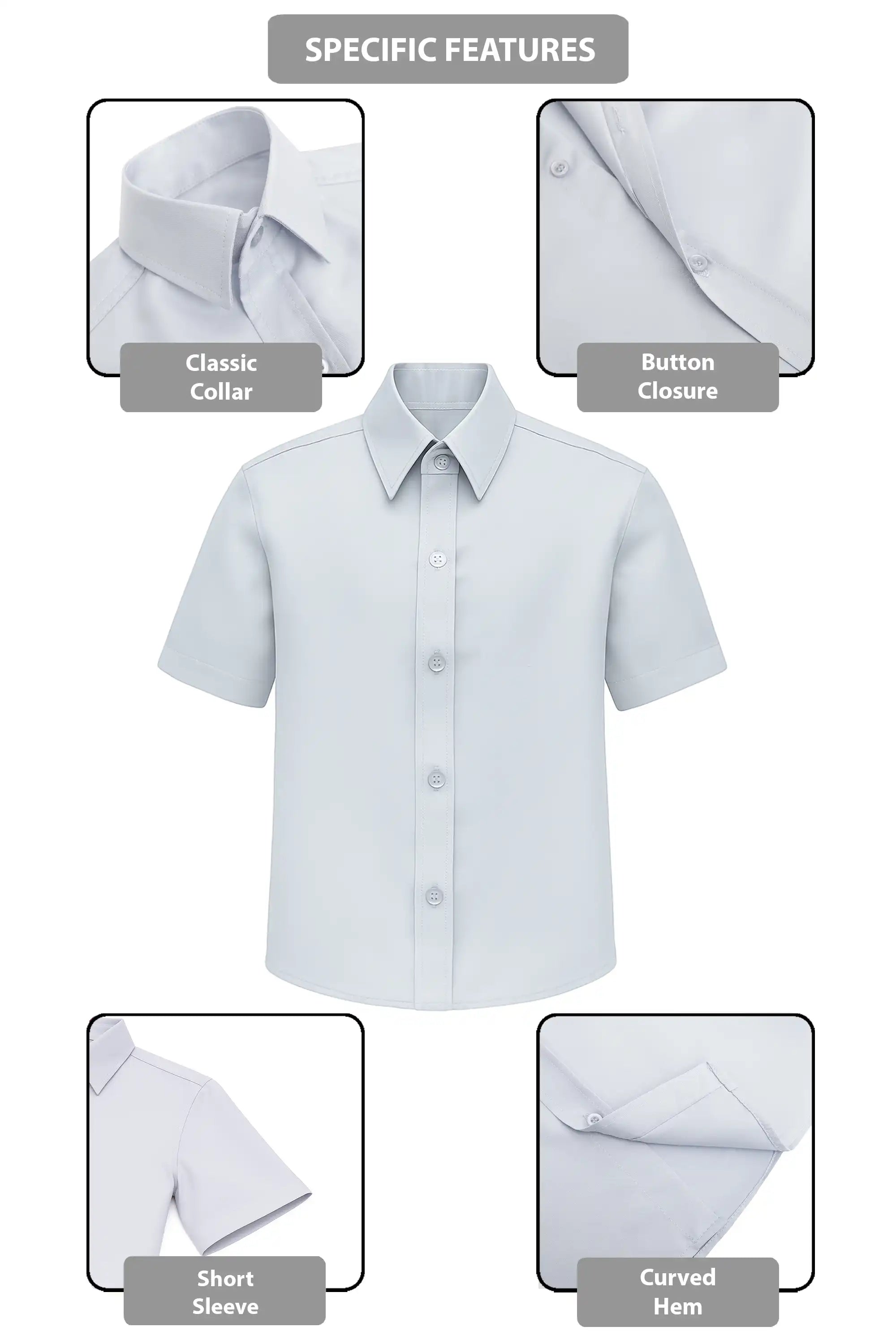 Featuring a traditional collar, button-down front, and short sleeves, this timeless shirt is perfect for school uniforms, special occasions, ceremonies, and everyday wear.