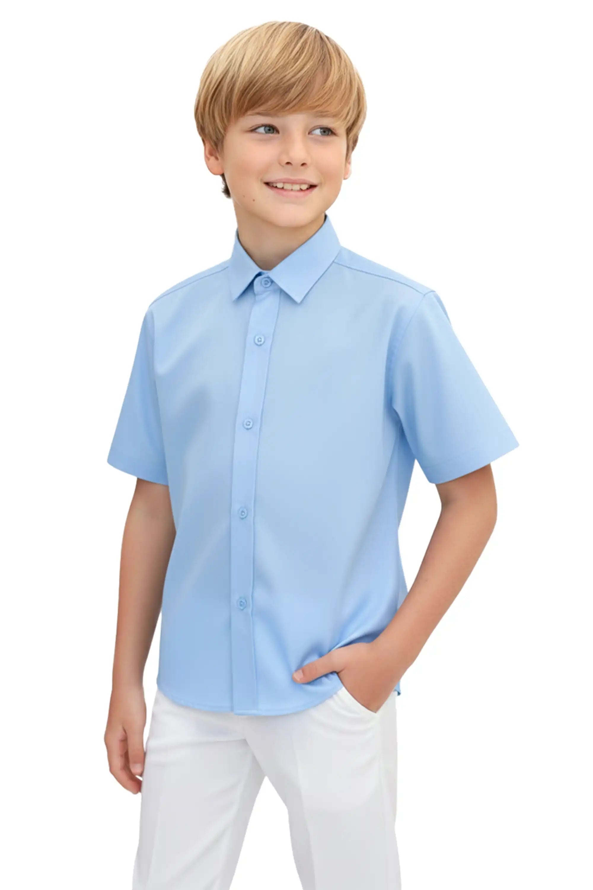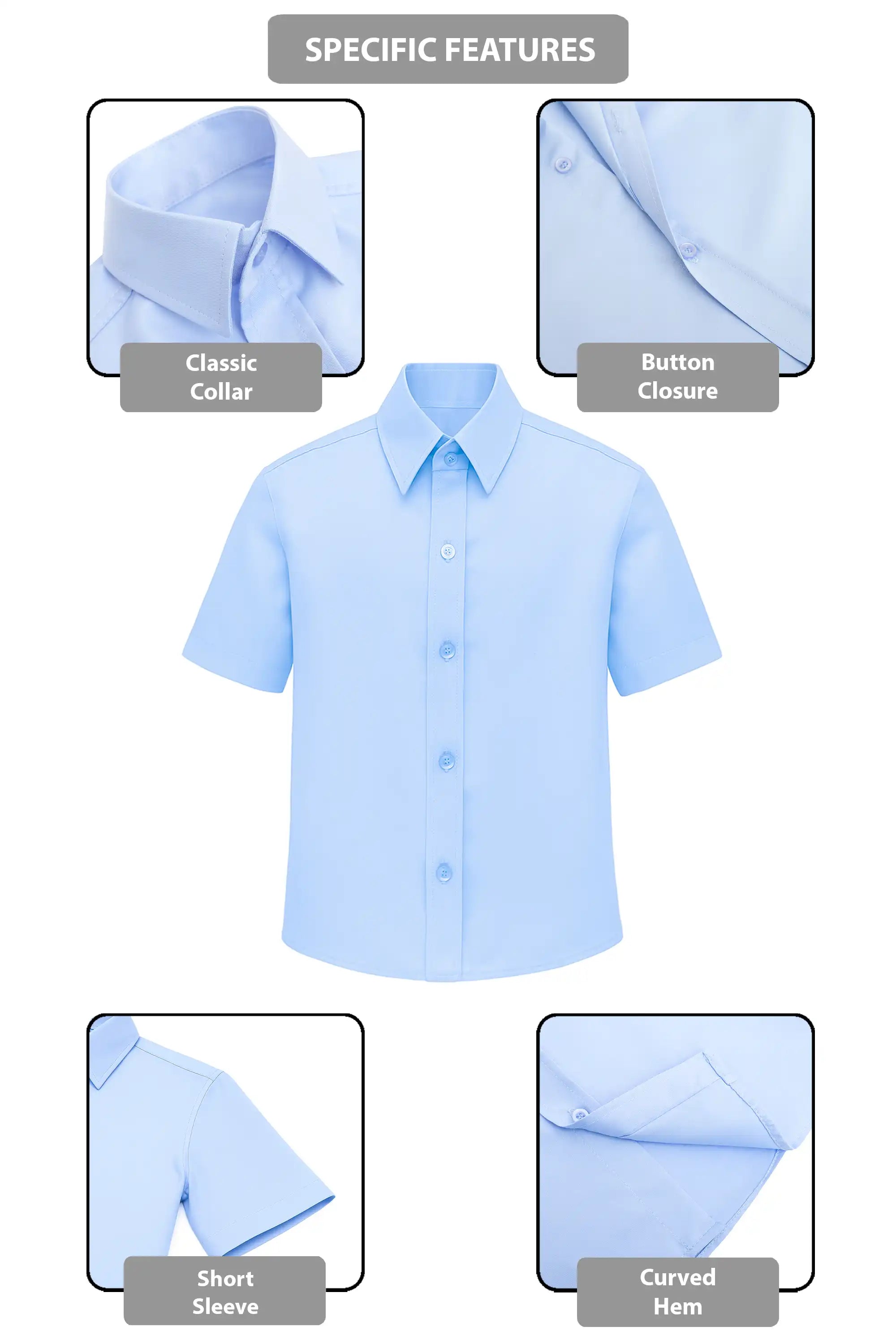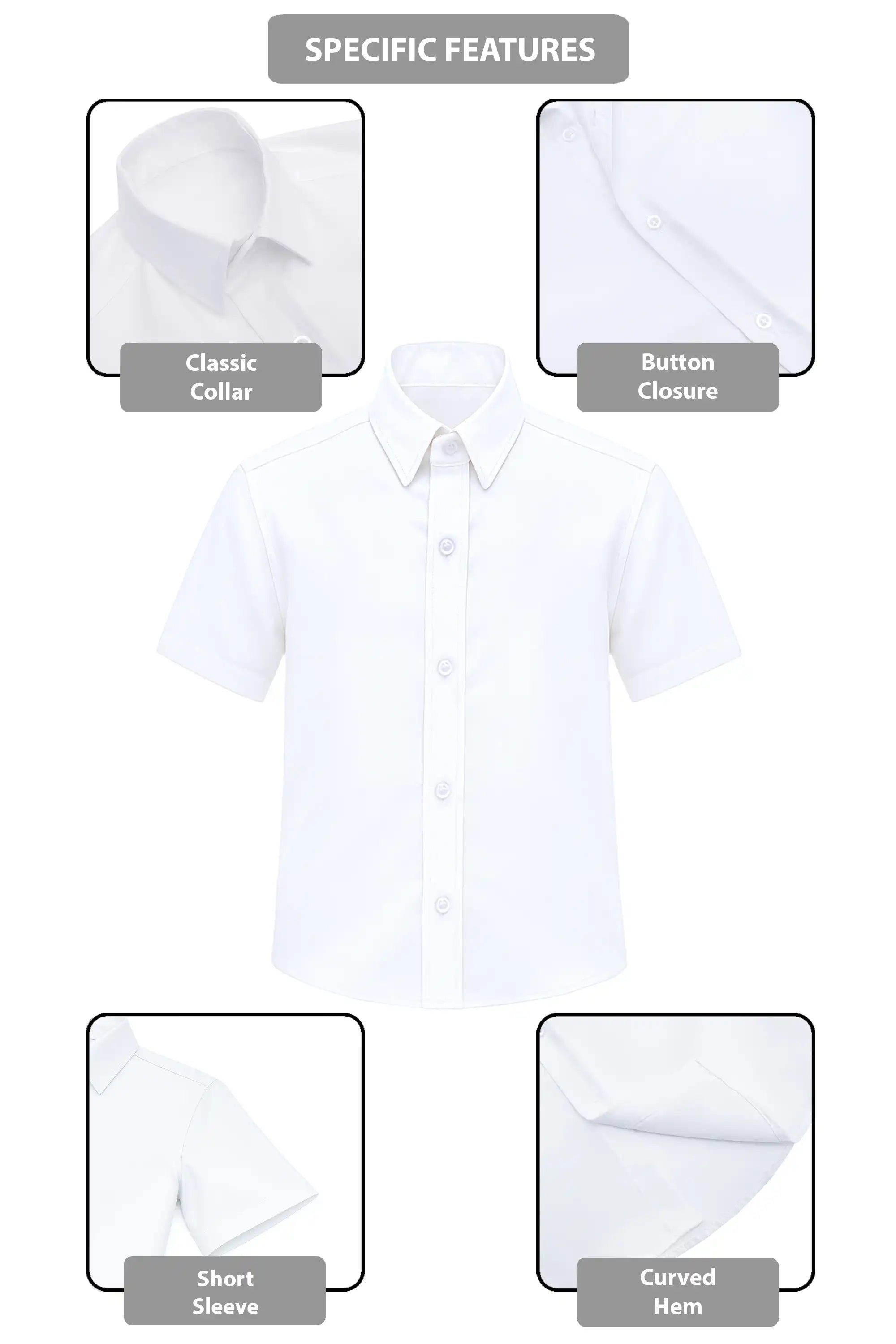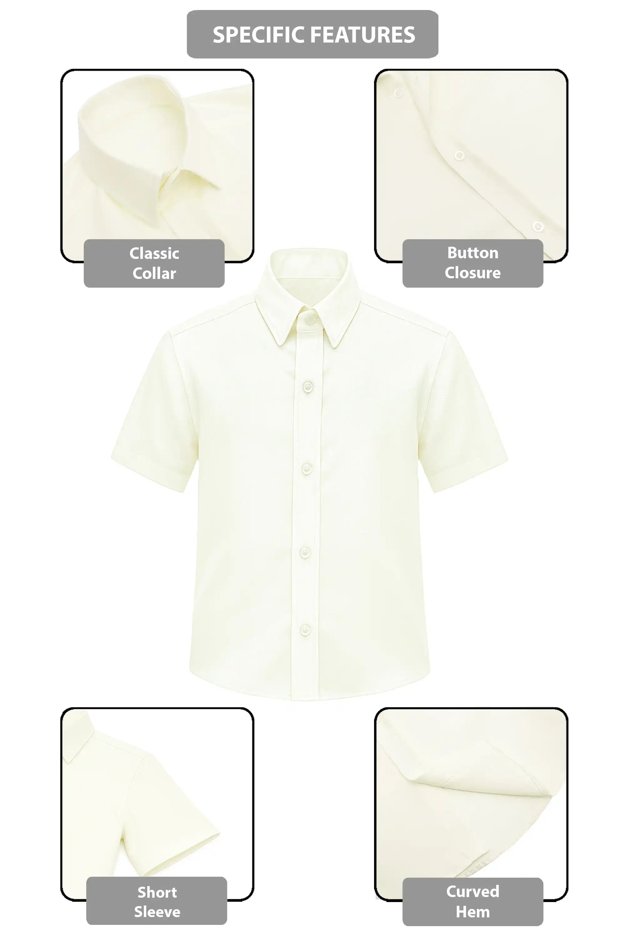 Featuring a traditional collar, button-down front, and short sleeves, this timeless shirt is perfect for school uniforms, special occasions, ceremonies, and everyday wear.